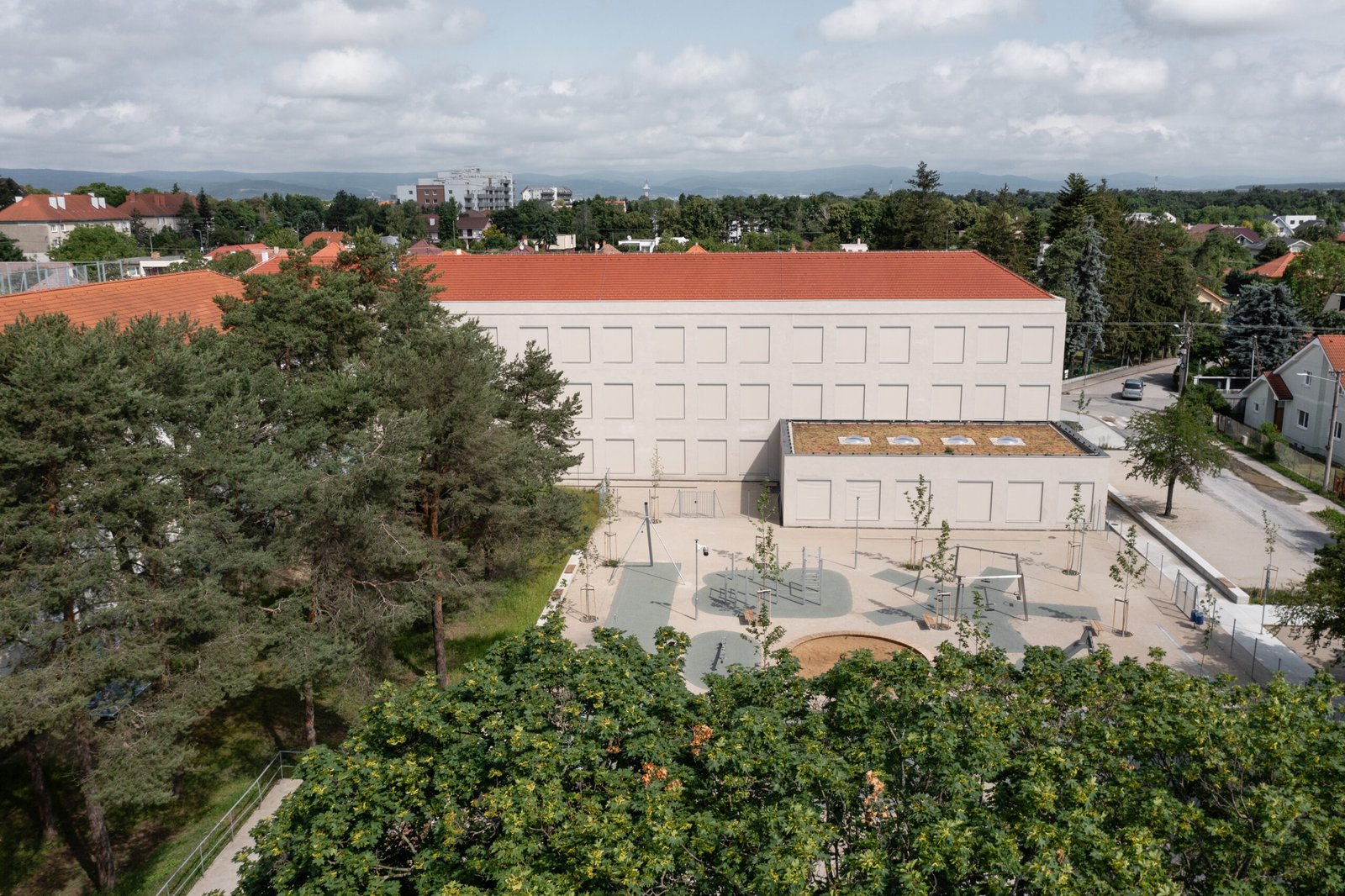 Un crecimiento “silencioso” que evita la espectacularidad para integrarse en la escala del pueblo. El proyecto responde a la necesidad de ampliar la capacidad de la escuela existente en Bernolákovo (cerca de Bratislava) y, a la vez, crear una infraestructura deportiva y social útil tanto para el centro educativo como para la comunidad.