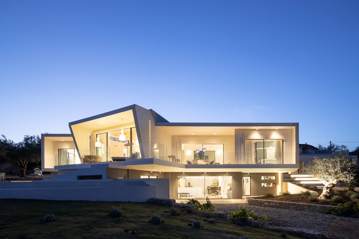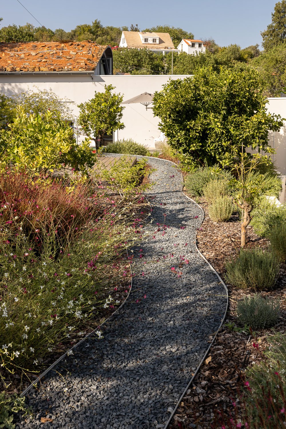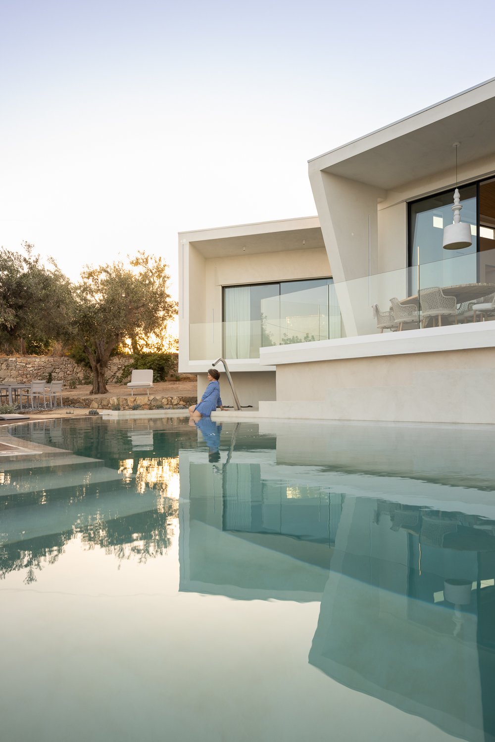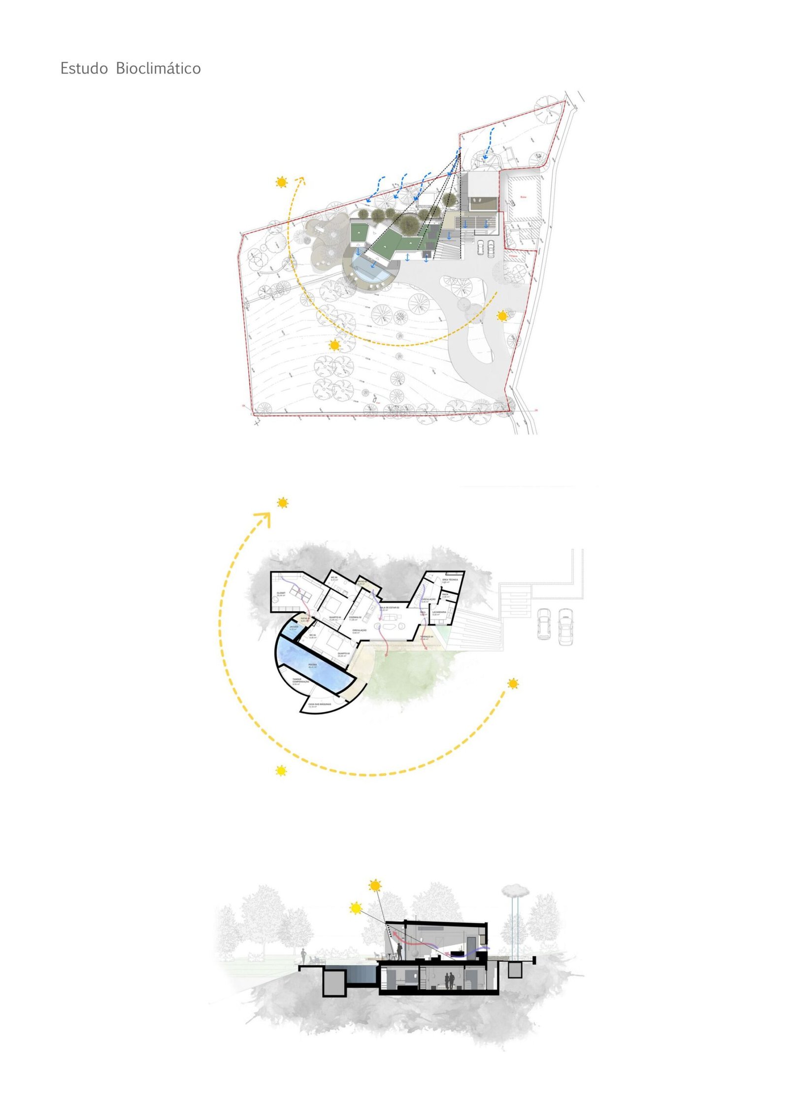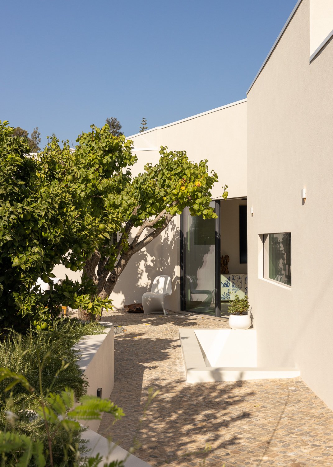 La parcela de 5.230 metros cuadrados está poblada de viejos olivos, almendros y naranjos. La forma del nuevo edificio se basó en levantamientos bioclimáticos y topográficos. La fachada norte se planea más estrecha y cerrada para mantener alejados los vientos fríos. El sur es amplio y abierto como un abanico y ofrece una vida espaciosa de planta abierta con vista al mar y luz natural.