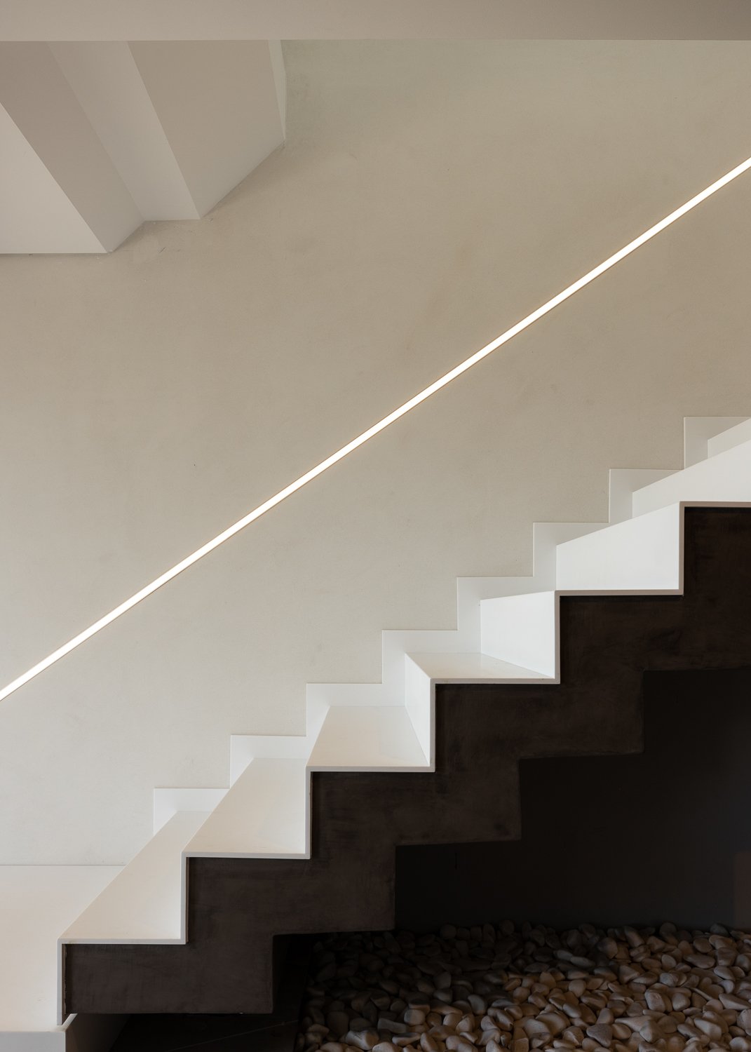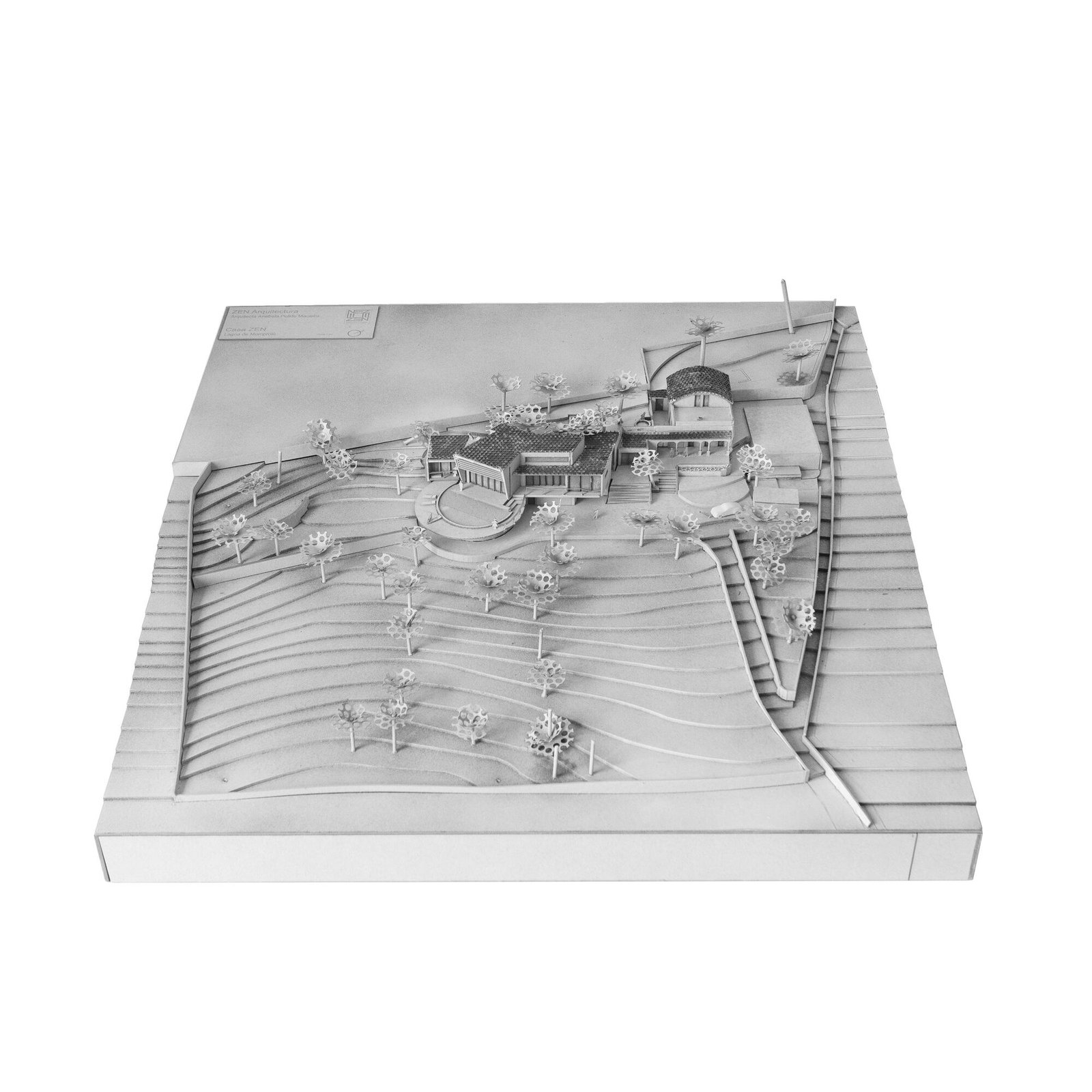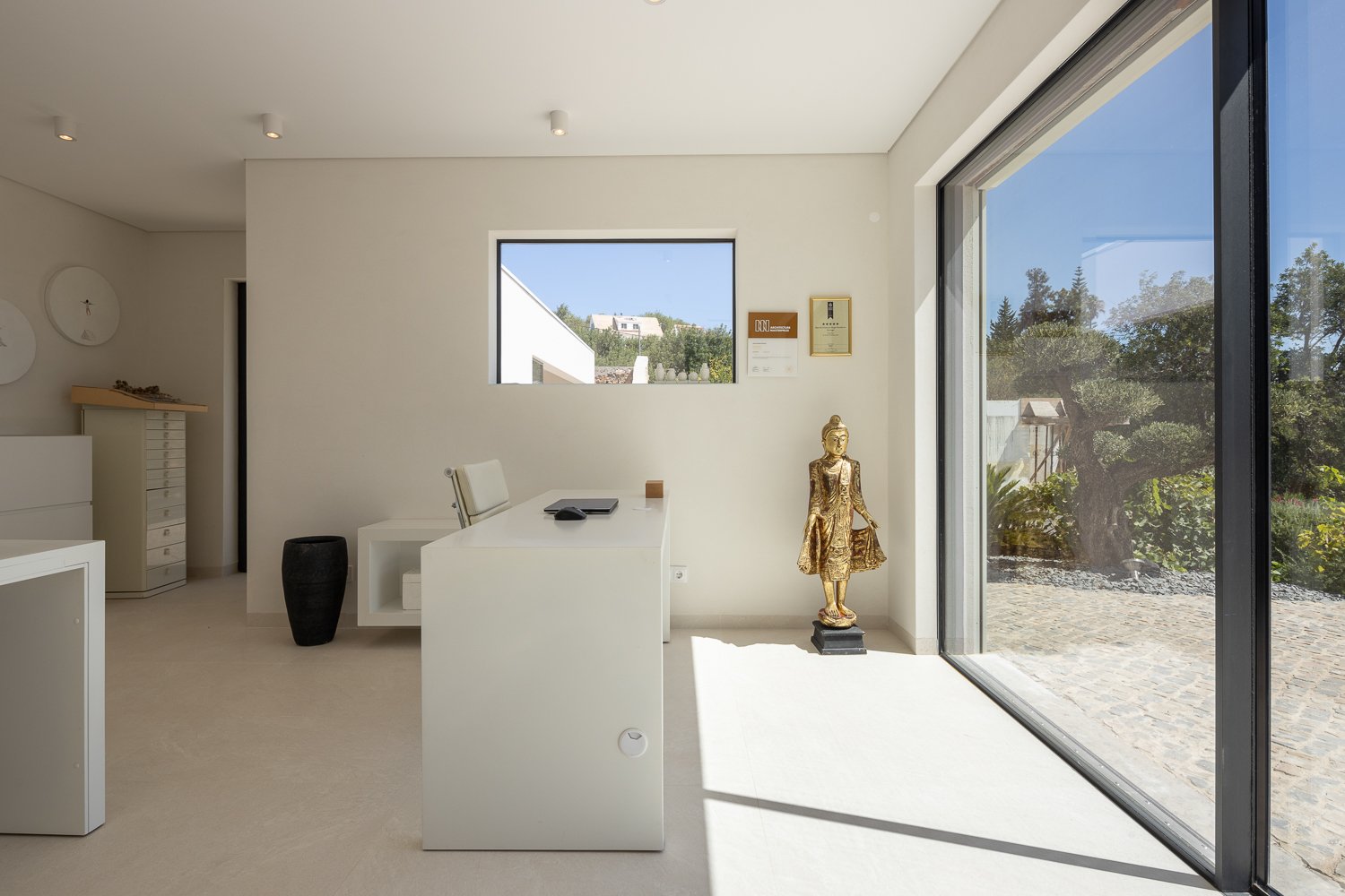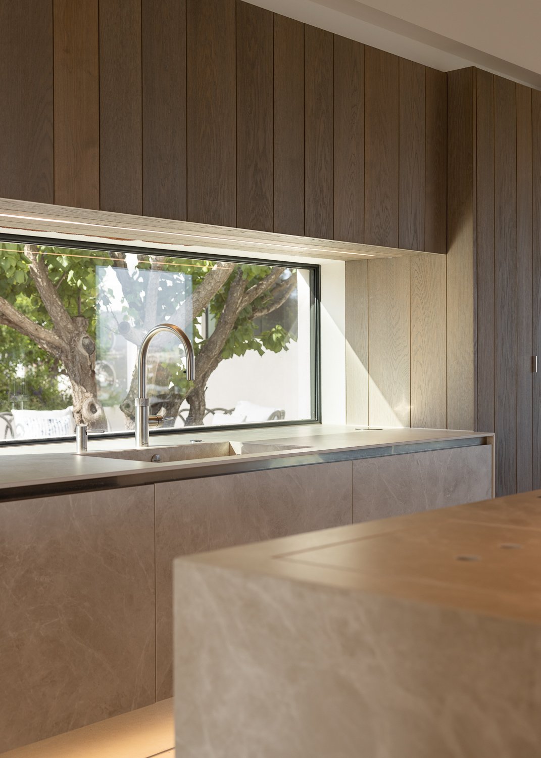La parcela de 5.230 metros cuadrados está poblada de viejos olivos, almendros y naranjos. La forma del nuevo edificio se basó en levantamientos bioclimáticos y topográficos. La fachada norte se planea más estrecha y cerrada para mantener alejados los vientos fríos. El sur es amplio y abierto como un abanico y ofrece una vida espaciosa de planta abierta con vista al mar y luz natural.