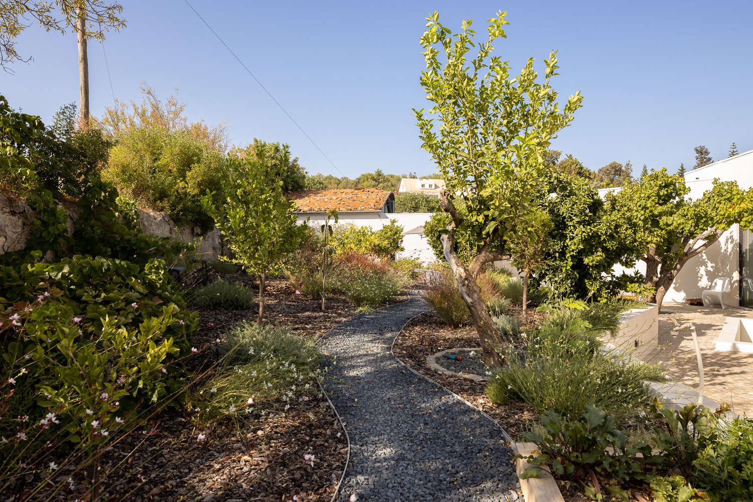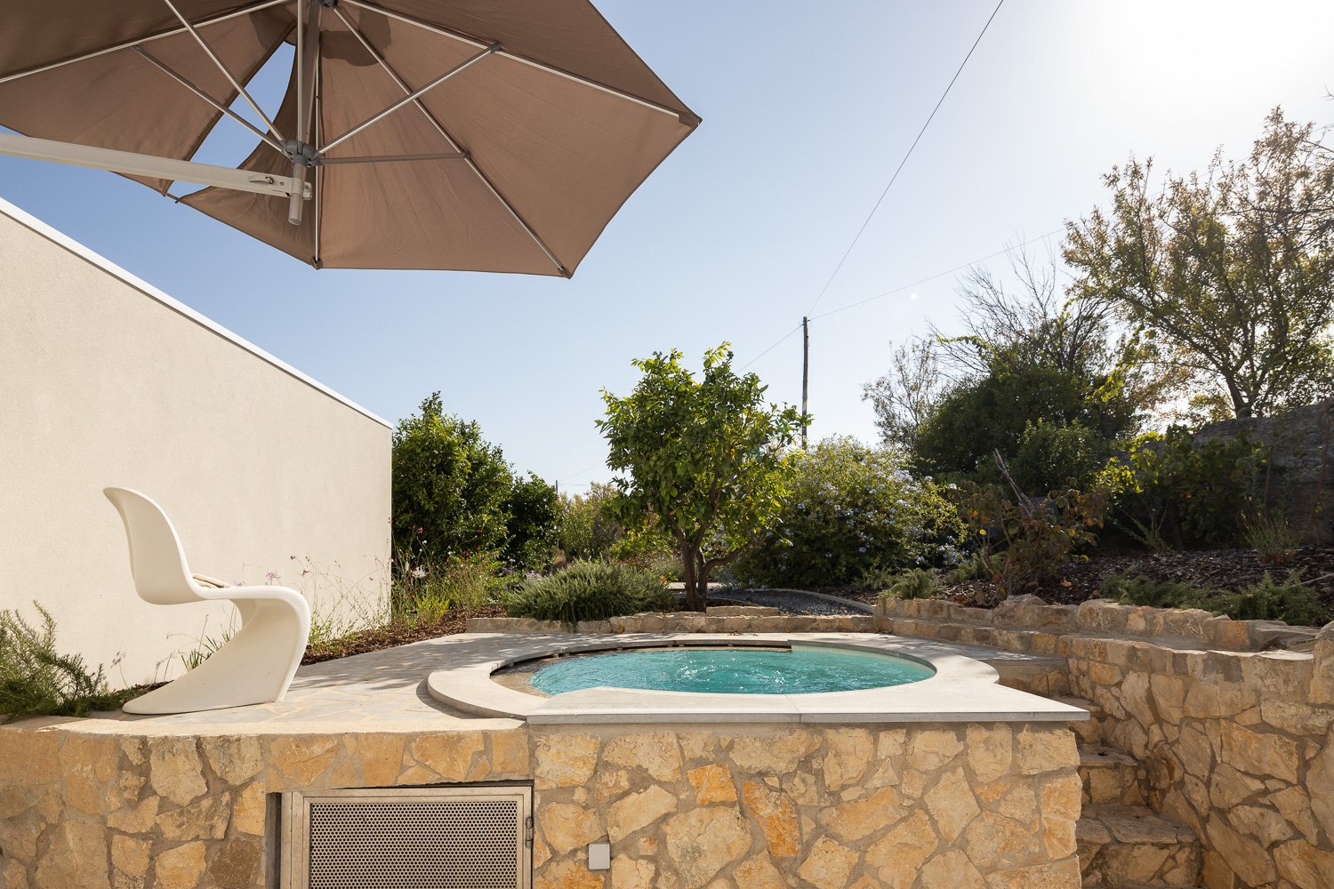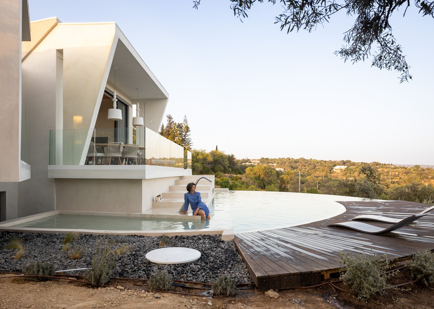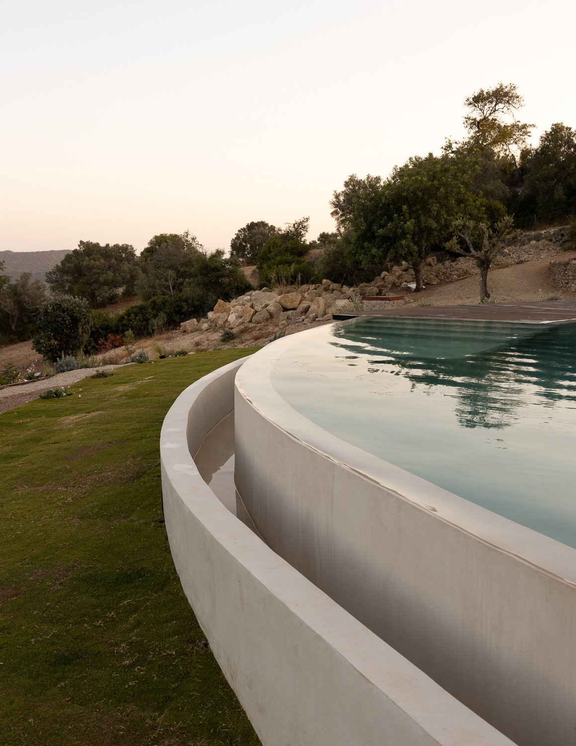 Construimos con y dentro de la naturaleza, lo que significa usar materiales de construcción naturales, ayudar a que el hogar se integre con el medio ambiente y reducir el impacto químico y la huella de carbono. Se mantuvo un ecosistema natural utilizando sal en lugar de cloro para la piscina, reutilizando las aguas residuales para el jardín y produciendo nuestra propia electricidad, lo que hace que la casa sea autosostenible.