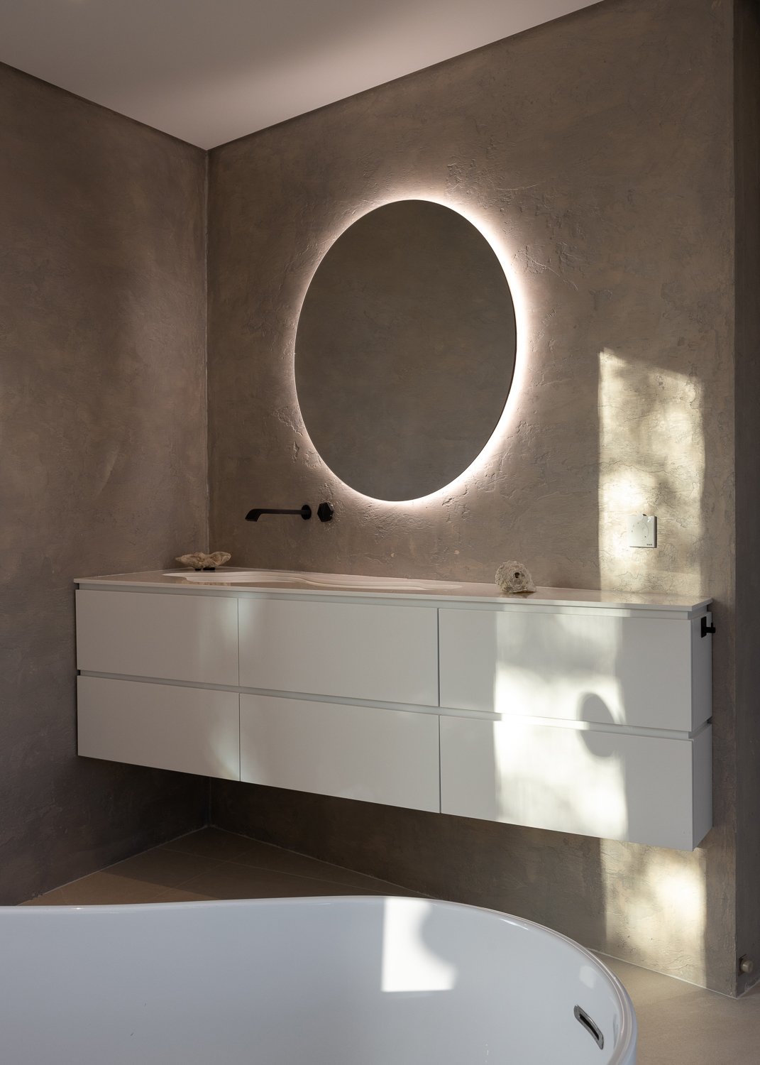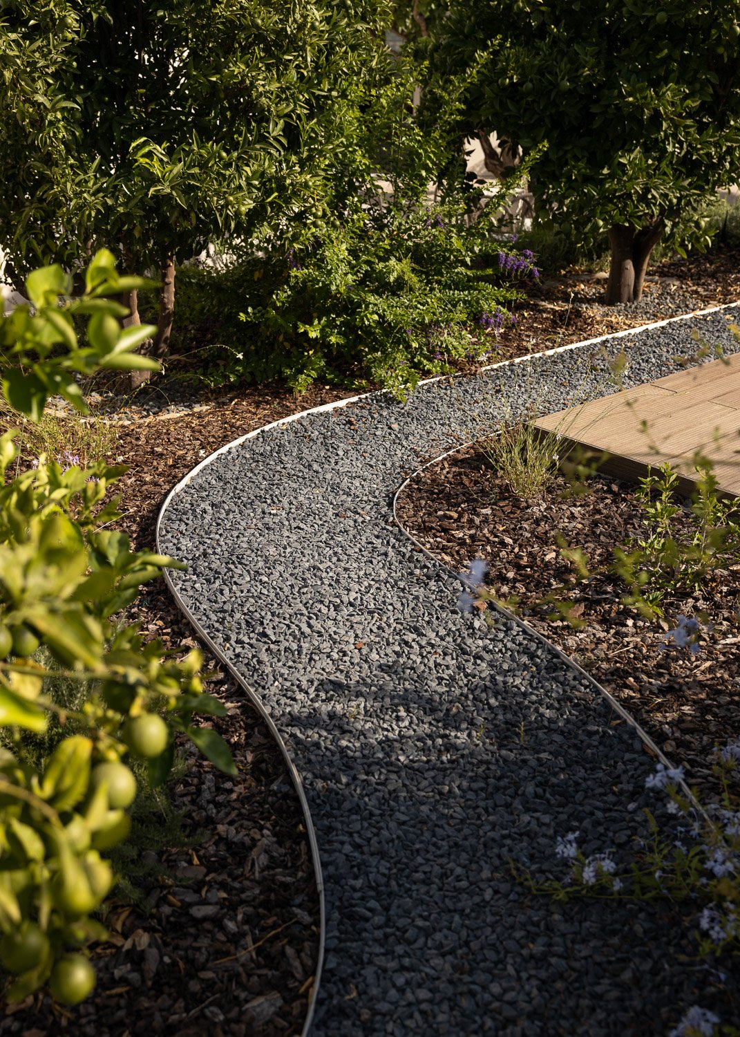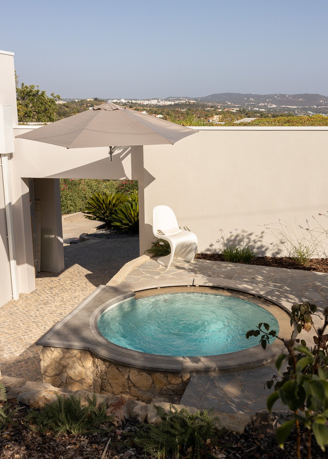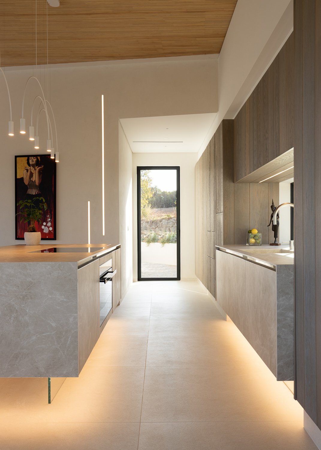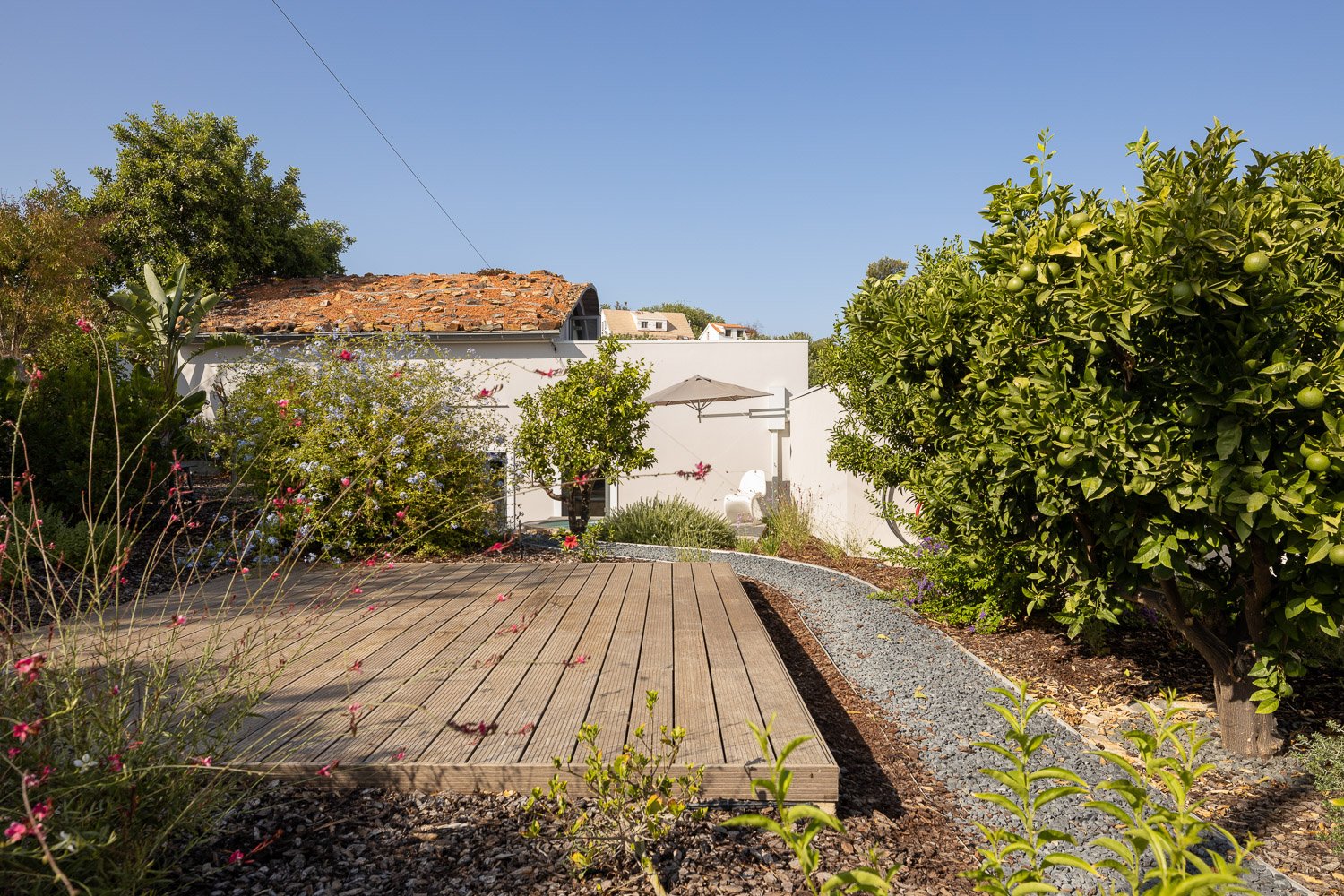 Construimos con y dentro de la naturaleza, lo que significa usar materiales de construcción naturales, ayudar a que el hogar se integre con el medio ambiente y reducir el impacto químico y la huella de carbono. Se mantuvo un ecosistema natural utilizando sal en lugar de cloro para la piscina, reutilizando las aguas residuales para el jardín y produciendo nuestra propia electricidad, lo que hace que la casa sea autosostenible.