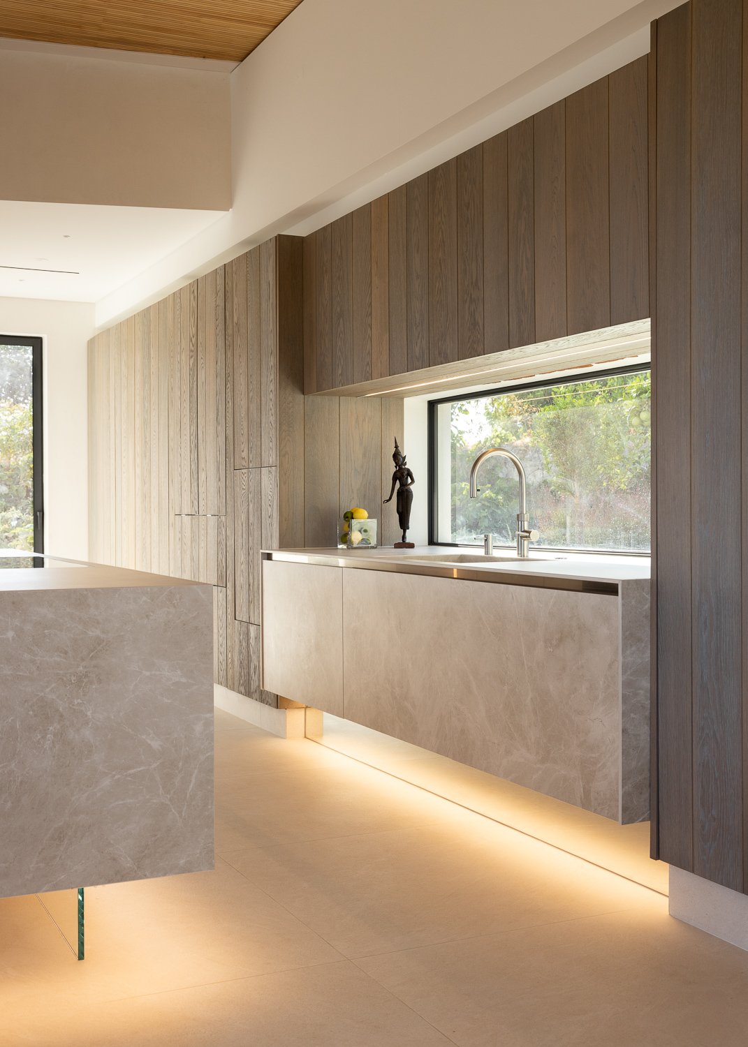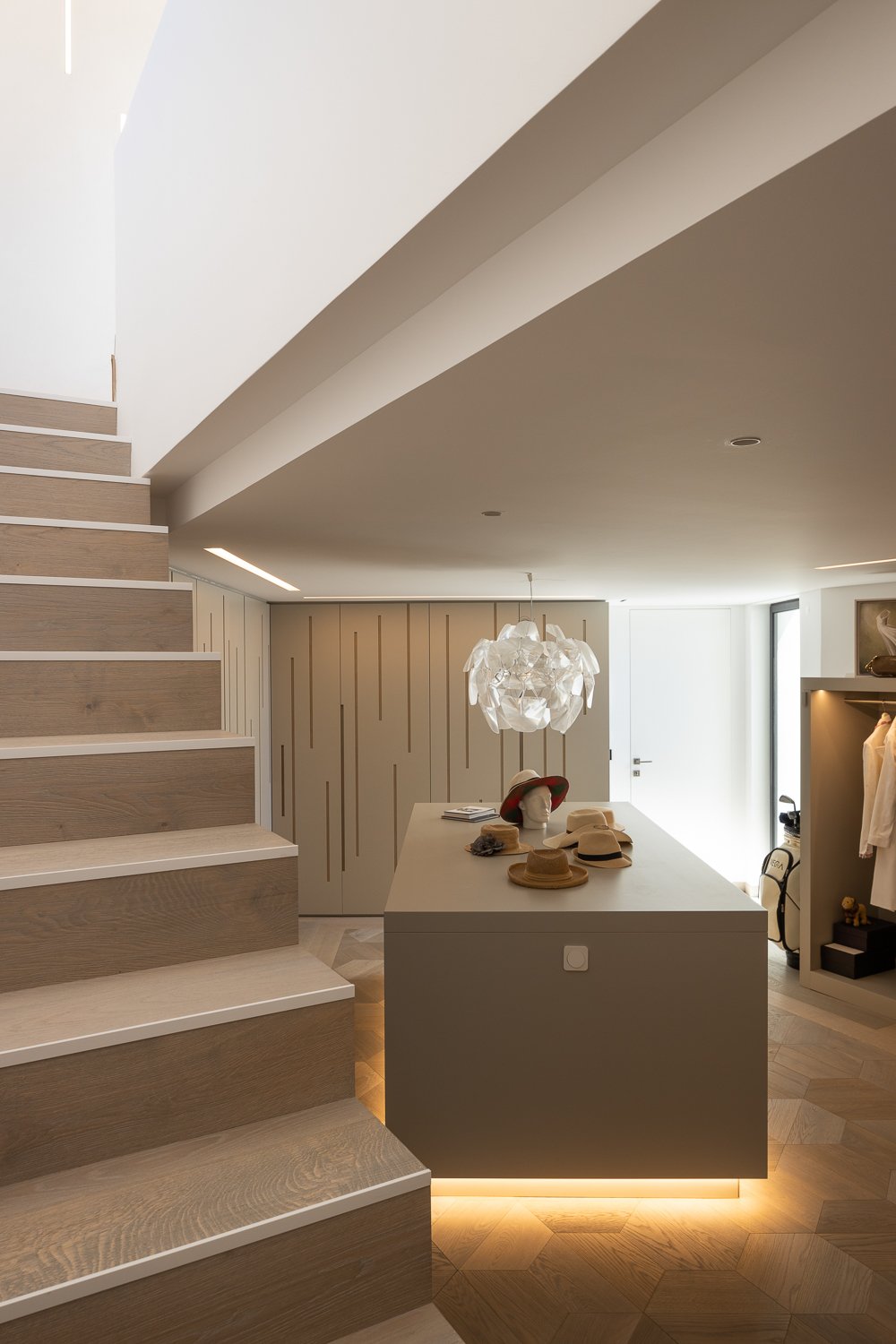 Apariencia y acabado. Para crear calma y suavidad natural en toda la casa, elegimos repetir los materiales. El lenguaje arquitectónico muestra la influencia de los materiales que se encuentran en la naturaleza circundante.