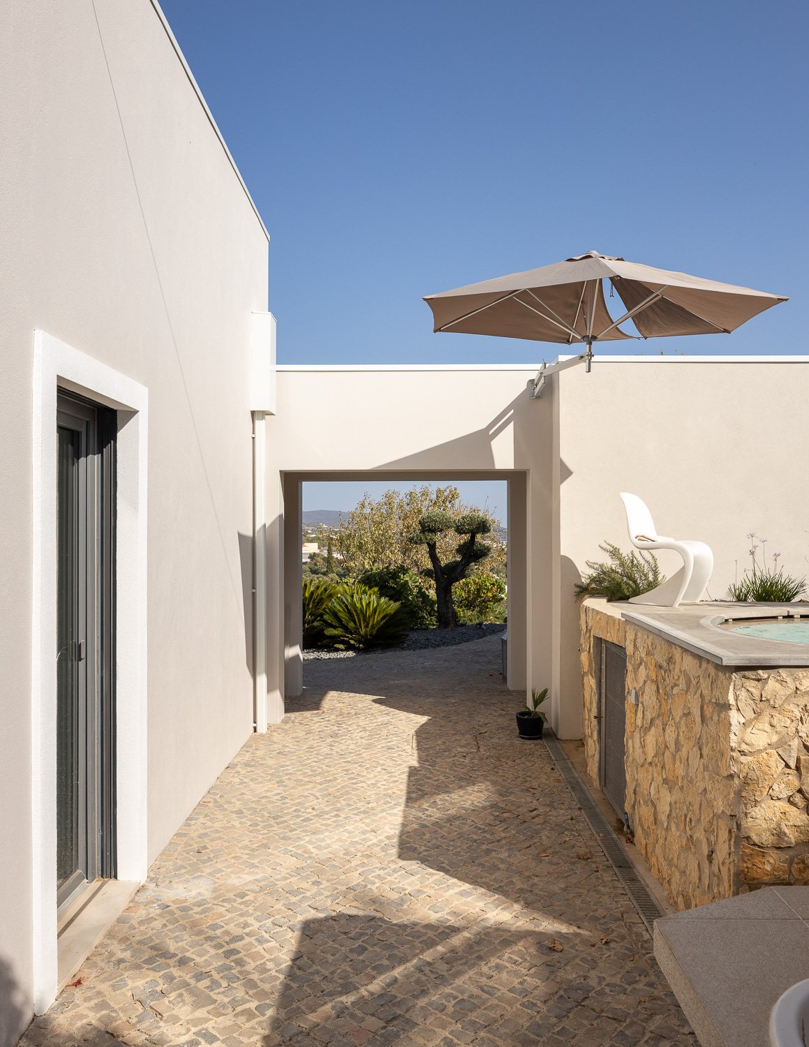 Perfectamente encajado en el paisaje empinado y conectado a la perfección con la casa existente, las líneas elegantes y limpias se combinaron con sutiles elementos tradicionales, en referencia a las raíces portuguesas de los habitantes germano-portugueses. Los principios «PASSIVHAUS» aplicados crearon un hogar ecológico, cómodo y de alta eficiencia energética.