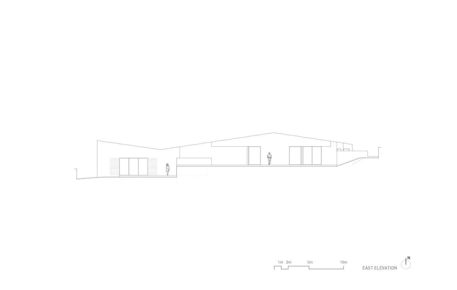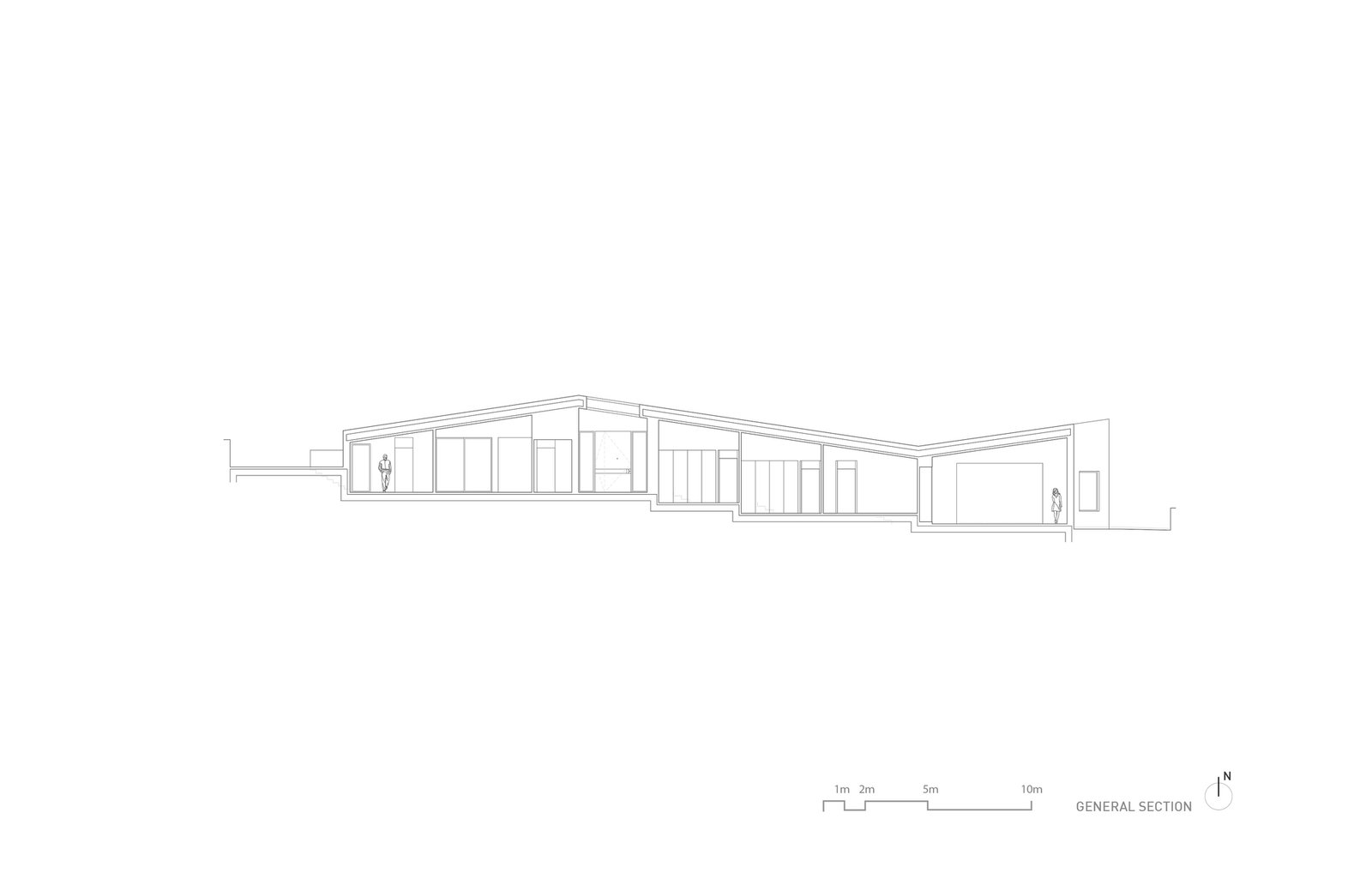 La arquitectura no se impone, si no que se acomoda para obtener lo mejor del terreno en beneficio propio. El programa se desarrolla en su totalidad en planta baja , mostrando su compromiso con el entorno de no sobresalir más de lo necesario, además de ofrecer al usuario una forma de habitar sencilla, ordenando el funcionamiento en torno a las estancias diurnas , tanto construidas como no construidas.
