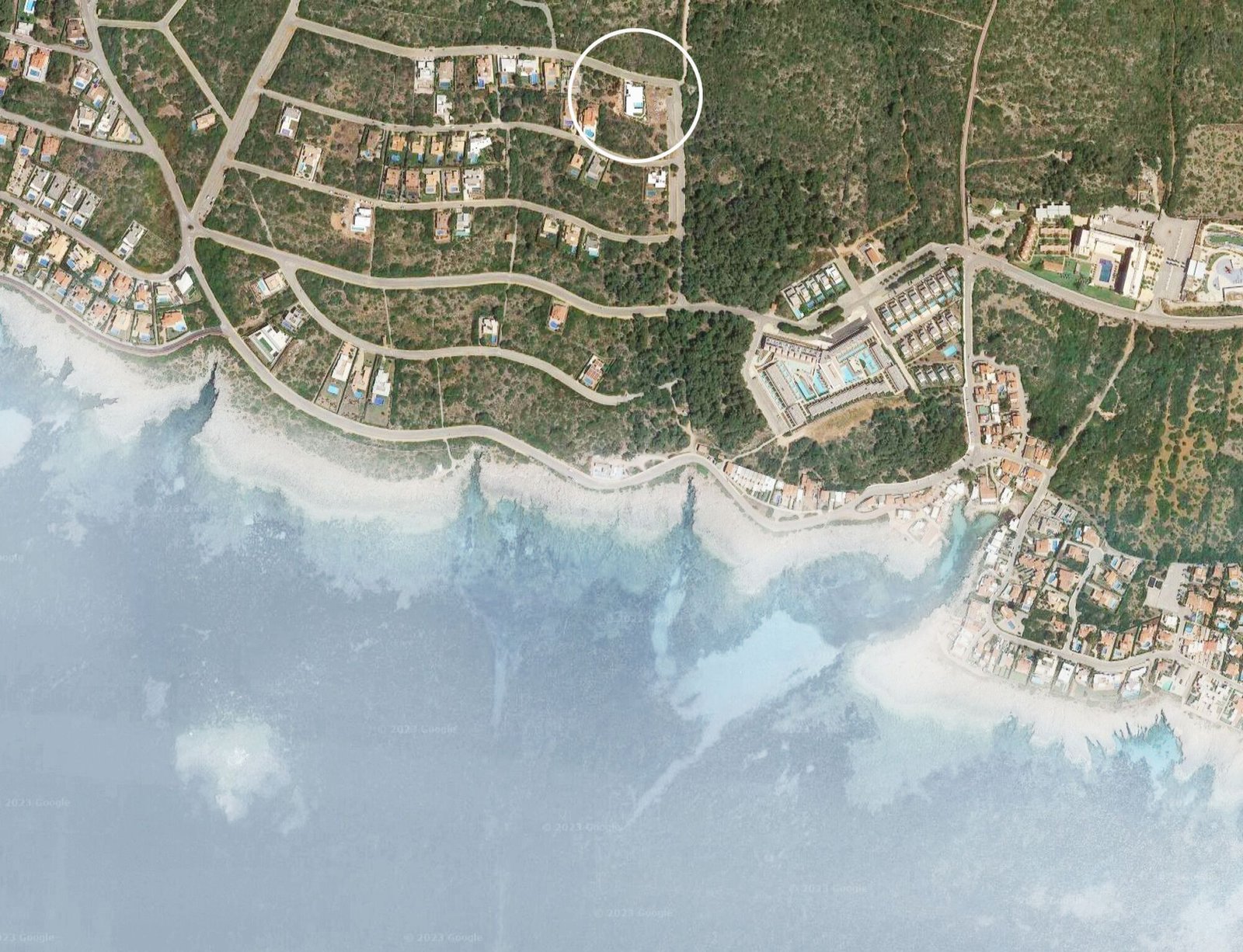 La sala principal se abre a las vistas de la costa Sur menorquina a la vez que se protege de la Tramontana permitiendo que la brisa que asciende desde el mar atraviese y refresque la estancia en verano, mientras que en invierno permite adaptarse a los intensos vientos con una suerte de espacios exteriores situados estratégicamente.