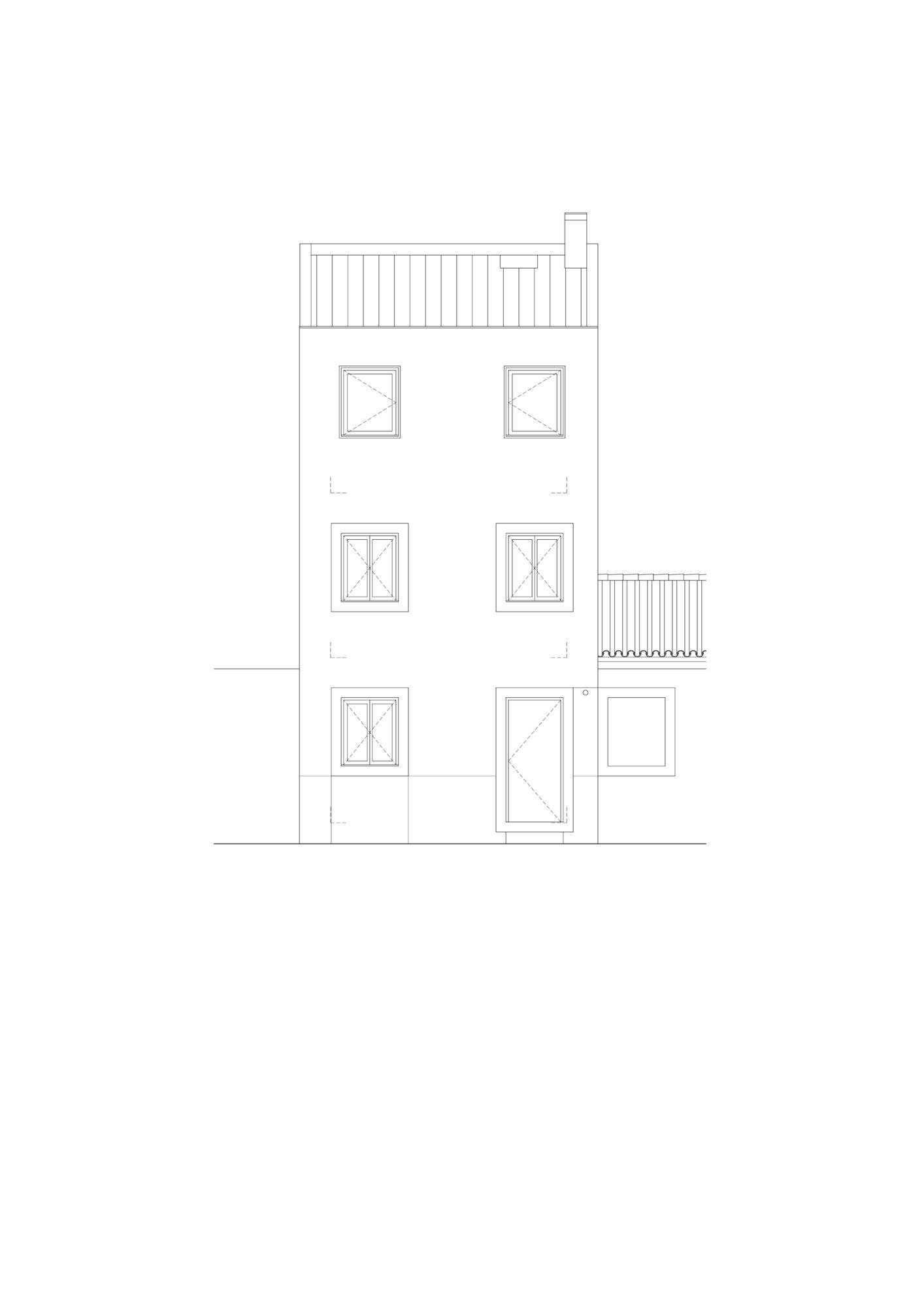 La casa presenta un volumen claro y reconocible, con fachadas que expresan la presencia de las aberturas existentes y restauradas en contraste con las nuevas introducidas.