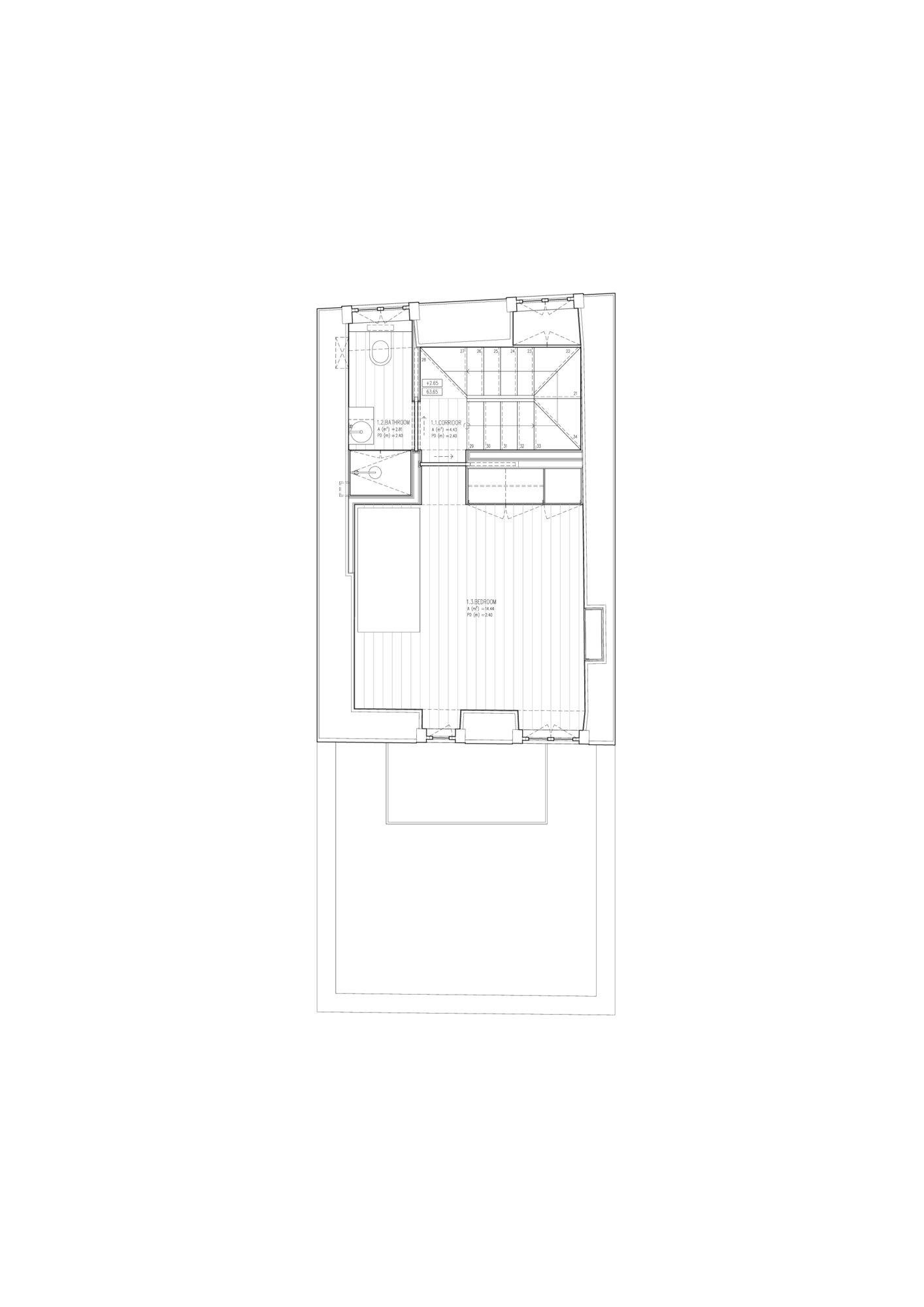 Las plantas superiores (plantas 1 y 2) se reservan para las zonas privadas de la casa, compuestas por dos dormitorios y dos baños.