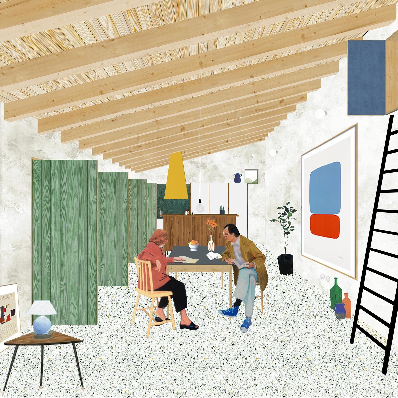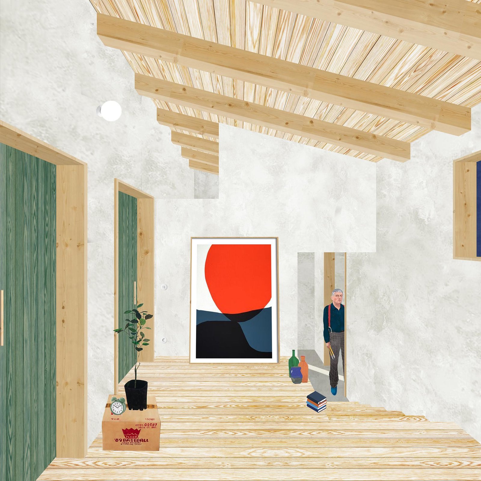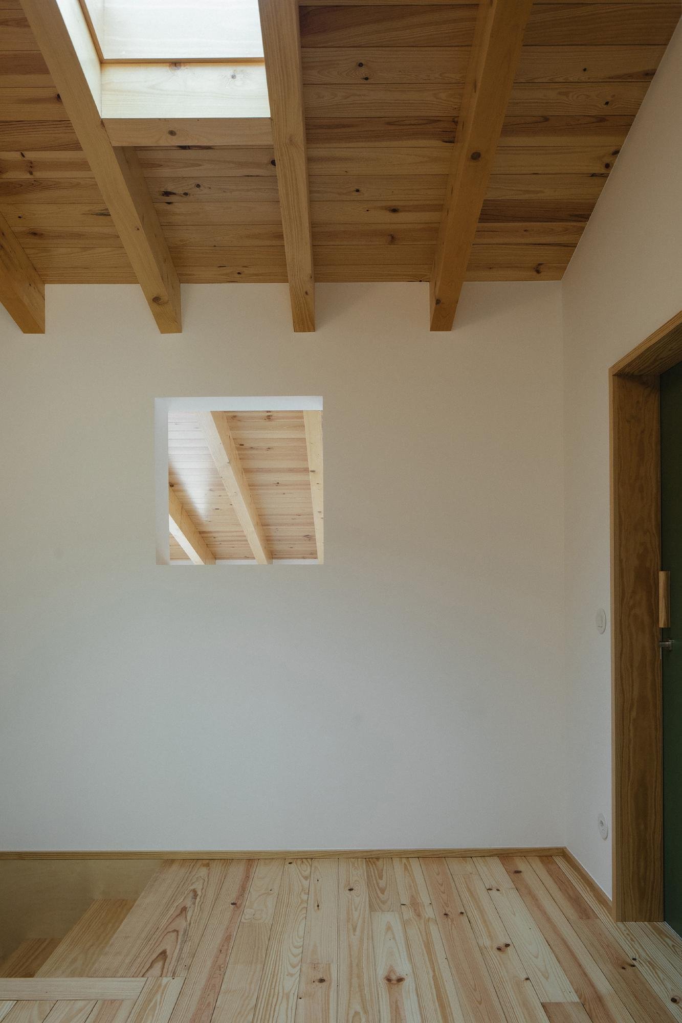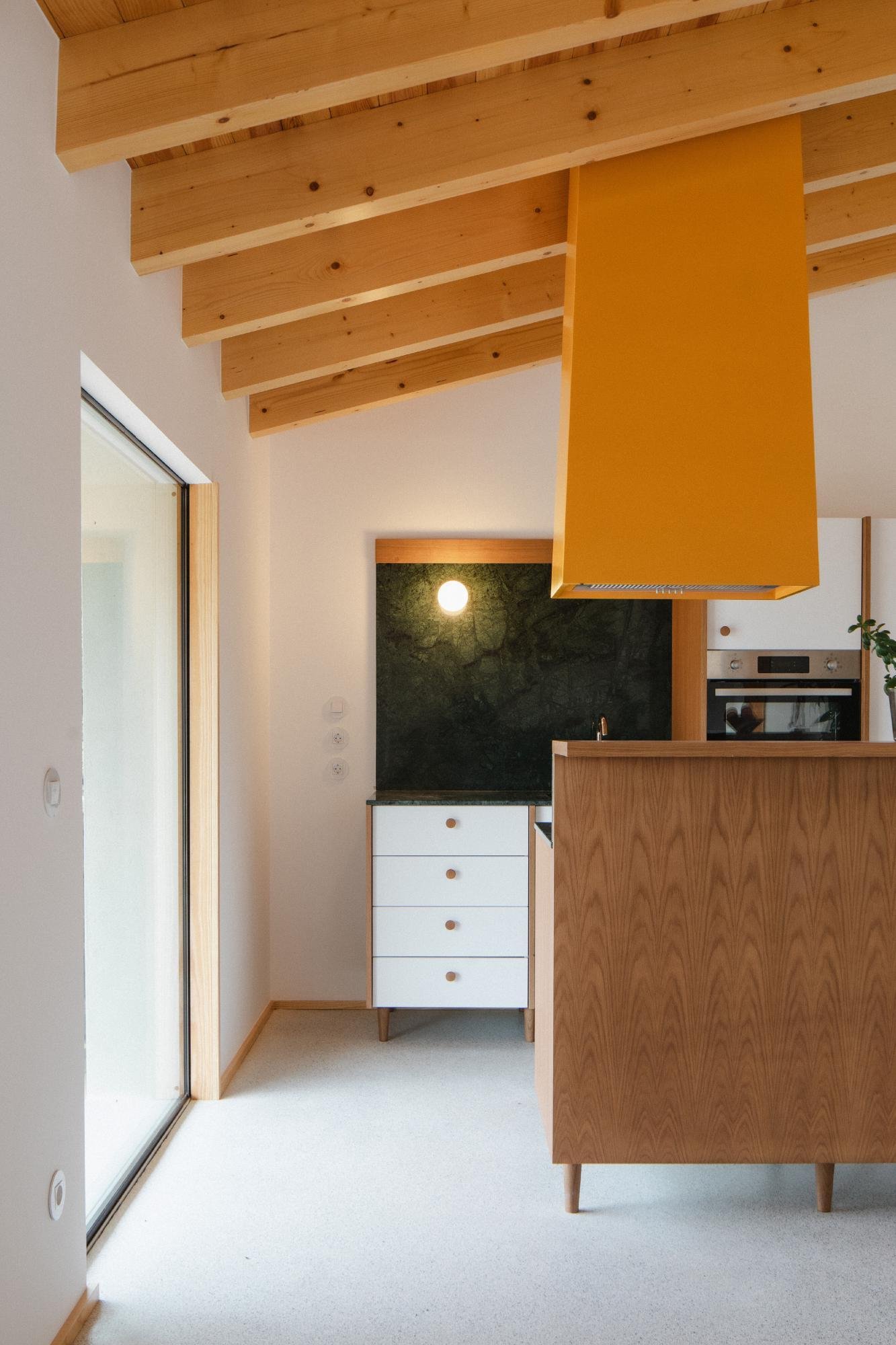 La claridad constructiva del espacio se manifiesta en la sencilla presentación de los materiales. Las vigas de madera a la vista definen la geometría del techo, aportando ritmo y unidad. La zona social —sala de estar, cocina y comedor— crea un espacio continuo que fomenta la interacción y la conexión con el exterior. El techo de madera a la vista unifica los espacios, mientras que los nichos y rincones crean momentos de introspección y funcionalidad. Tres dormitorios, incluyendo una suite, garantizan comodidad y privacidad.