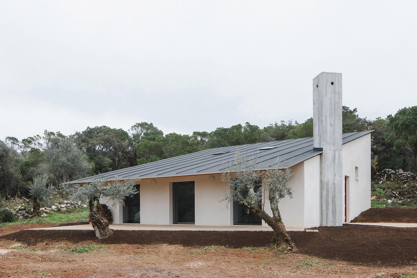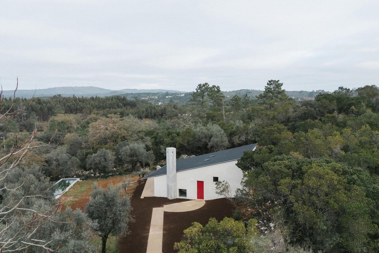 La Casa en el Cerrado surge de una profunda comprensión del paisaje y su dinámica. Ubicada en Moita Santa de Cima, un pequeño pueblo del municipio de Ansião, se encuentra en un entorno rural definido por muros de piedra seca que delimitan los campos de cultivo, describiendo la relación entre lo construido y lo natural. Este paisaje, moldeado por la agricultura y la ganadería a lo largo de los siglos, guía la ubicación y la expresión de la casa.