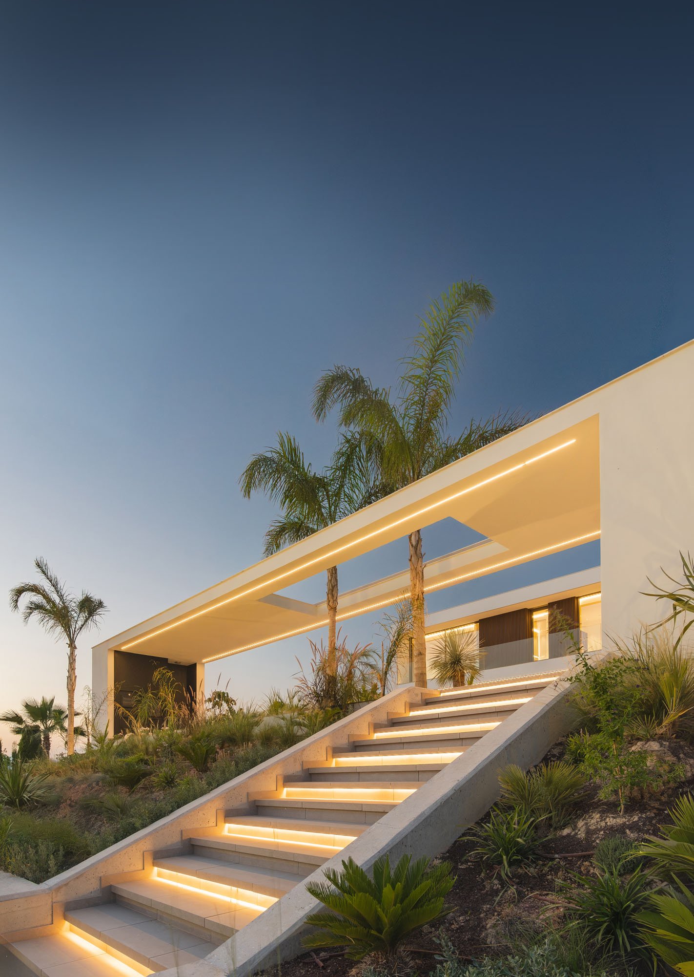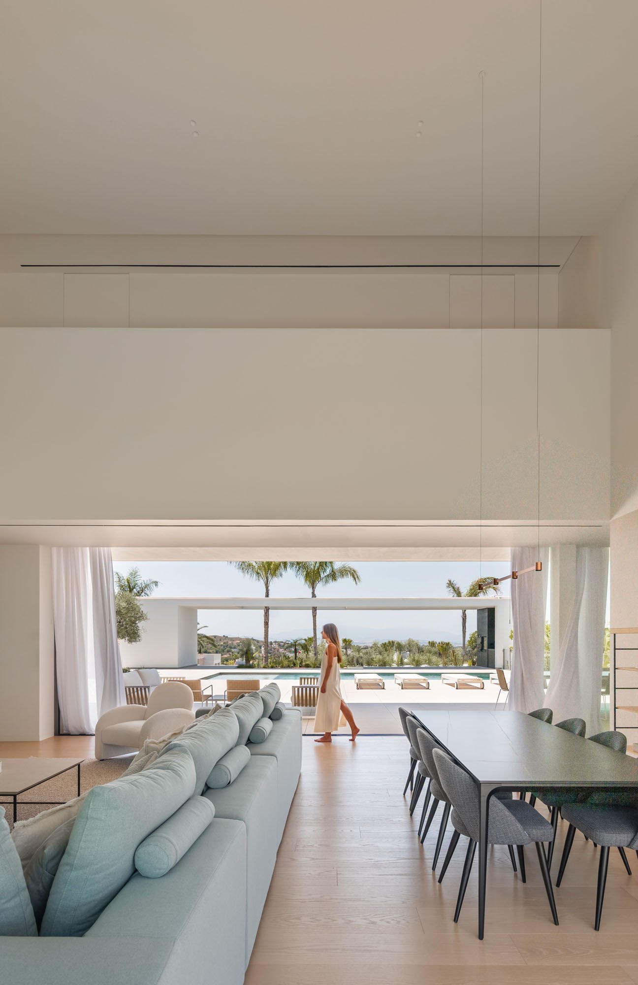El programa de la vivienda, orgánico y diáfano en el interior, queda protegido por grandes marcos puros que se abren de forma estratégica incorporando a los espacios el paisaje inmediato.