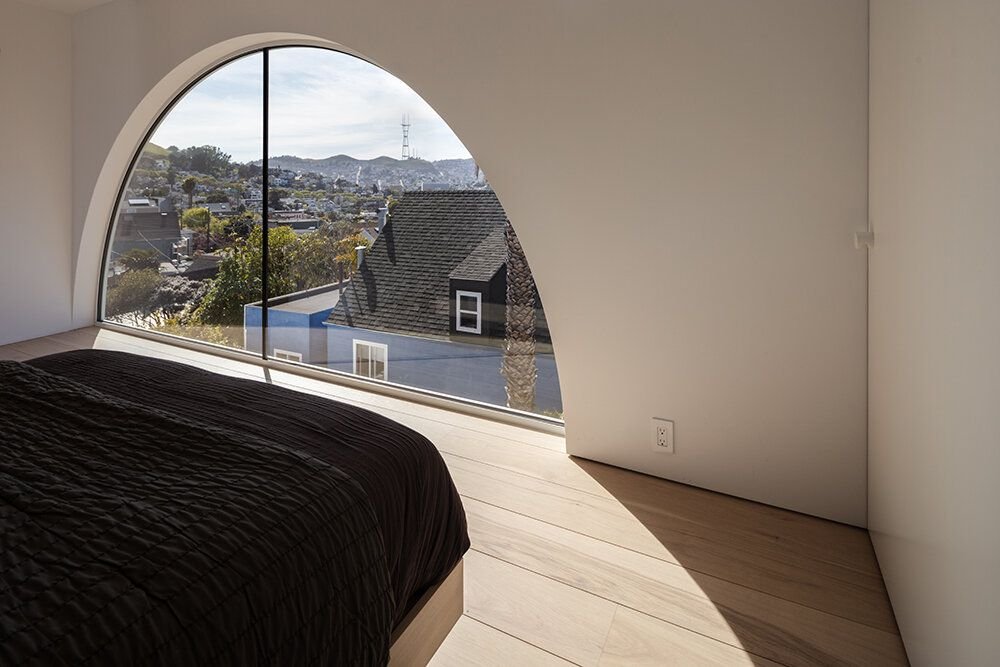 El espacio diáfano está delimitado por una torre independiente con forma de flor, que separa el interior del exterior. Mobiliario y obras de arte seleccionados por Studio Ahead .