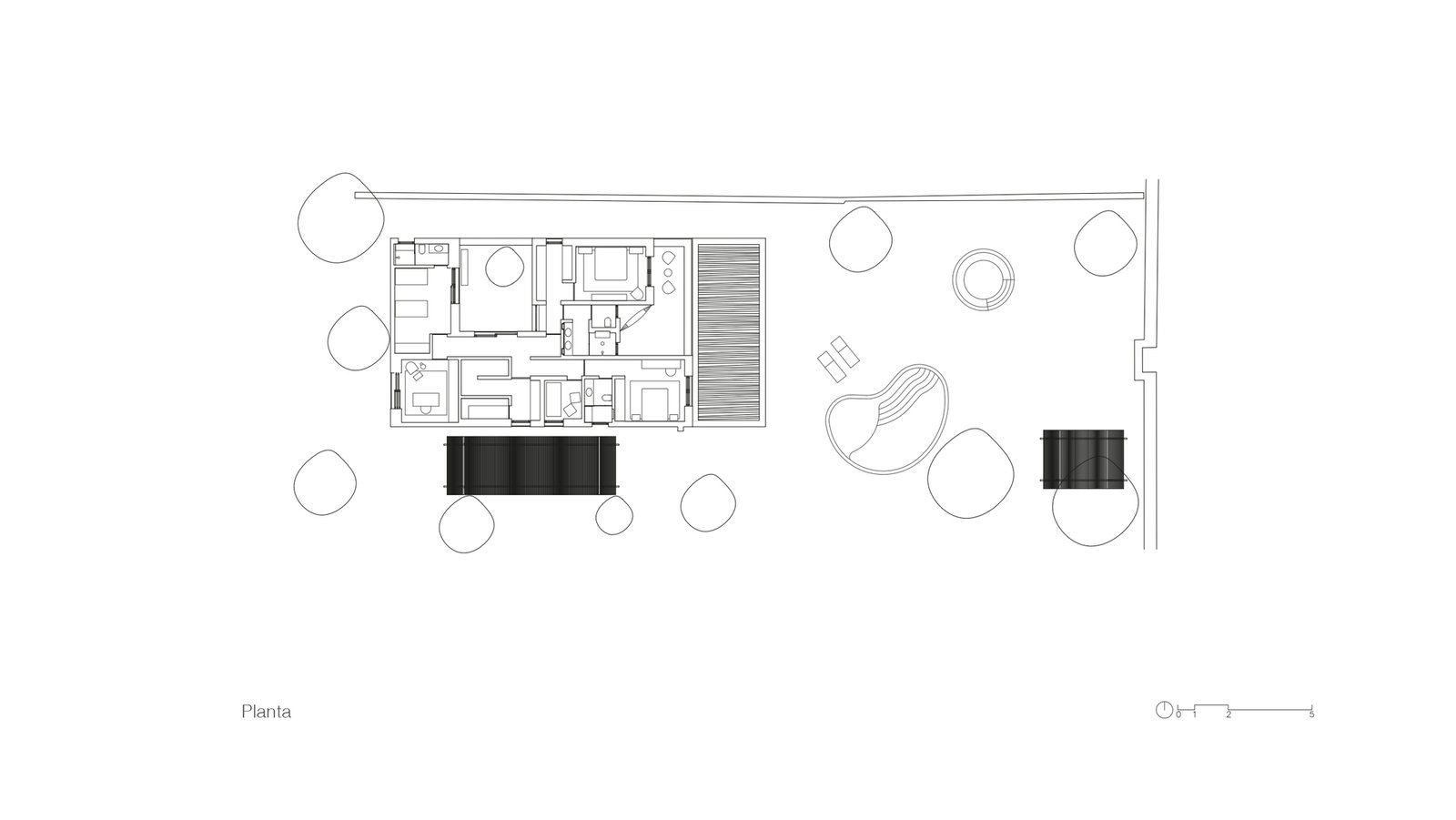 Localizada en un lote estándar con vista directa al canal, Casa Laranjeiras fue concebida a partir de la relación entre contención volumétrica y ligereza espacial. Con aproximadamente 450 m² y cuatro suites, el proyecto maneja un programa denso sin comprometer la fluidez o la luminosidad de los ambientes.