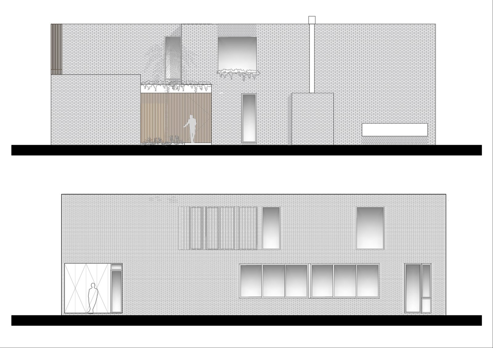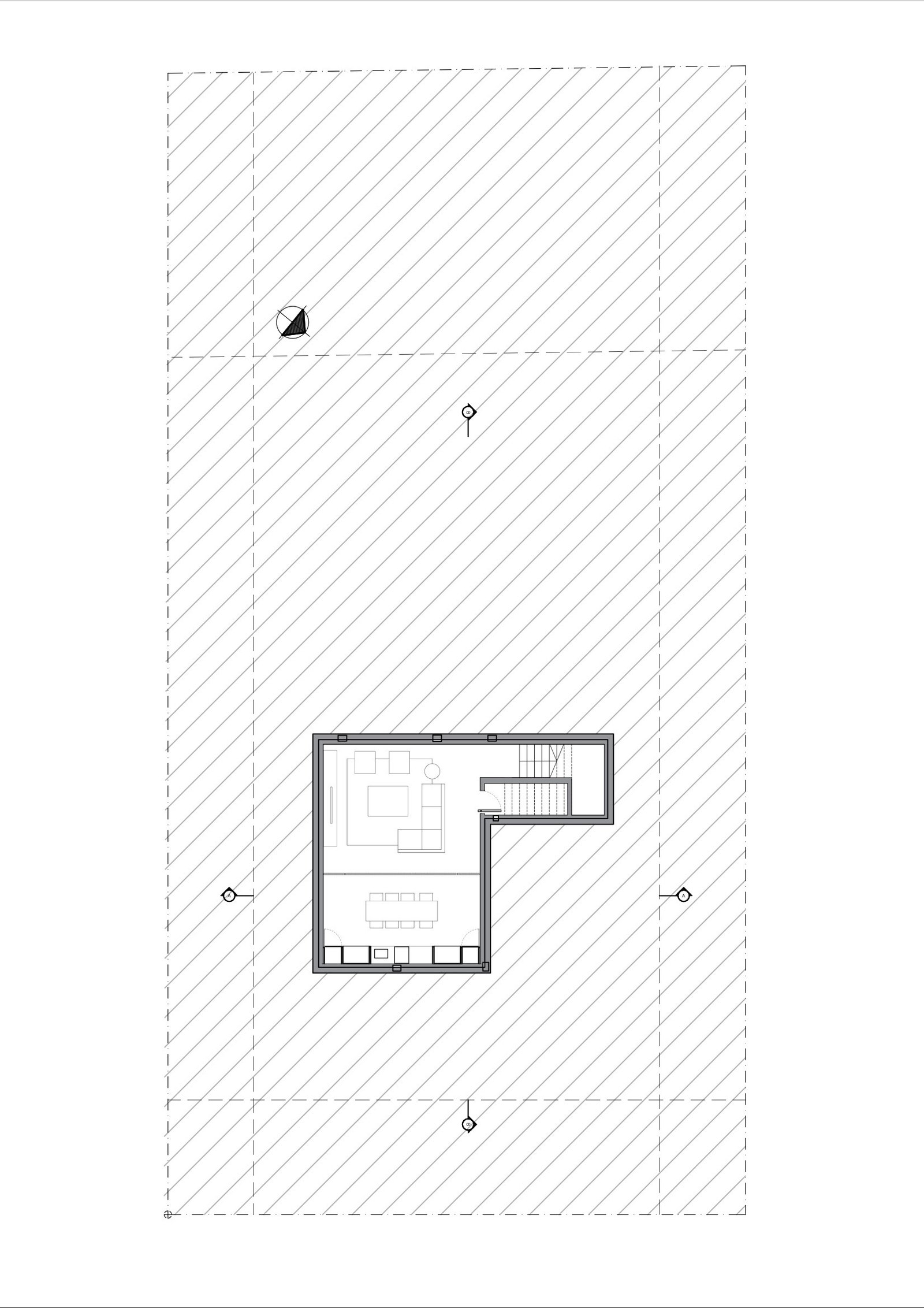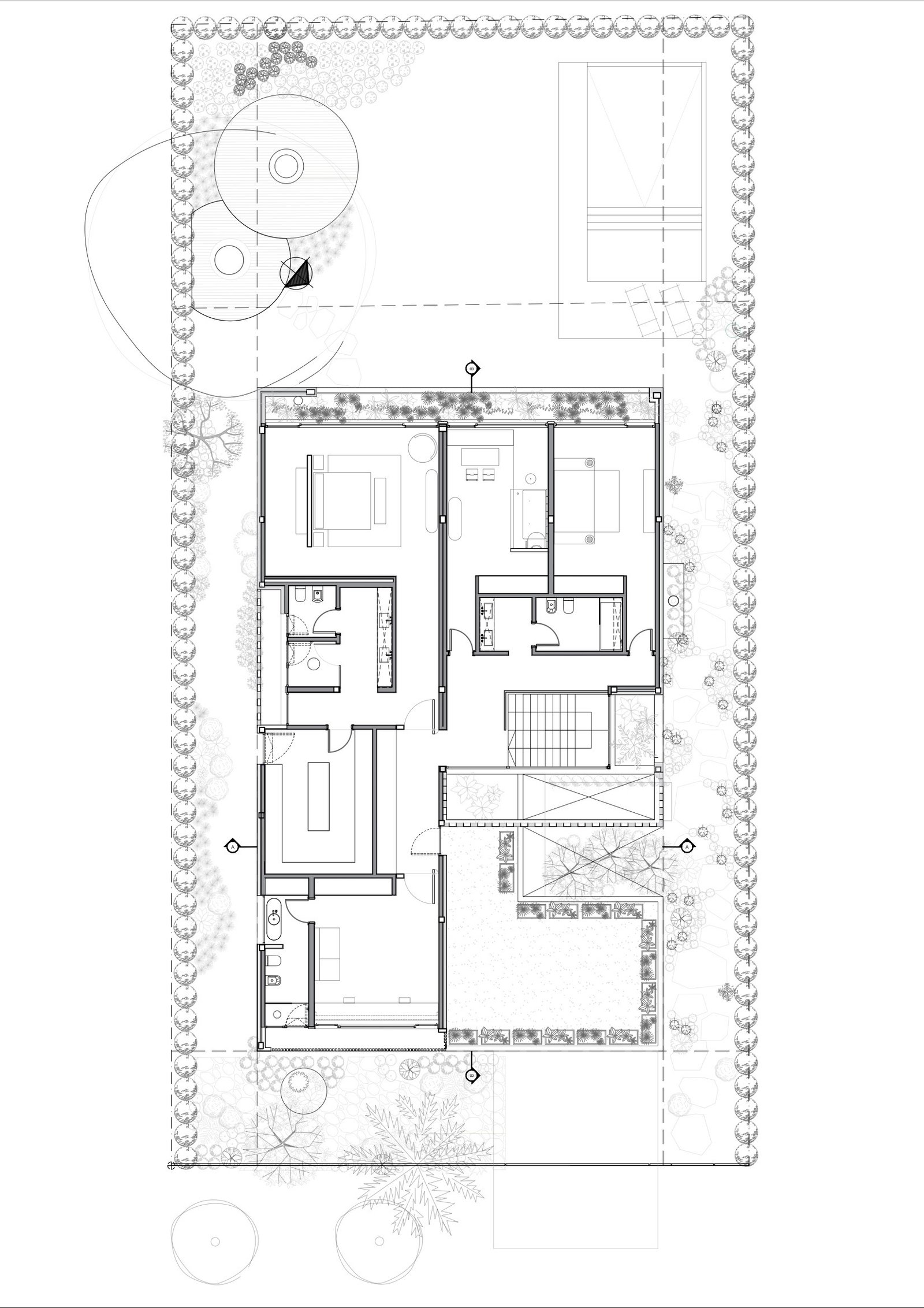 El sector privado se lleva a cabo en planta alta, que se accede a través del núcleo de escalera el cual posee un juego de luces y sombras gracias al parasol antes mencionado. Este nivel cuenta con una terraza transitable, la cual conforma un mirador hacia las copas de los arboles y las construcciones vecinas. El ladrillo resume todo el volumen y se incorpora naturalmente en el tejido de viviendas que el barrio posee.