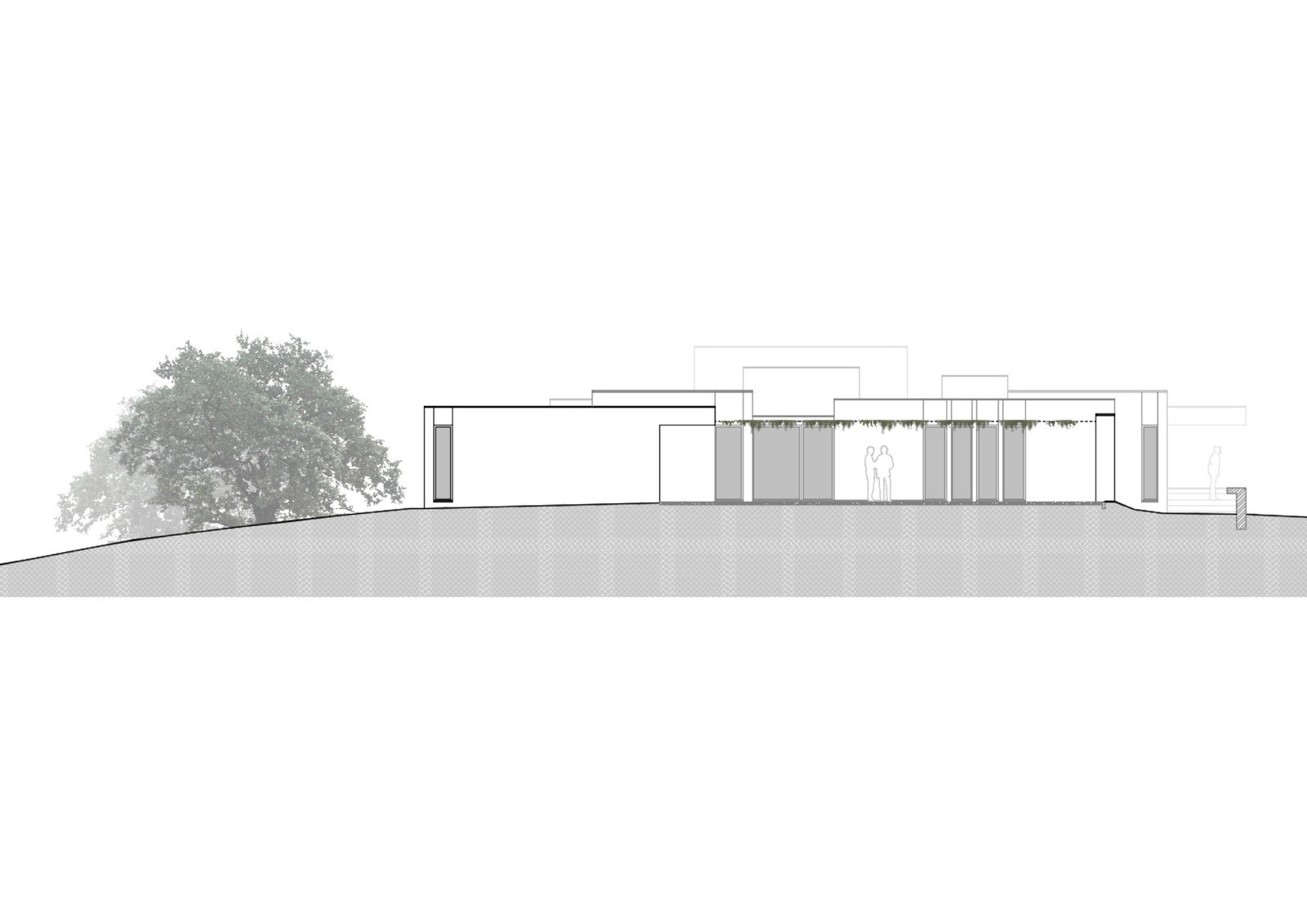 Esto crea una distancia intencionada que proporciona privacidad para el uso diario y obliga a realizar un recorrido de aproximación. Permite apreciar visualmente el edificio antes de llegar a la entrada.