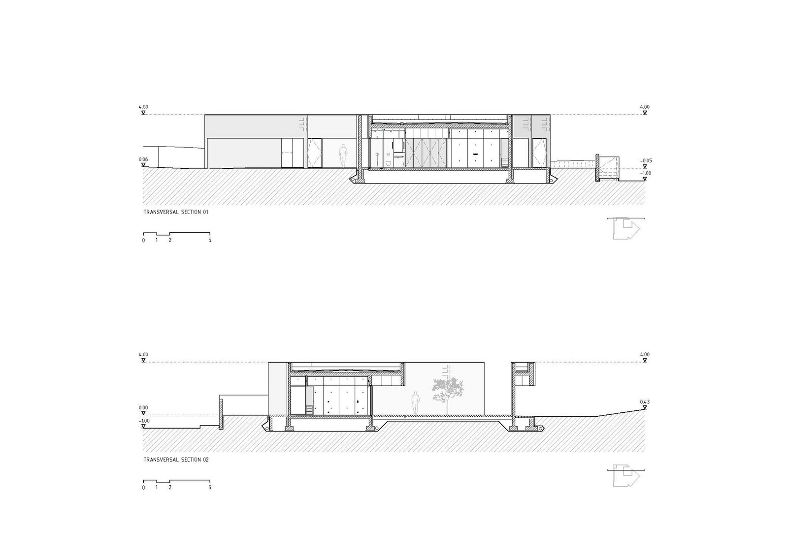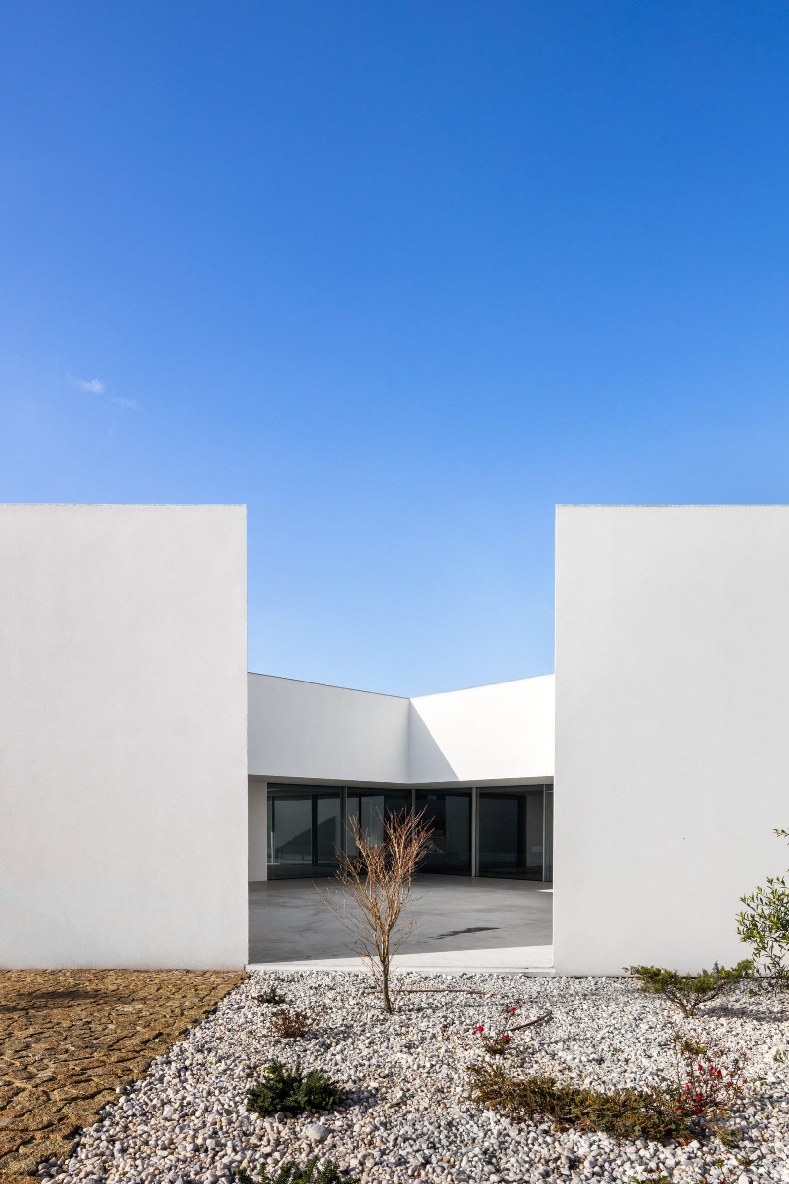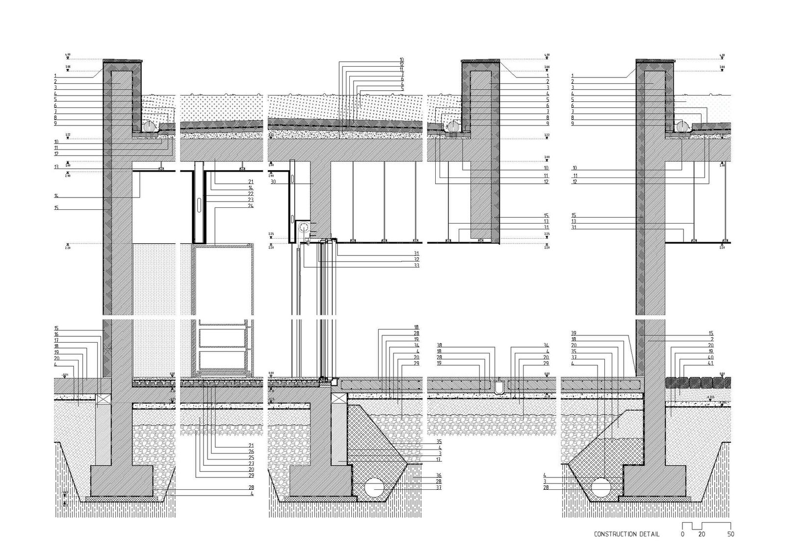 Los muros de la casa están cubiertos por elementos naturales que los revisten y anulan su presencia visual. La vegetación forma parte de la estrategia de integración paisajística, recurriendo a especies autóctonas del territorio en el que se inserta.