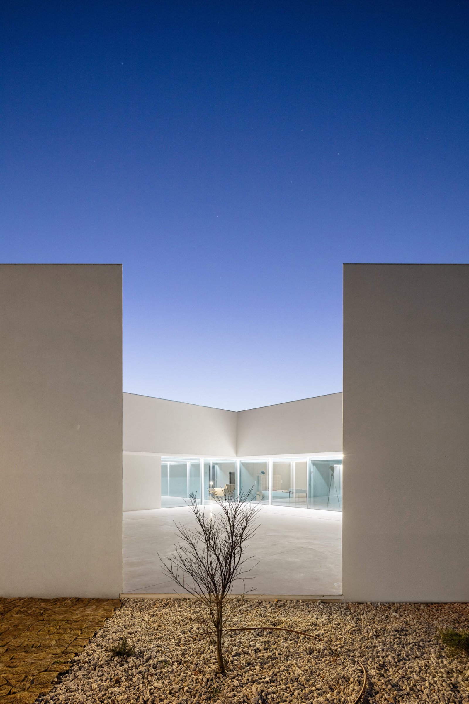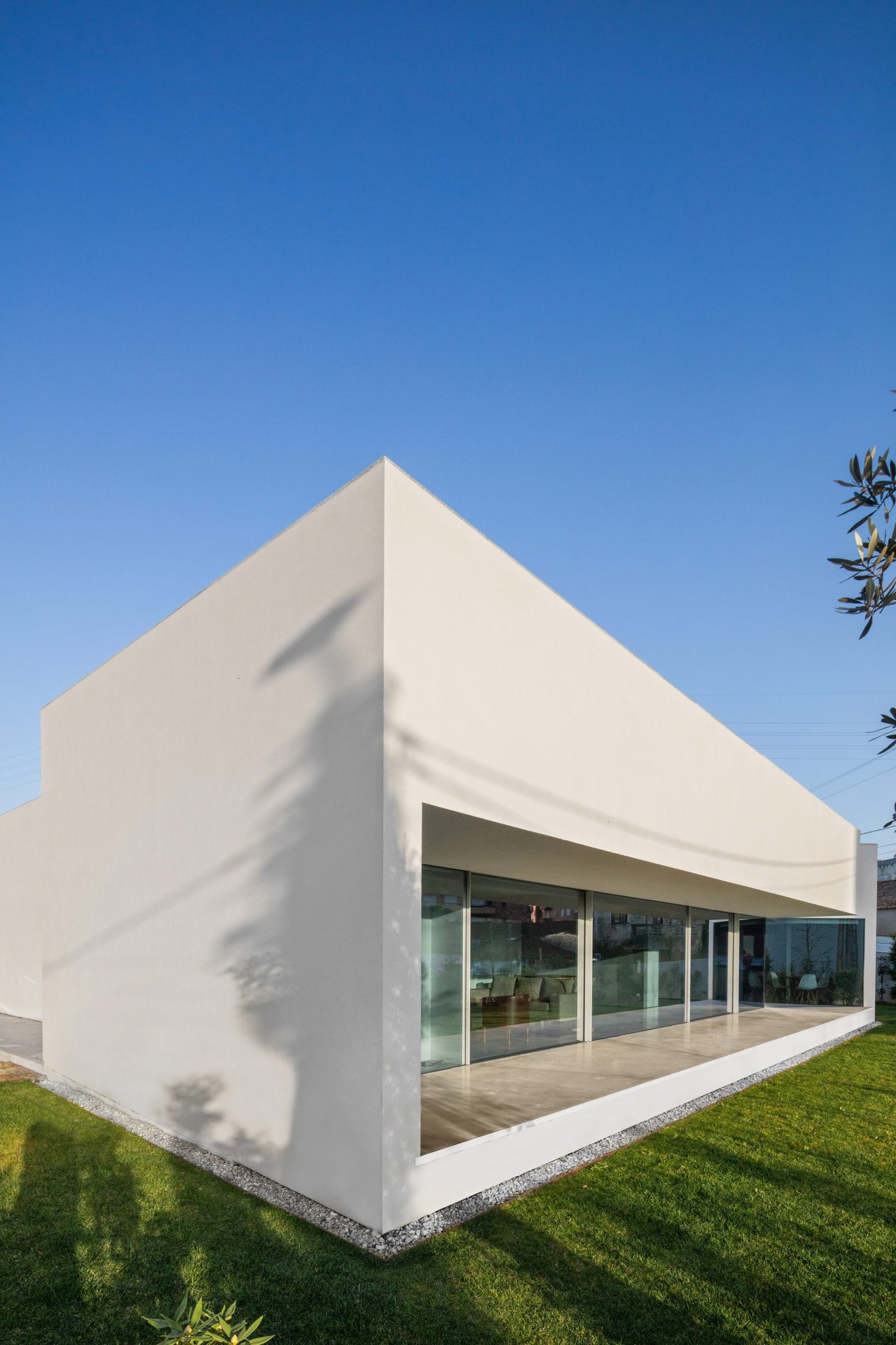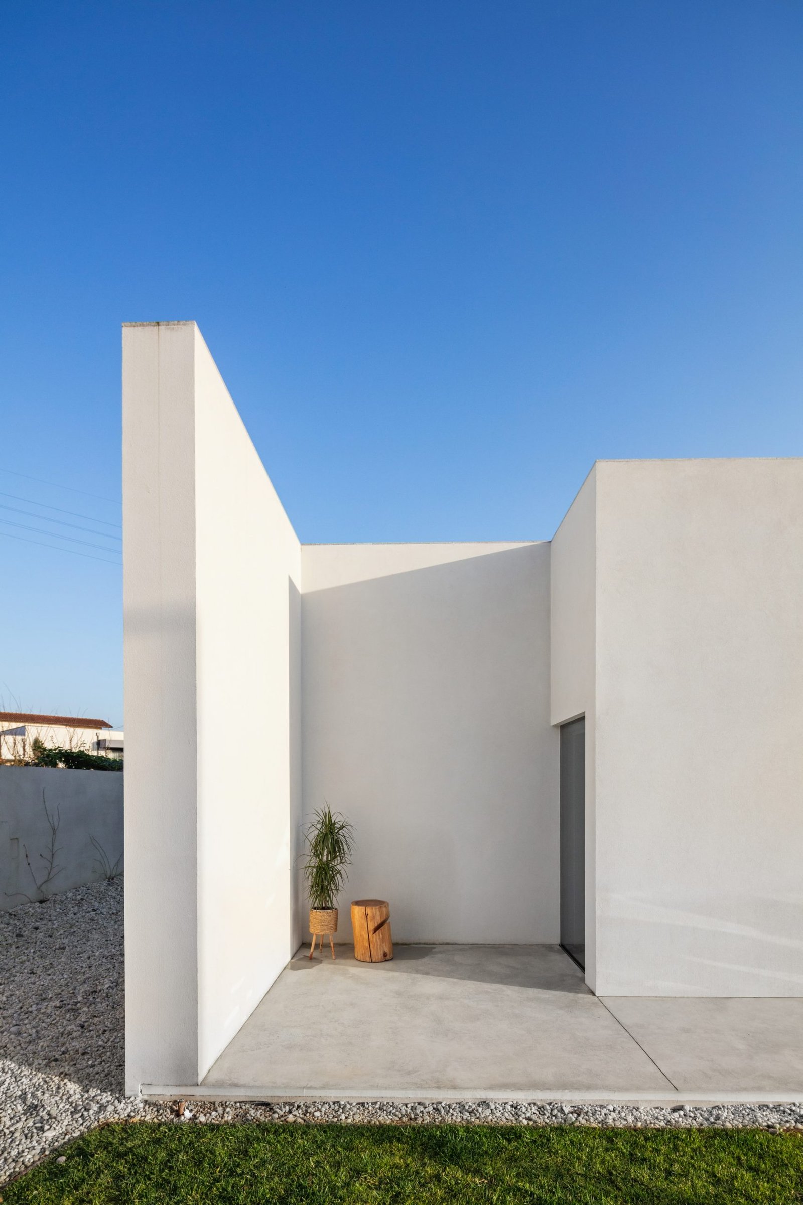 Los muros de la casa están cubiertos por elementos naturales que los revisten y anulan su presencia visual. La vegetación forma parte de la estrategia de integración paisajística, recurriendo a especies autóctonas del territorio en el que se inserta.