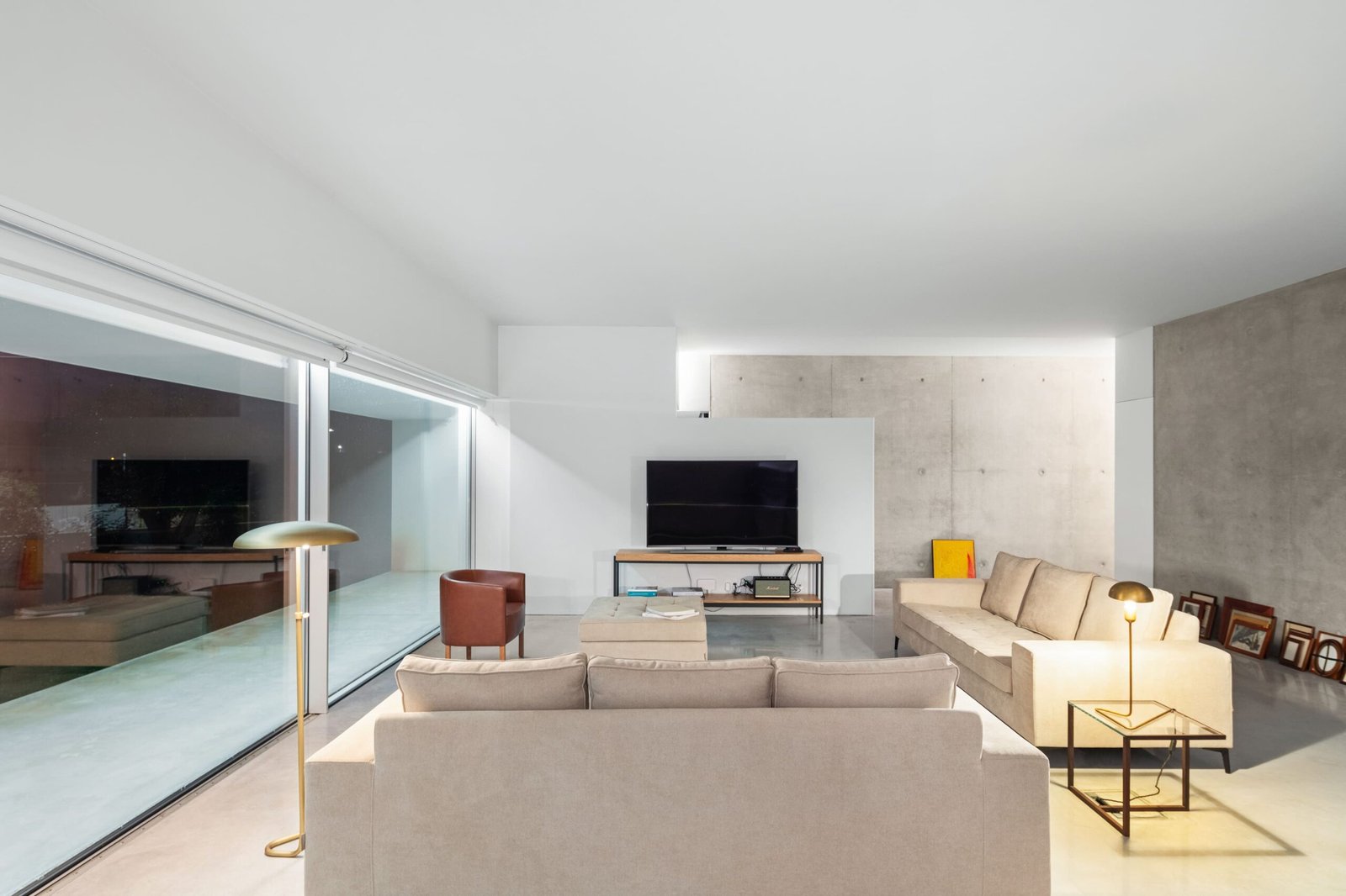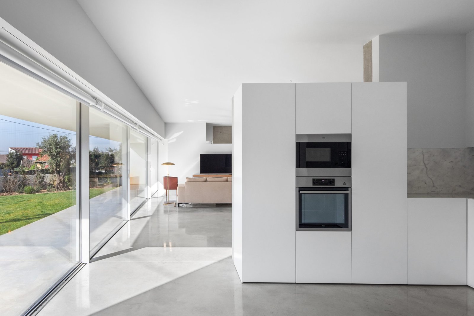 Los espacios principales de estar y servicio de la casa se organizan en torno al patio central, que sirve de apoyo a la actividad doméstica, protegido de las inclemencias por una galería exterior cubierta. La zona social está compuesta por la sala de estar y el comedor, en continuidad con la cocina y un espacio para desayunos. Los armarios de la cocina, con una altura de 2,1 m, filtran parcialmente el espacio común y el acceso a la despensa y lavandería.