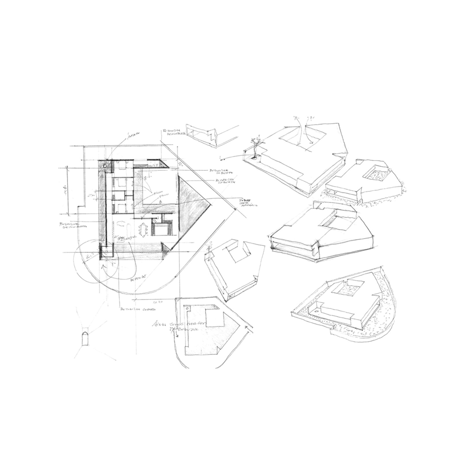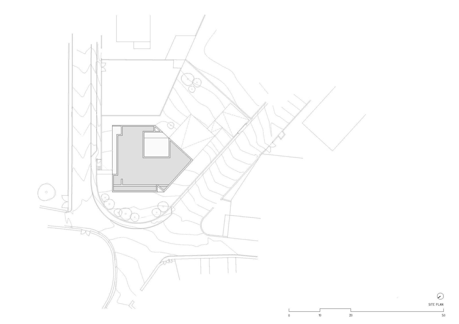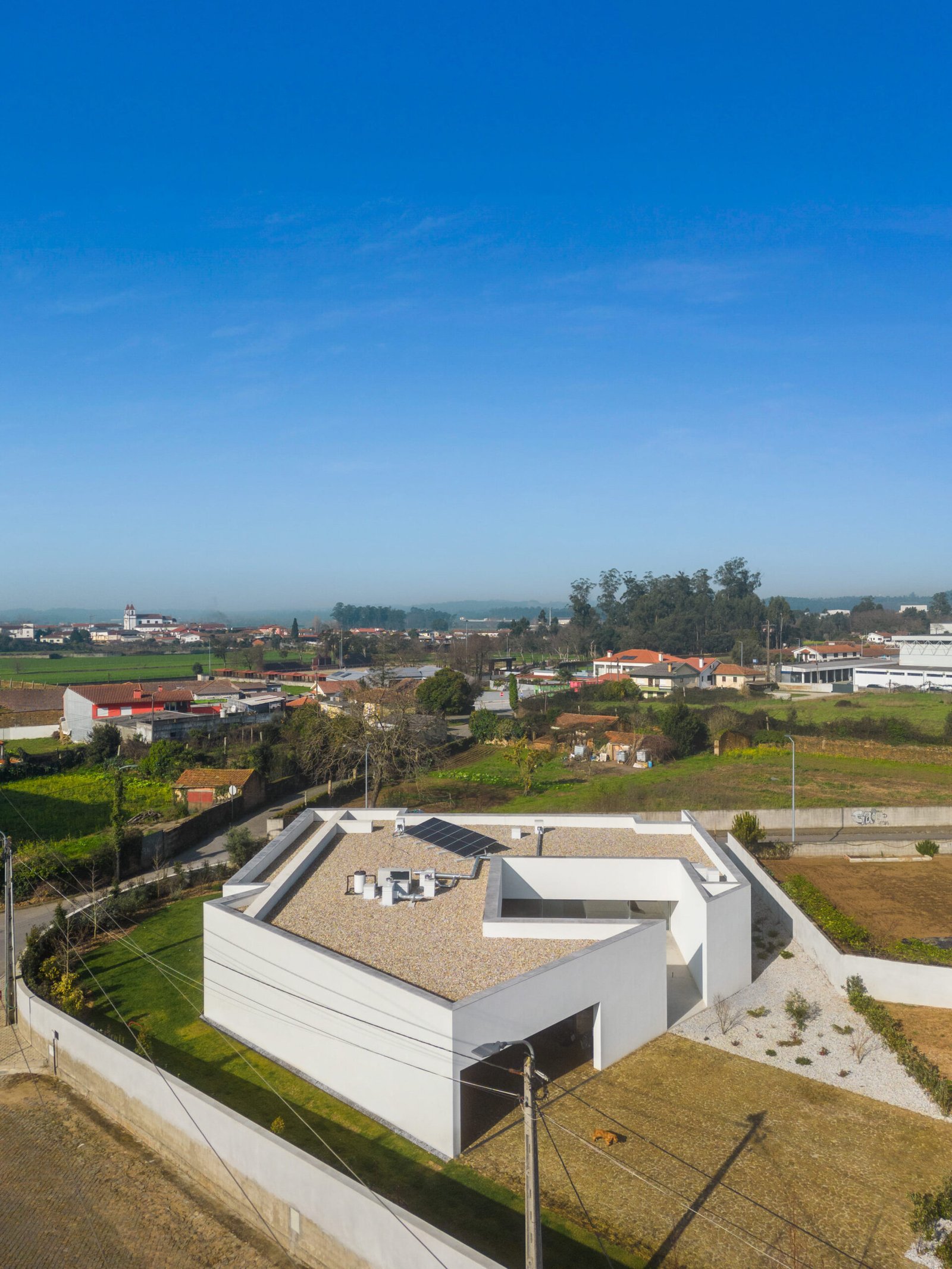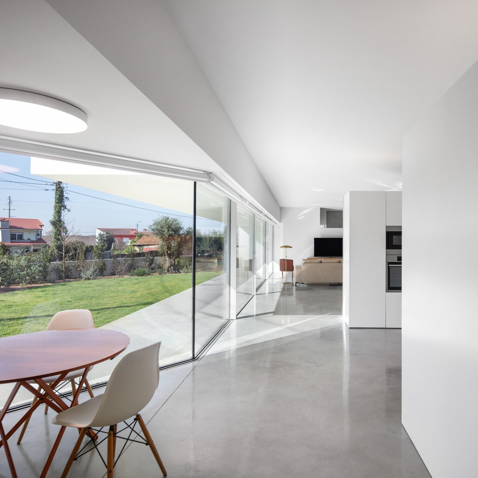 El ala privada de la casa está compuesta por dos dormitorios que comparten un baño y un dormitorio con vestidor y baño privado. El estacionamiento es un espacio cubierto que se conecta con la cocina a través de un vestíbulo.