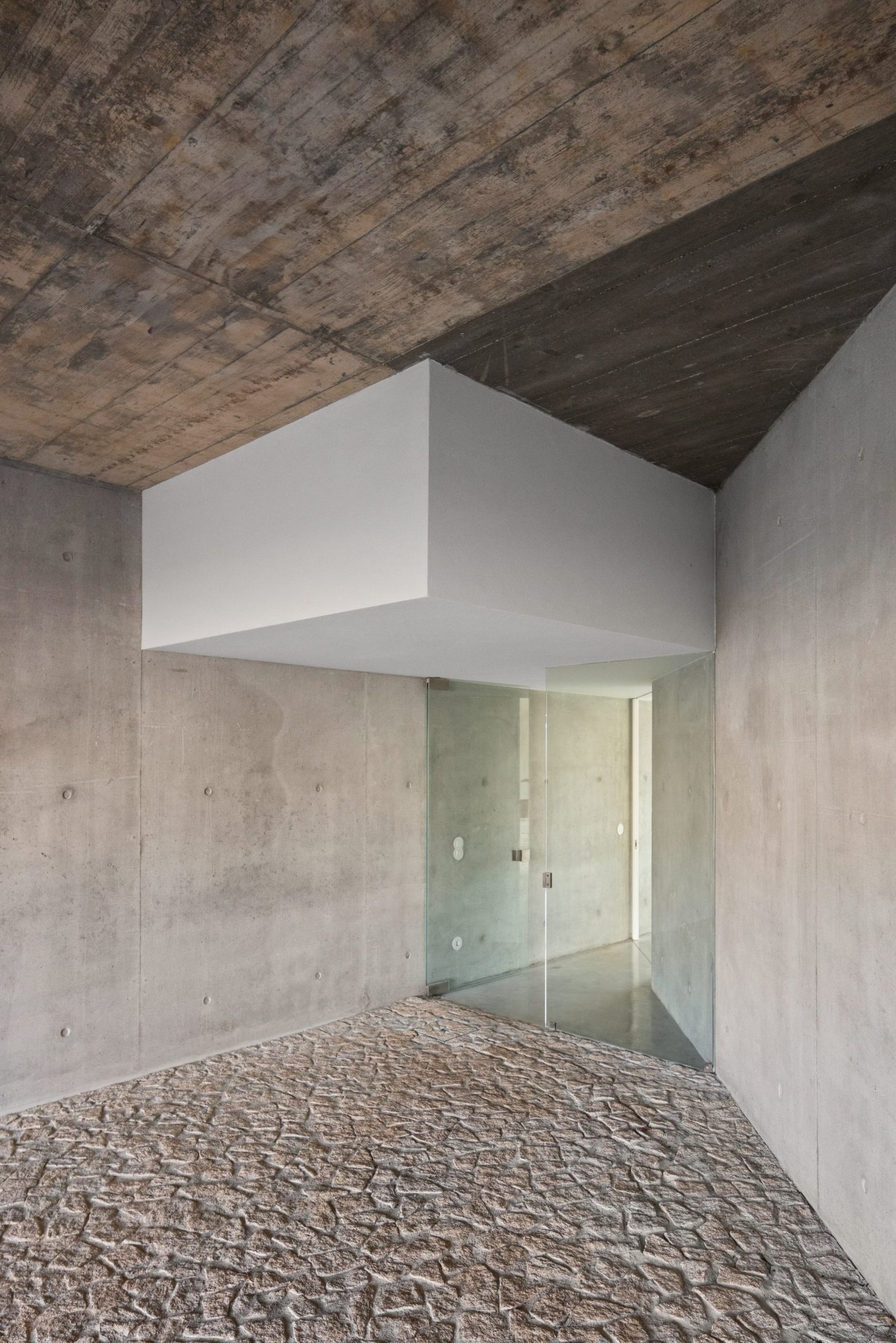 Los pavimentos exteriores están compuestos por adoquines de granito, el material que emerge del terreno.