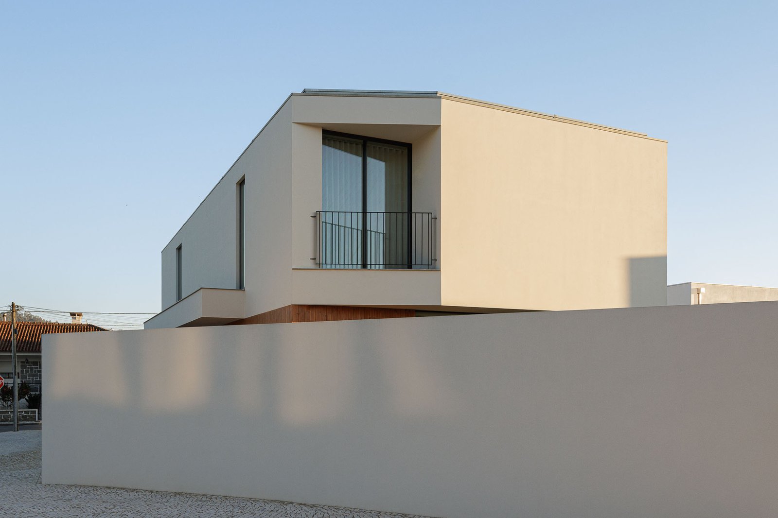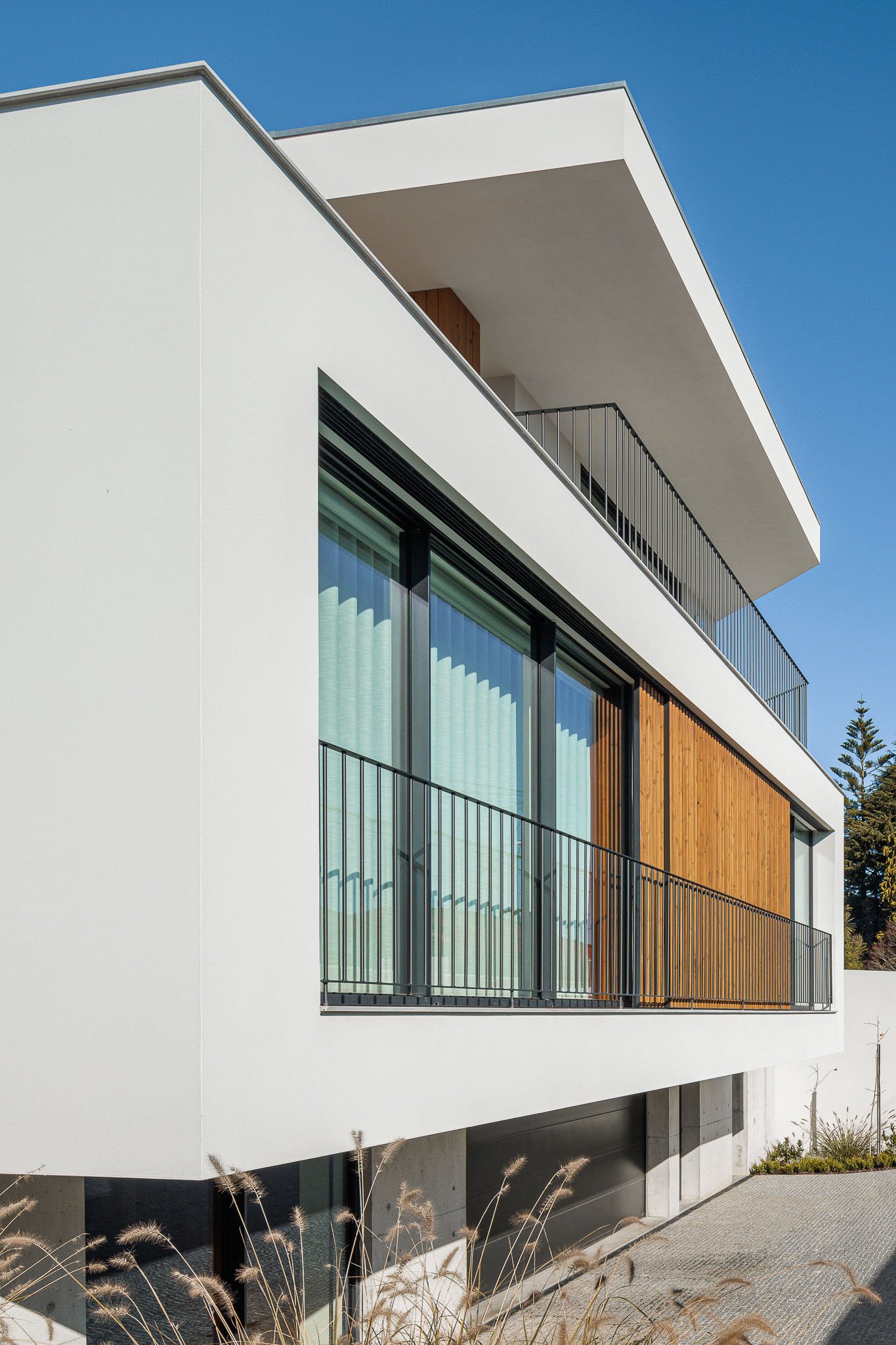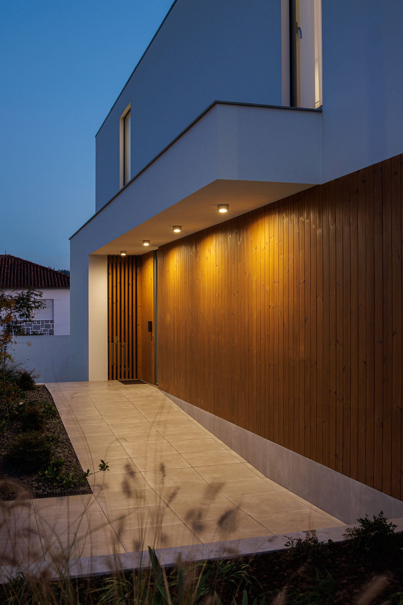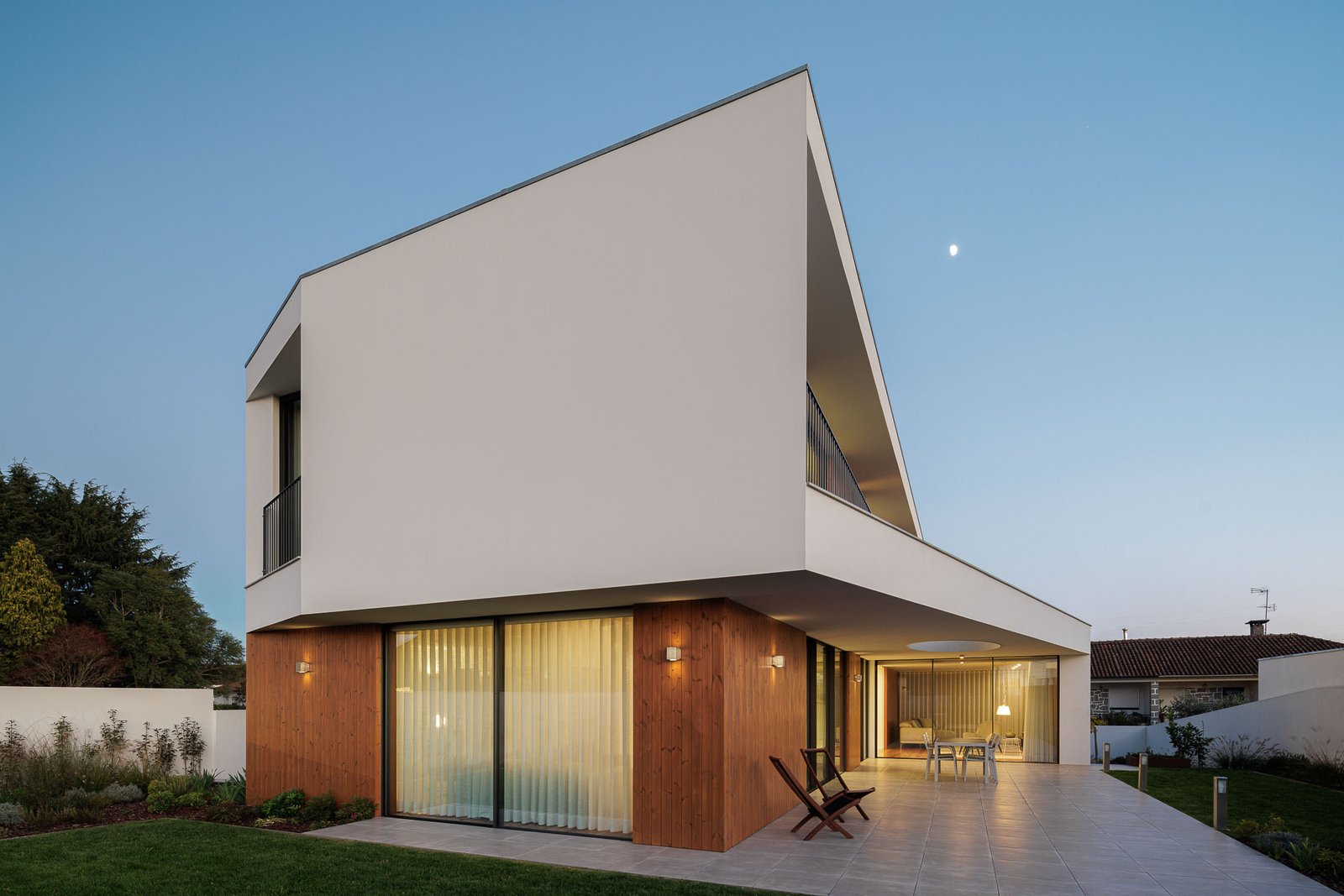 La casa, destinada a una pareja con dos hijos y distribuida en tres pisos, está emplazada en un terreno rectangular con buena exposición solar y vistas privilegiadas al Castillo de Santa Maria da Feira.
