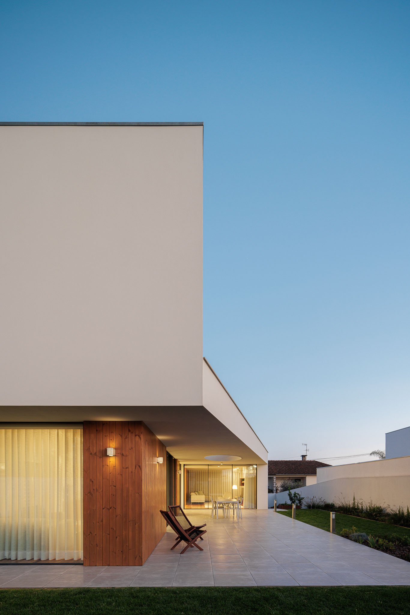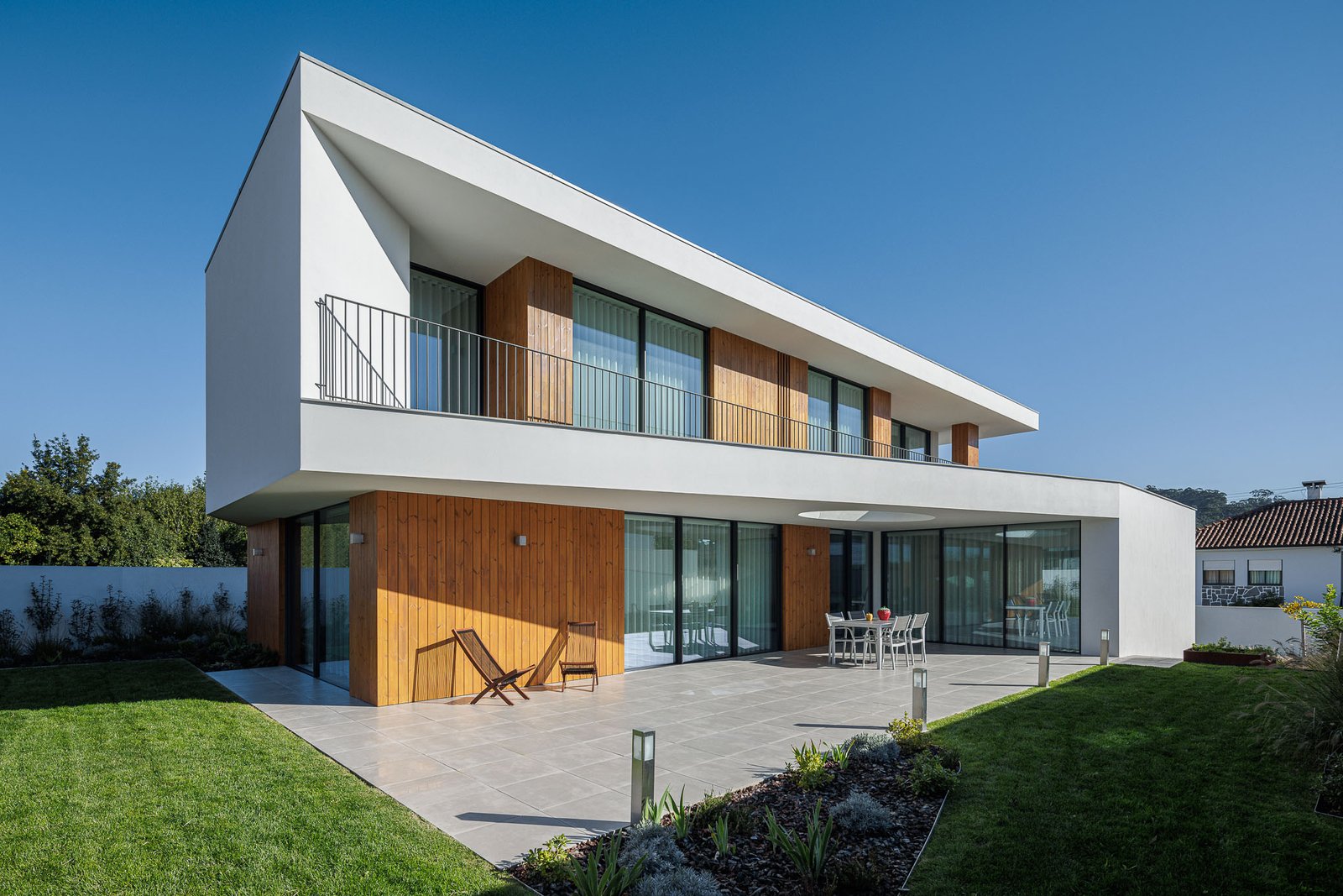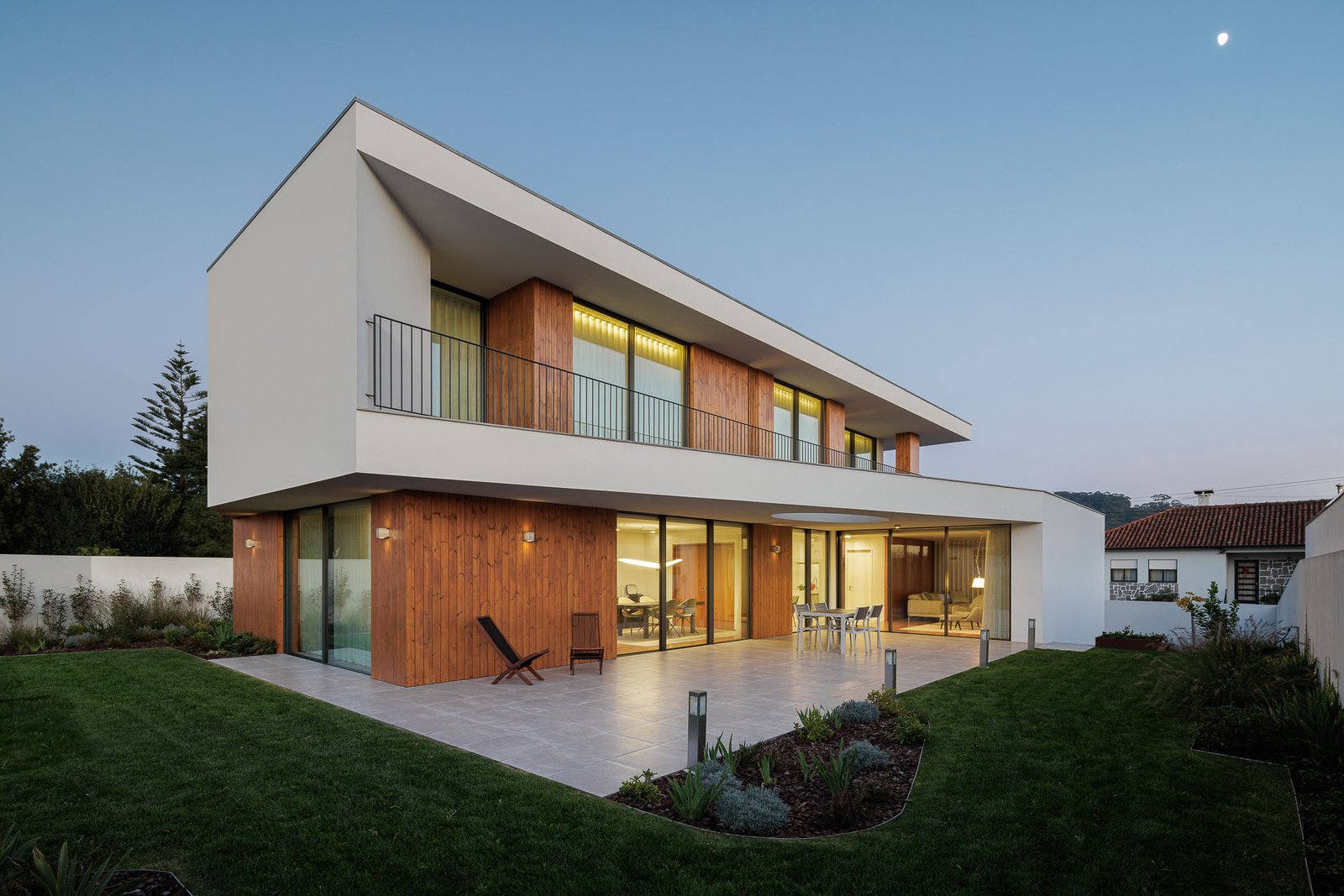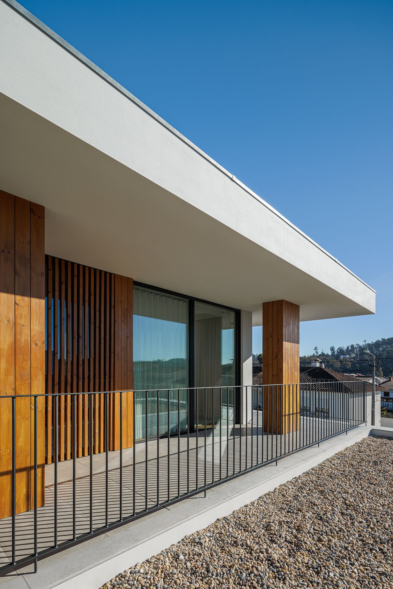 La casa, destinada a una pareja con dos hijos y distribuida en tres pisos, está emplazada en un terreno rectangular con buena exposición solar y vistas privilegiadas al Castillo de Santa Maria da Feira.