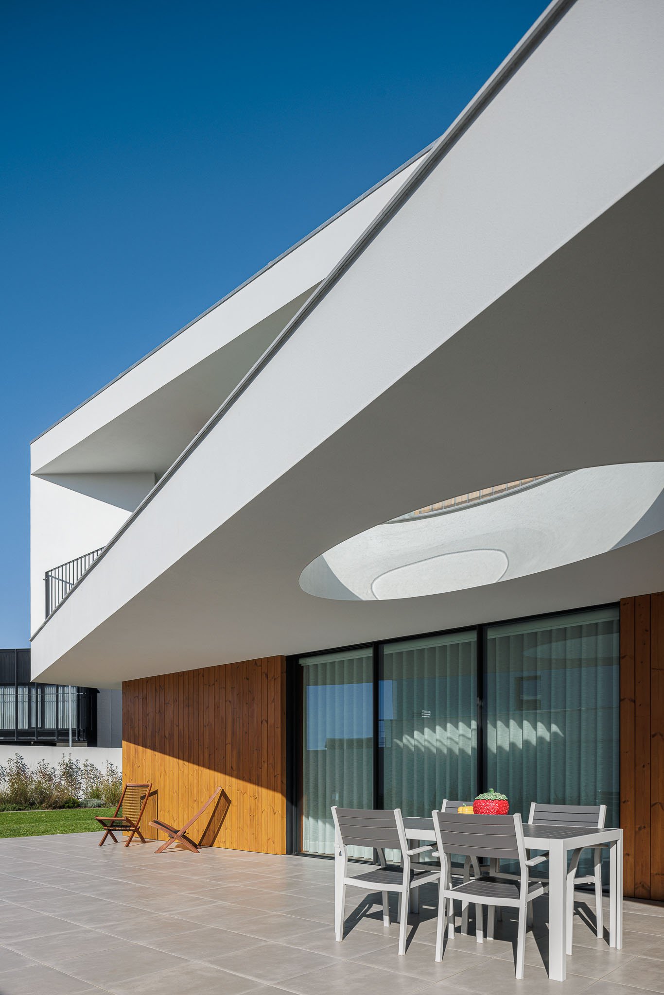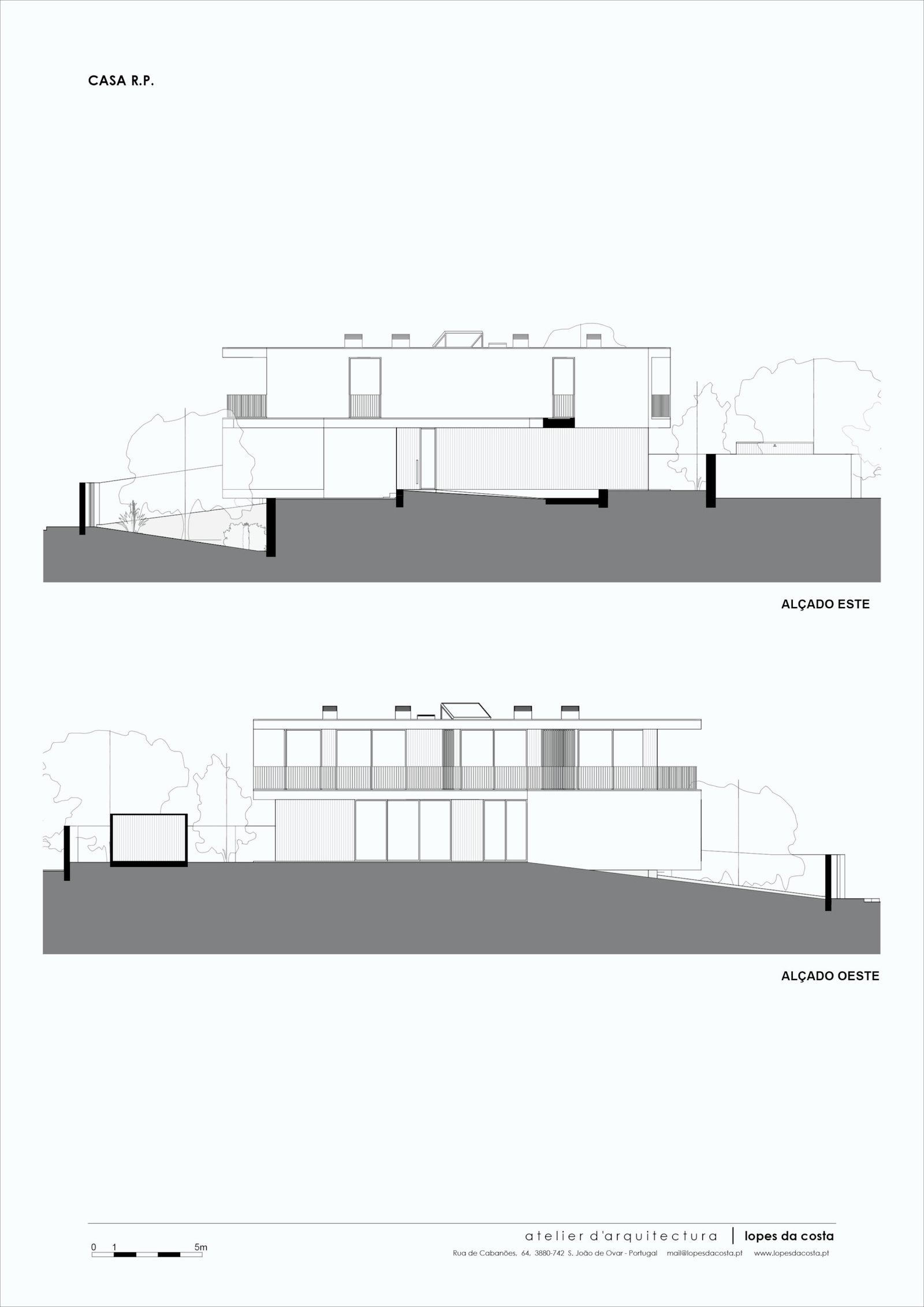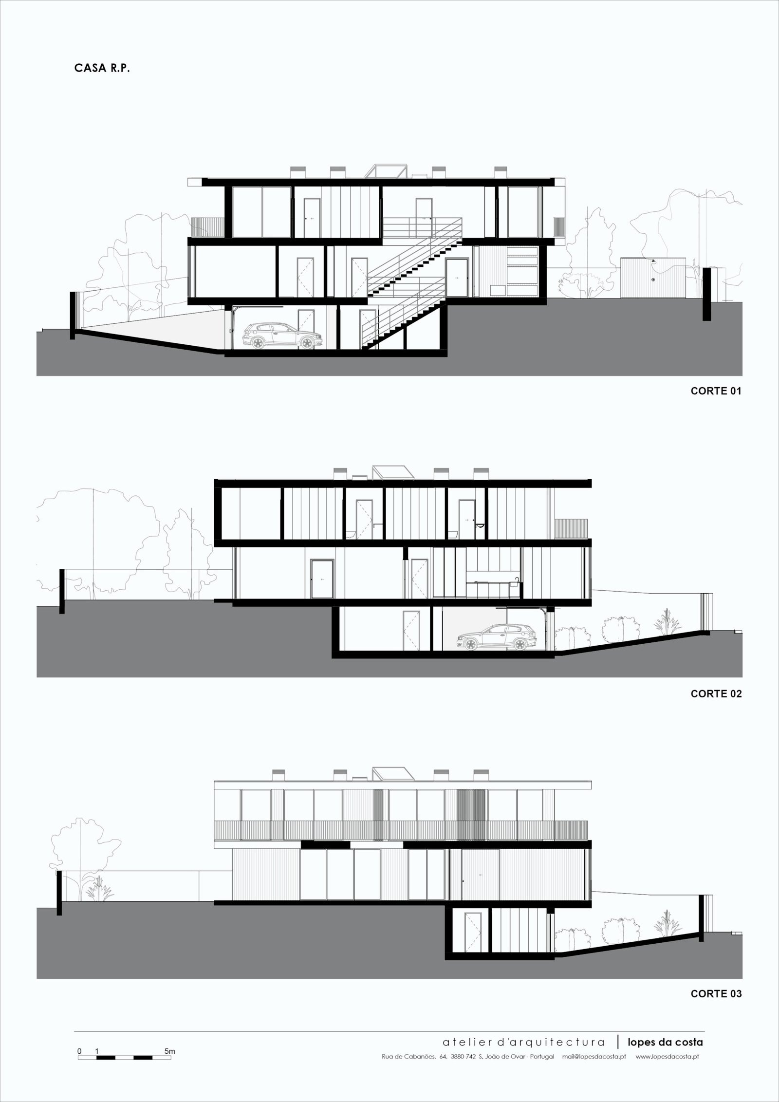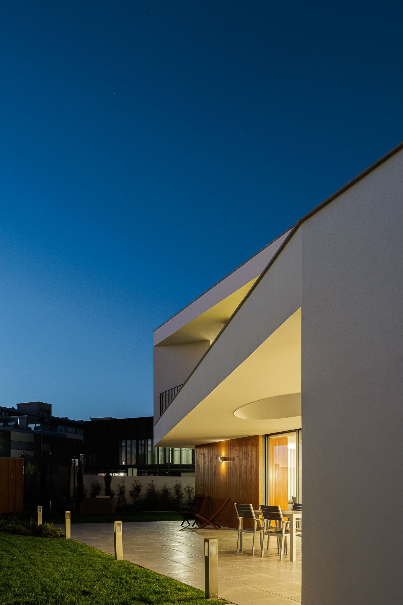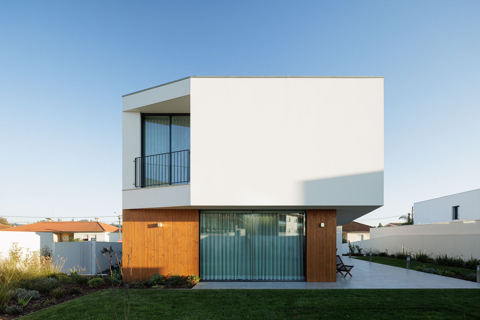 La casa, destinada a una pareja con dos hijos y distribuida en tres pisos, está emplazada en un terreno rectangular con buena exposición solar y vistas privilegiadas al Castillo de Santa Maria da Feira.