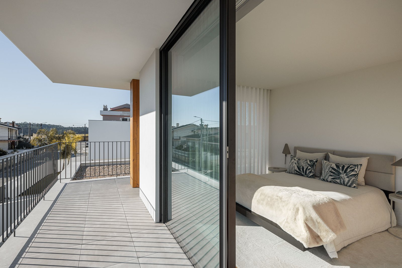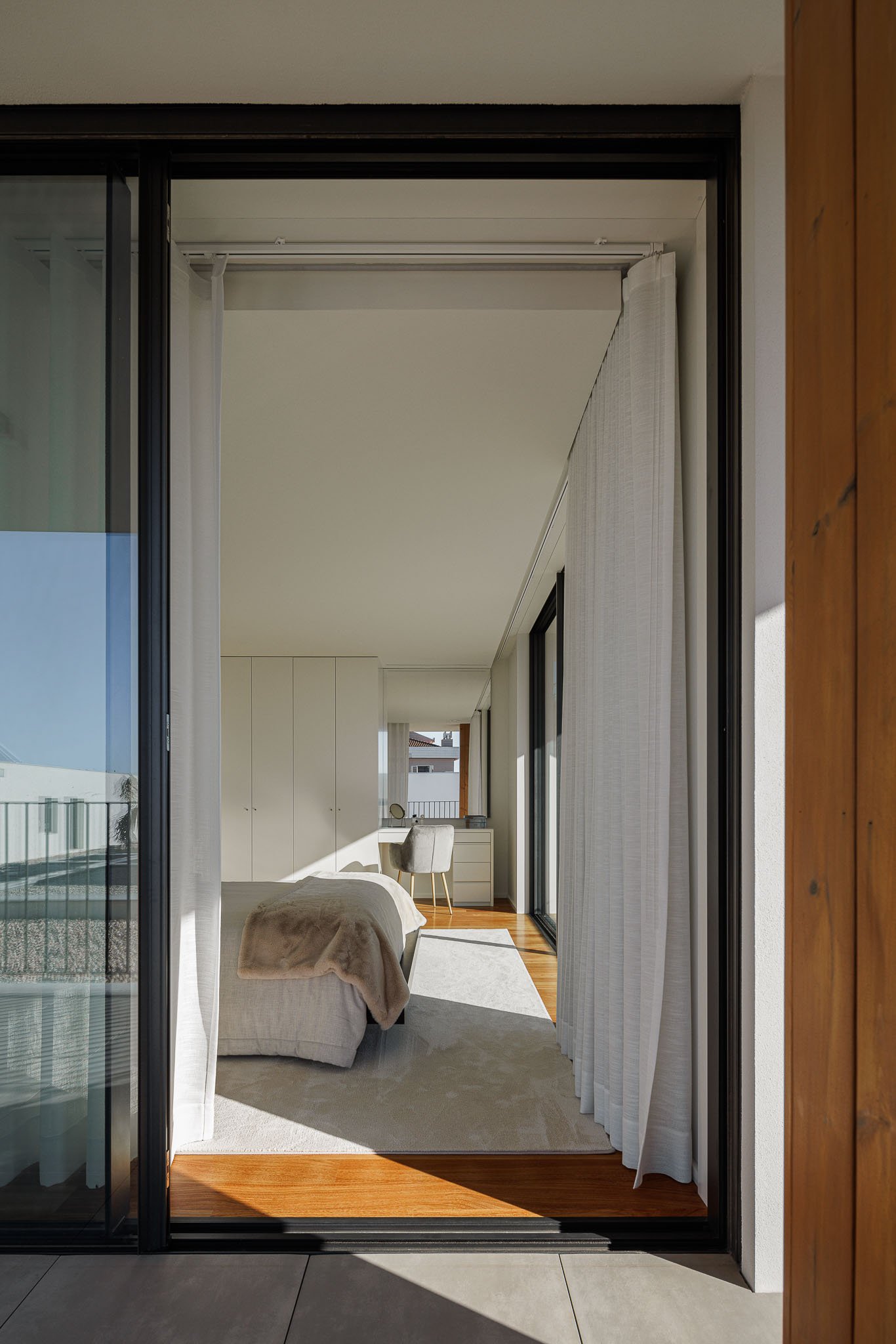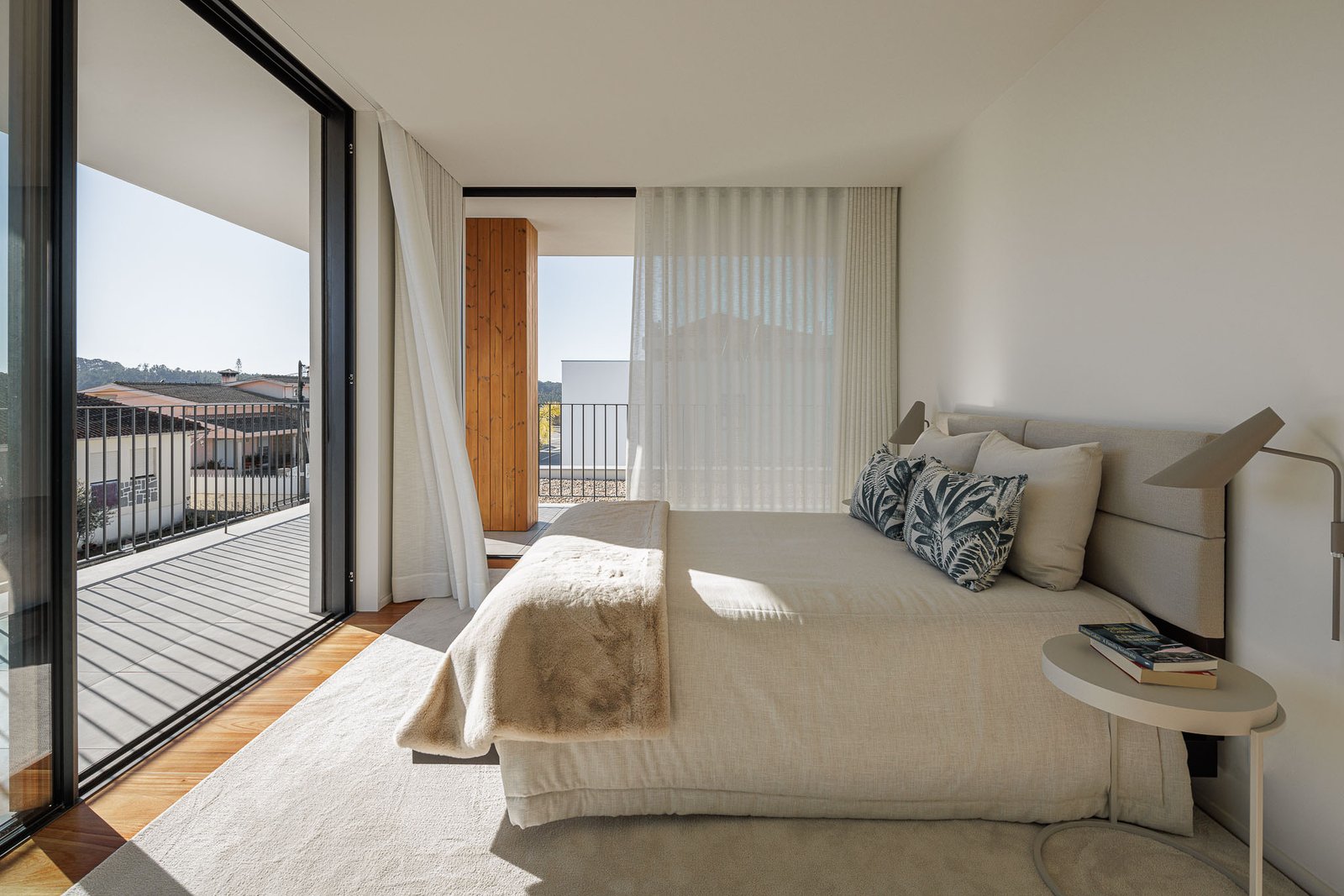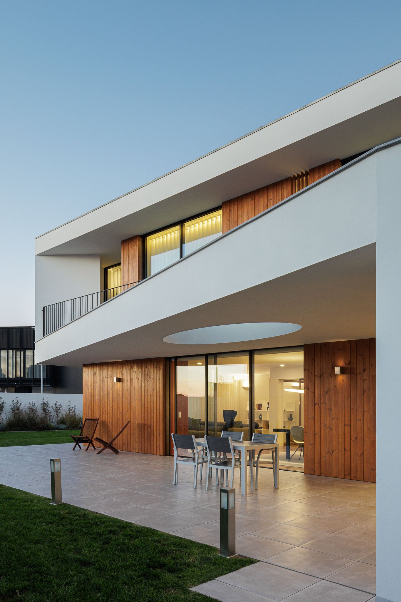 La casa, destinada a una pareja con dos hijos y distribuida en tres pisos, está emplazada en un terreno rectangular con buena exposición solar y vistas privilegiadas al Castillo de Santa Maria da Feira.