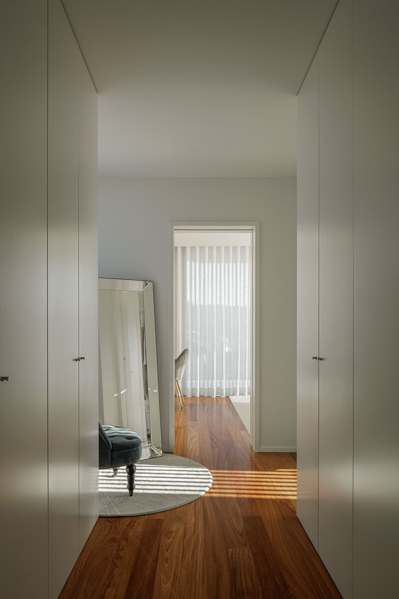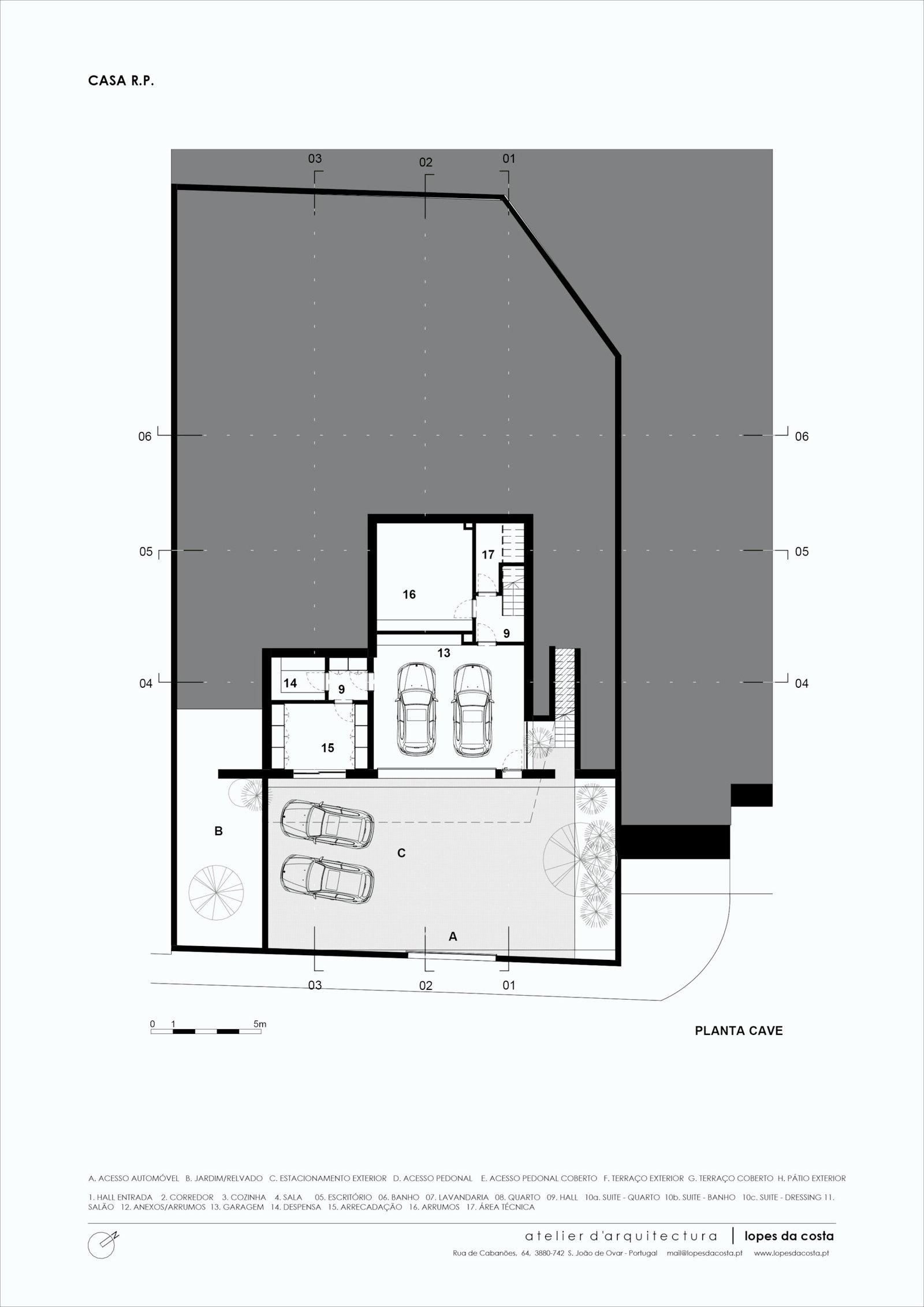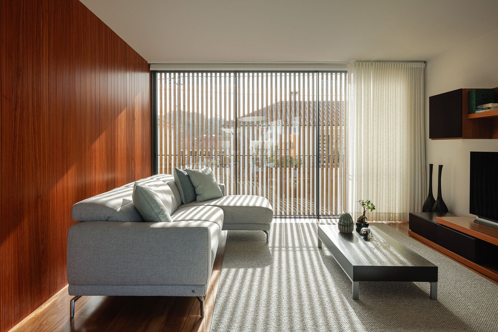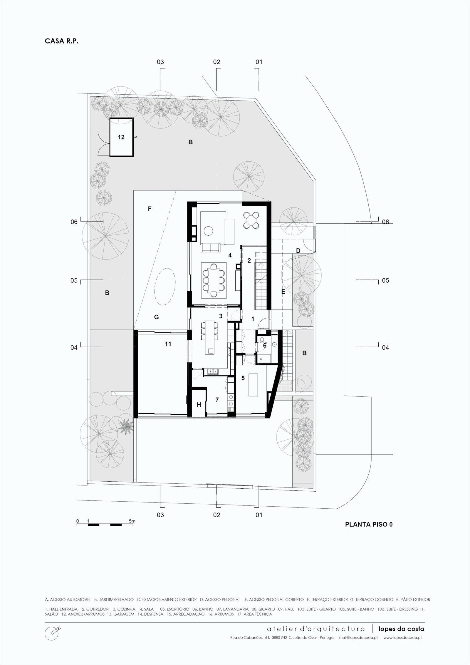 La casa, destinada a una pareja con dos hijos y distribuida en tres pisos, está emplazada en un terreno rectangular con buena exposición solar y vistas privilegiadas al Castillo de Santa Maria da Feira.