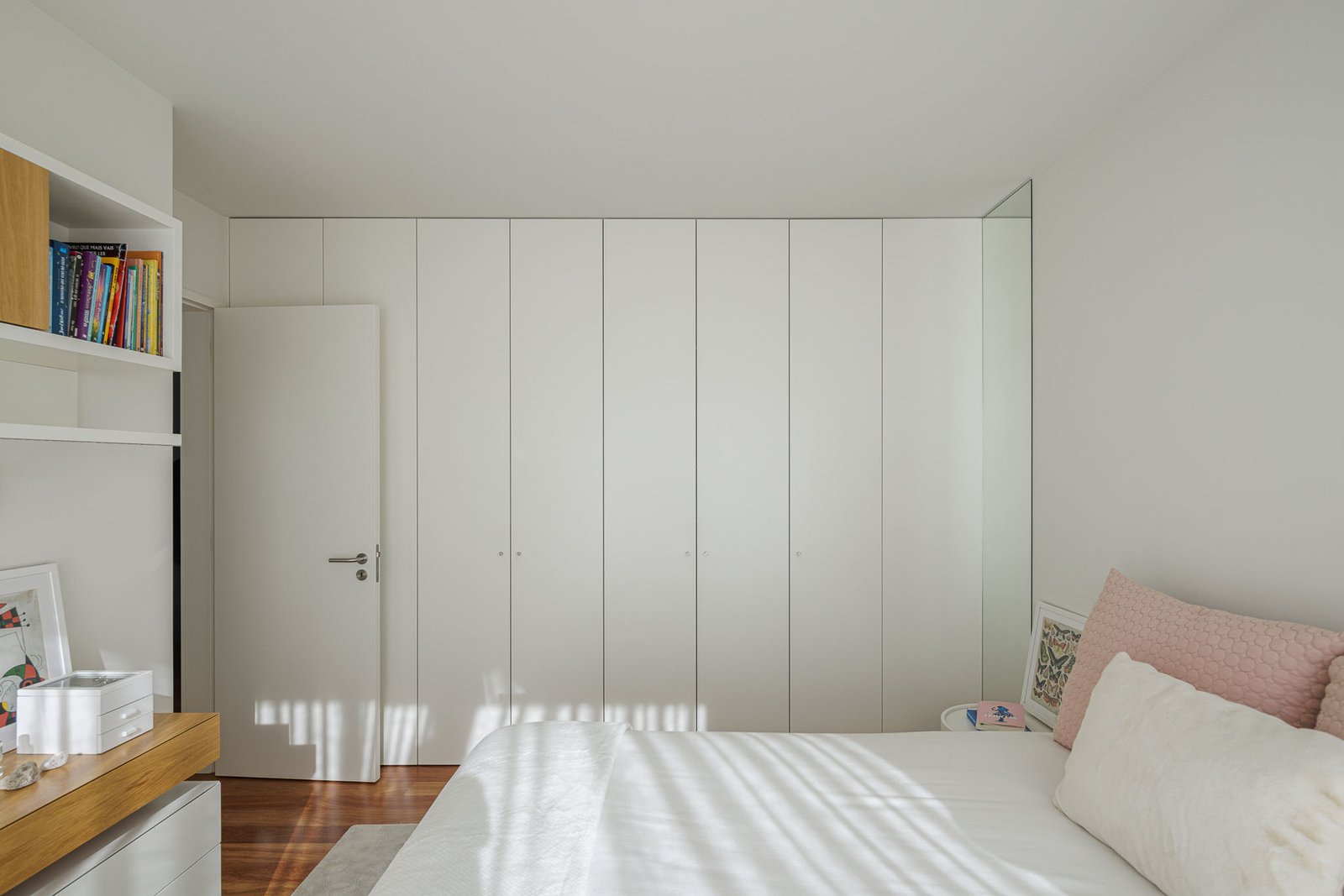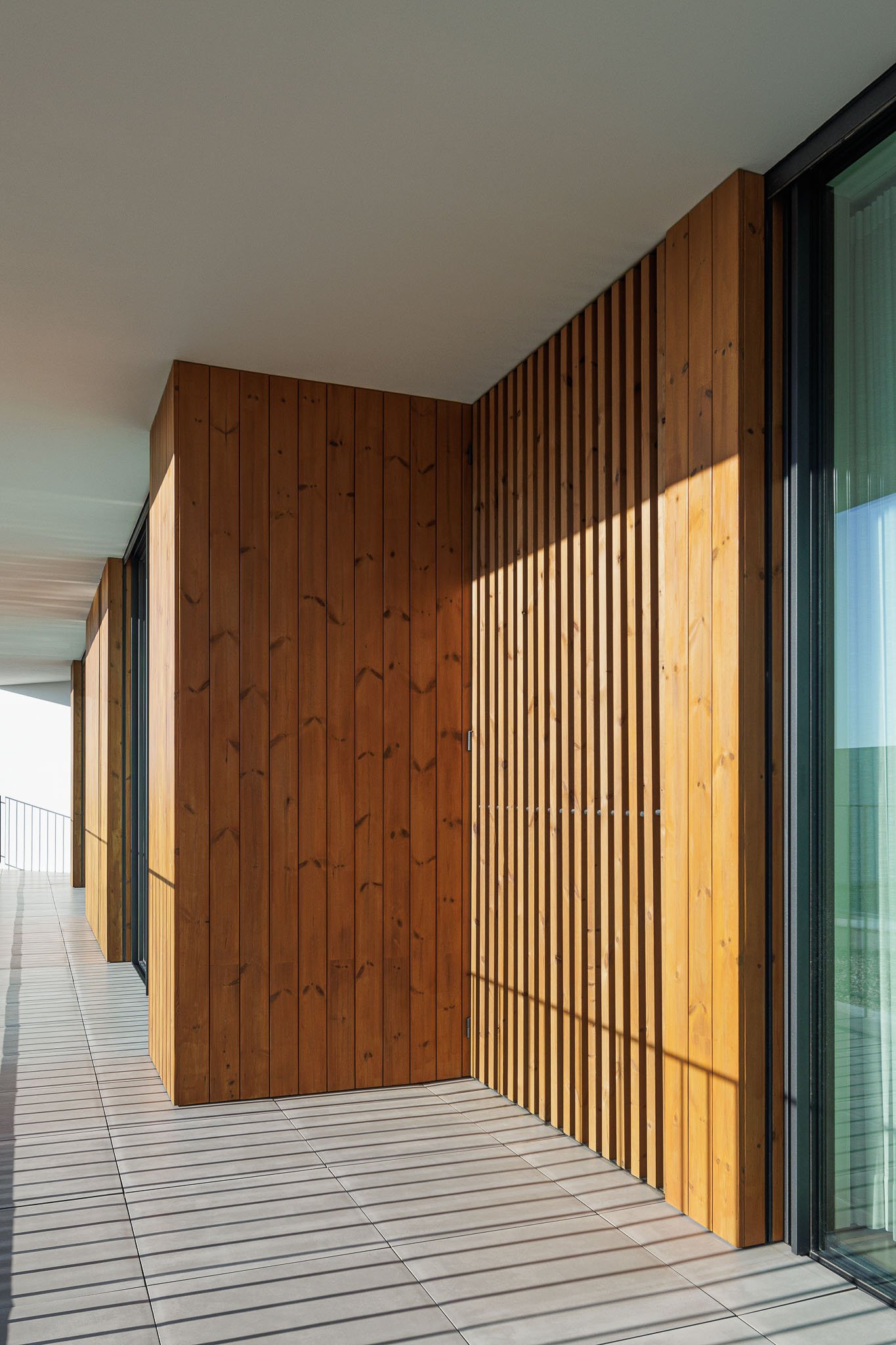 De esta manera, se buscó crear un conjunto homogéneo, con una volumetría y uniformidad formal, en el que los materiales contribuyen a la diferenciación de los pisos, haciendo el volumen más dinámico y menos compacto.