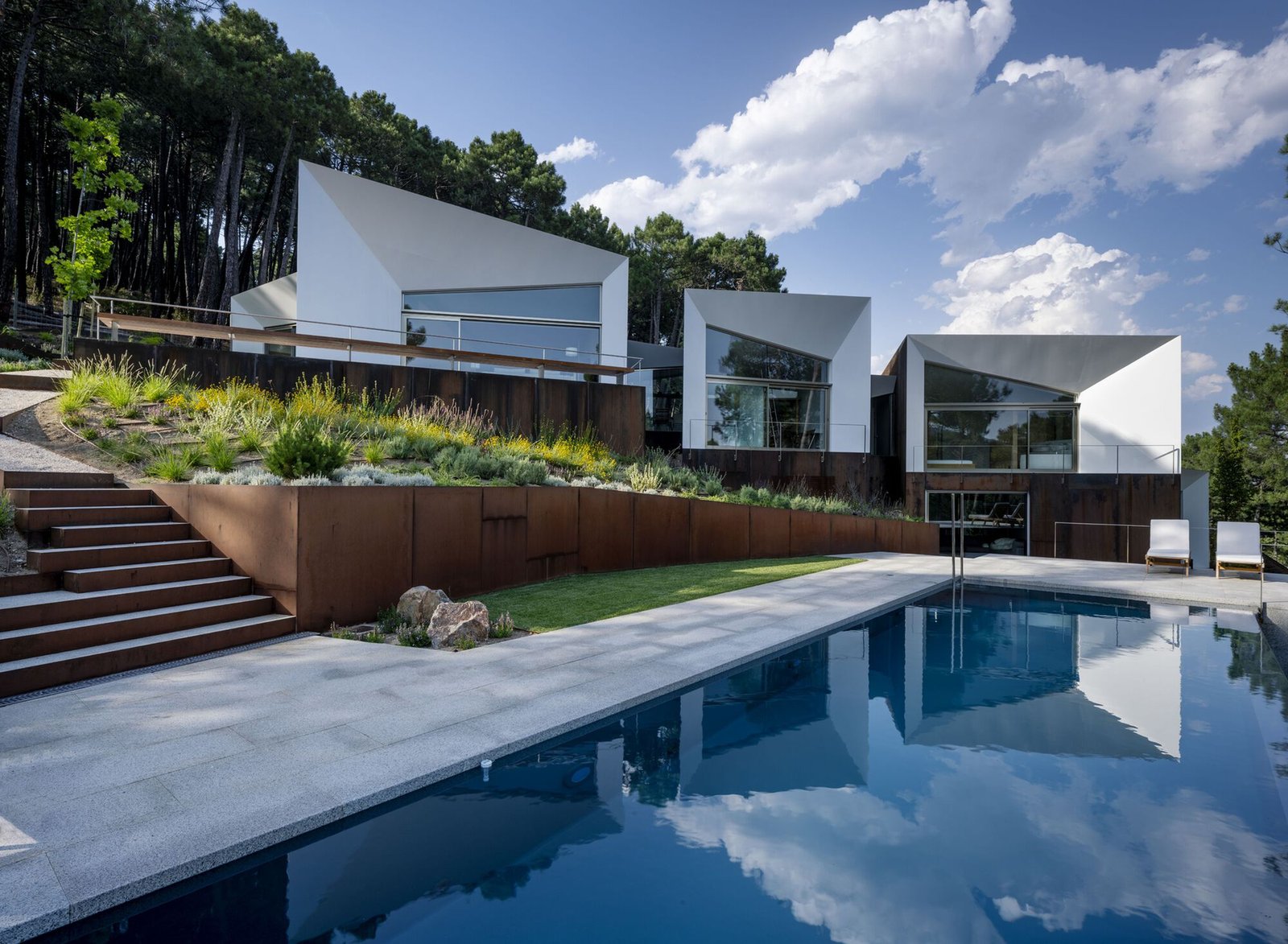 La idea principal es conseguir que la casa se integre en el entorno natural del pinar, que se mimetice con el paisaje. Para ello se recurre a una geometría quebrada, fragmentada en una secuencia de pequeños volúmenes encadenados en caída por la pendiente del terreno, consiguiendo una arquitectura acoplada, aplastada sobre el suelo elevándose lo menos posible, sobre todo en la parte alta de la parcela.