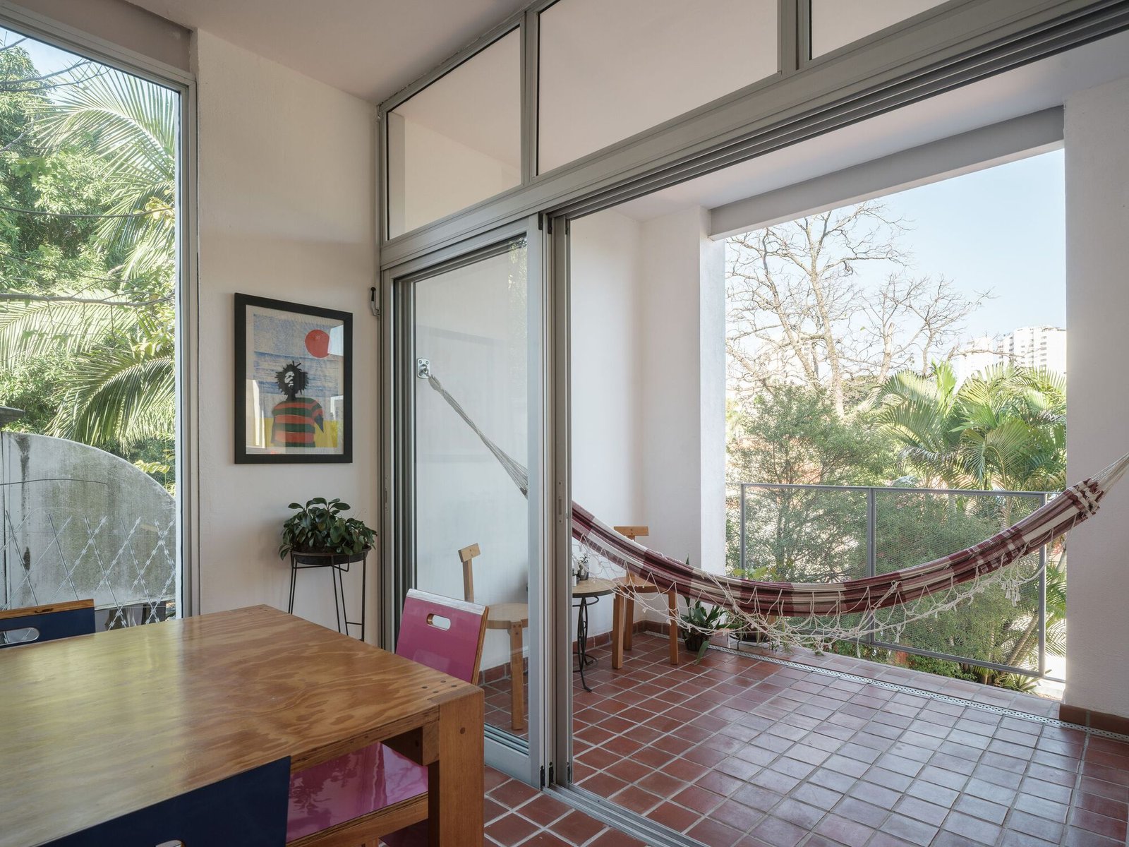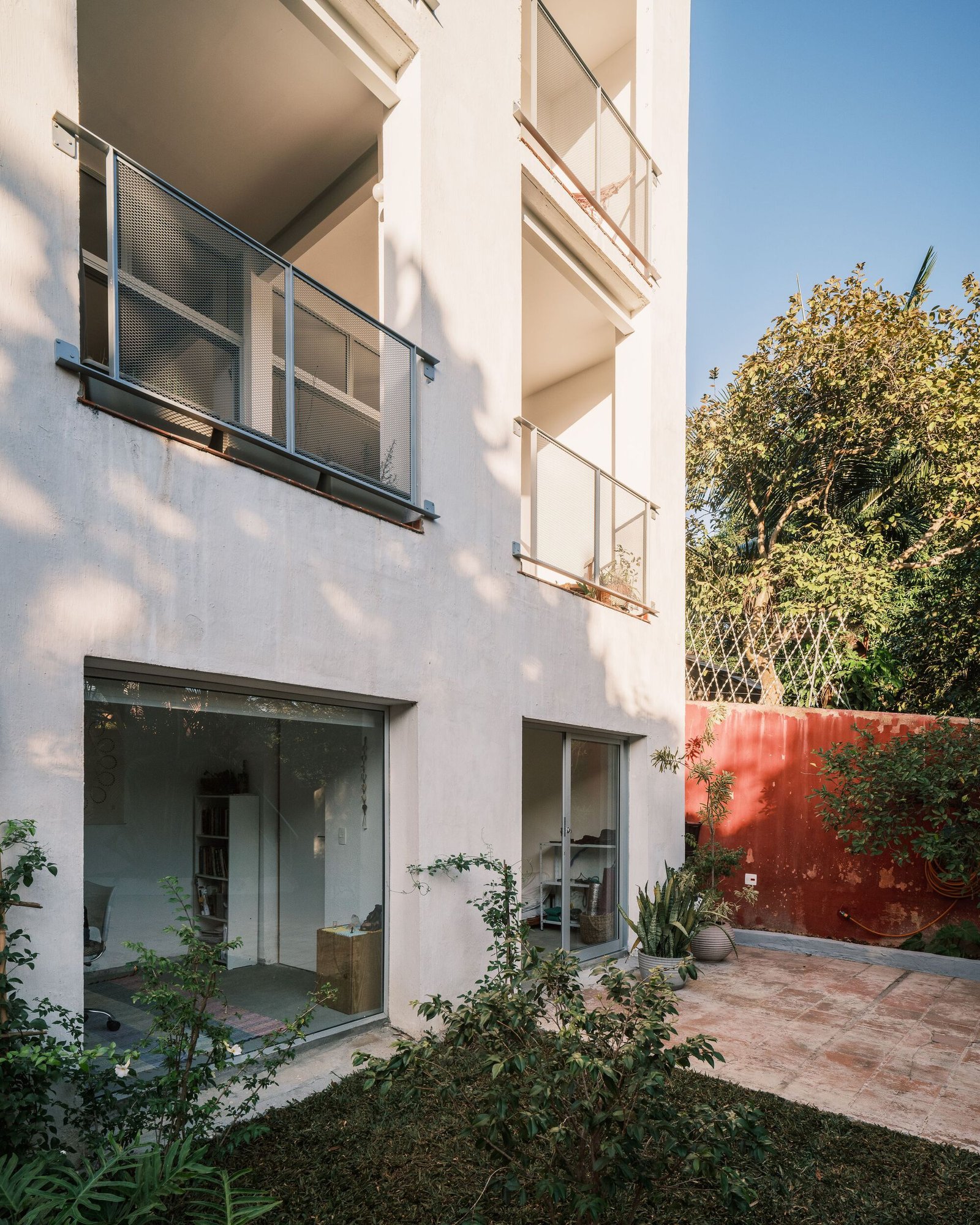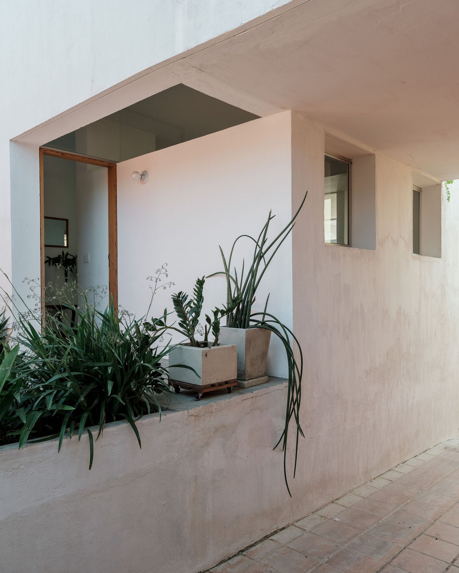 Al mismo tiempo que se adaptó a la incidencia solar, el diseño de las nuevas aberturas buscó establecer relaciones distintas con el entorno: mayor privacidad respecto a la calle; disfrute de la vista del valle al fondo y de una vegetación más densa en uno de los laterales; y encuadres cuidadosamente elegidos donde hay una mayor interacción con la edificación vecina.