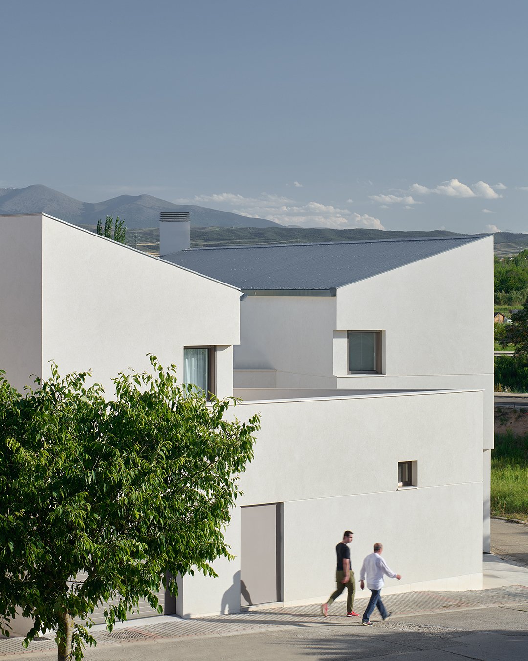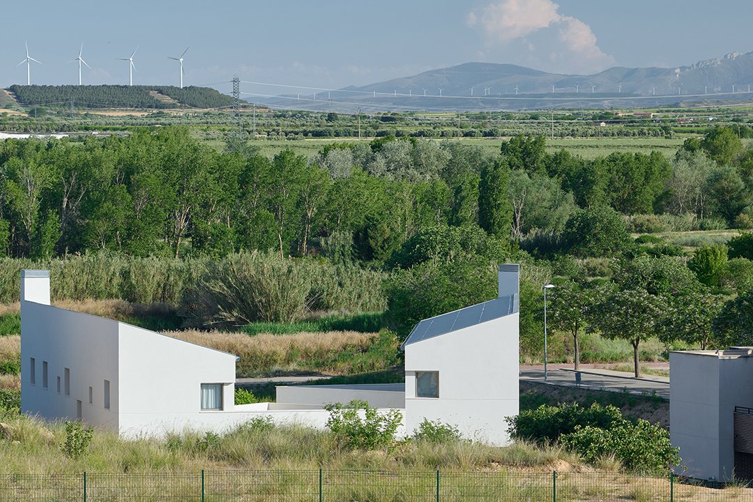 En Corella, dos parcelas hermanas invitan a reinventar la convivencia. Frente al modelo tradicional de casas unidas por la espalda, coincidente con la cumbrera, y jardines volcados al exterior, se propone aquí un gesto invertido: dos viviendas aisladas que, sin tocarse, se protegen.