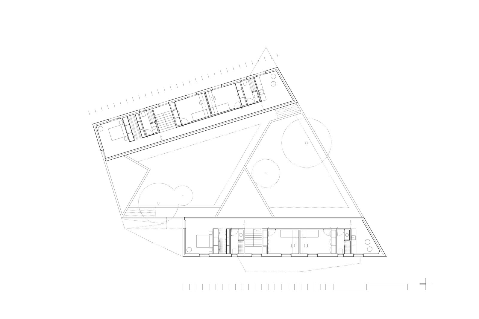 Así, el proyecto convierte las restricciones del lugar en un equilibrio sereno, donde cada vivienda acompaña a la otra sin invadirla, y juntas construyen un paisaje de respeto, intimidad y claridad.