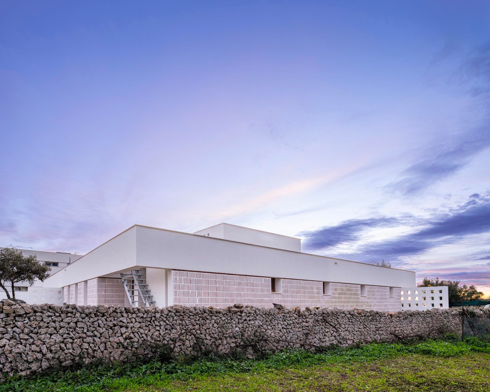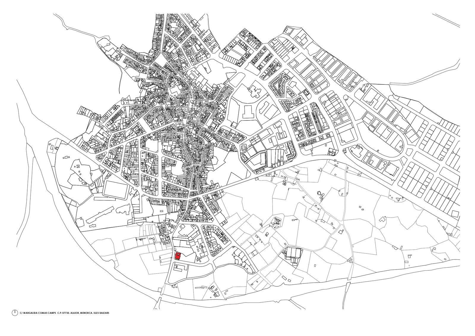 El solar se sitúa en un punto delicado del municipio, allí donde la trama urbana comienza a diluirse y deja paso a los huertos que aún dialogan con el paisaje agrícola de Menorca. Al sur, el centro establece una relación directa con el CEIP Mestre Duran, mientras que en sus otros límites se asoma a parcelas de carácter productivo, asumiendo así una posición intermedia entre lo urbano y lo agrícola. La arquitectura responde a este contexto híbrido con una implantación contenida y respetuosa, que evita gestos innecesarios y prioriza la integración.