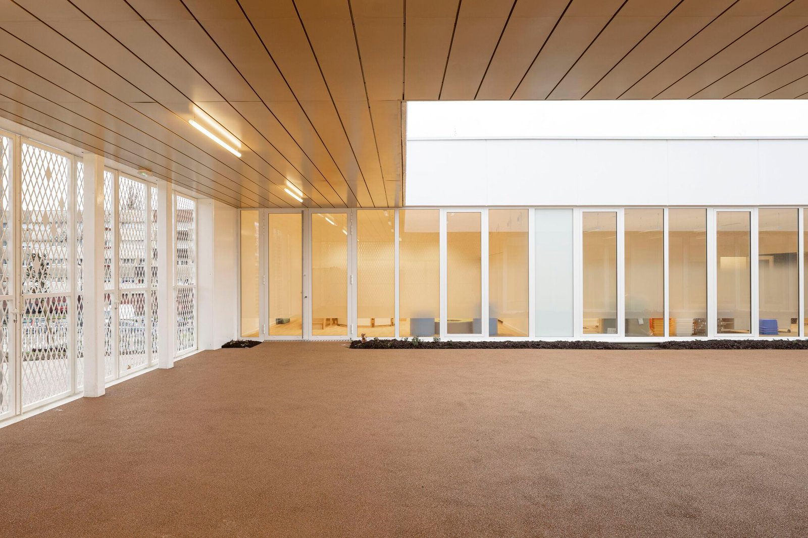 Sesenta años después, su silueta original ha sido remodelada, dejando vacíos ocasionales en su cuadrícula original. Llenando uno de estos, el nuevo centro socio-educativo de ABC busca sanar el territorio — su historia, memoria y necesidades — a través de un programa enfocado en la pedagogía y orientado a la comunidad: espacios de asociación, áreas de juegos, salas de terapia y de atención.