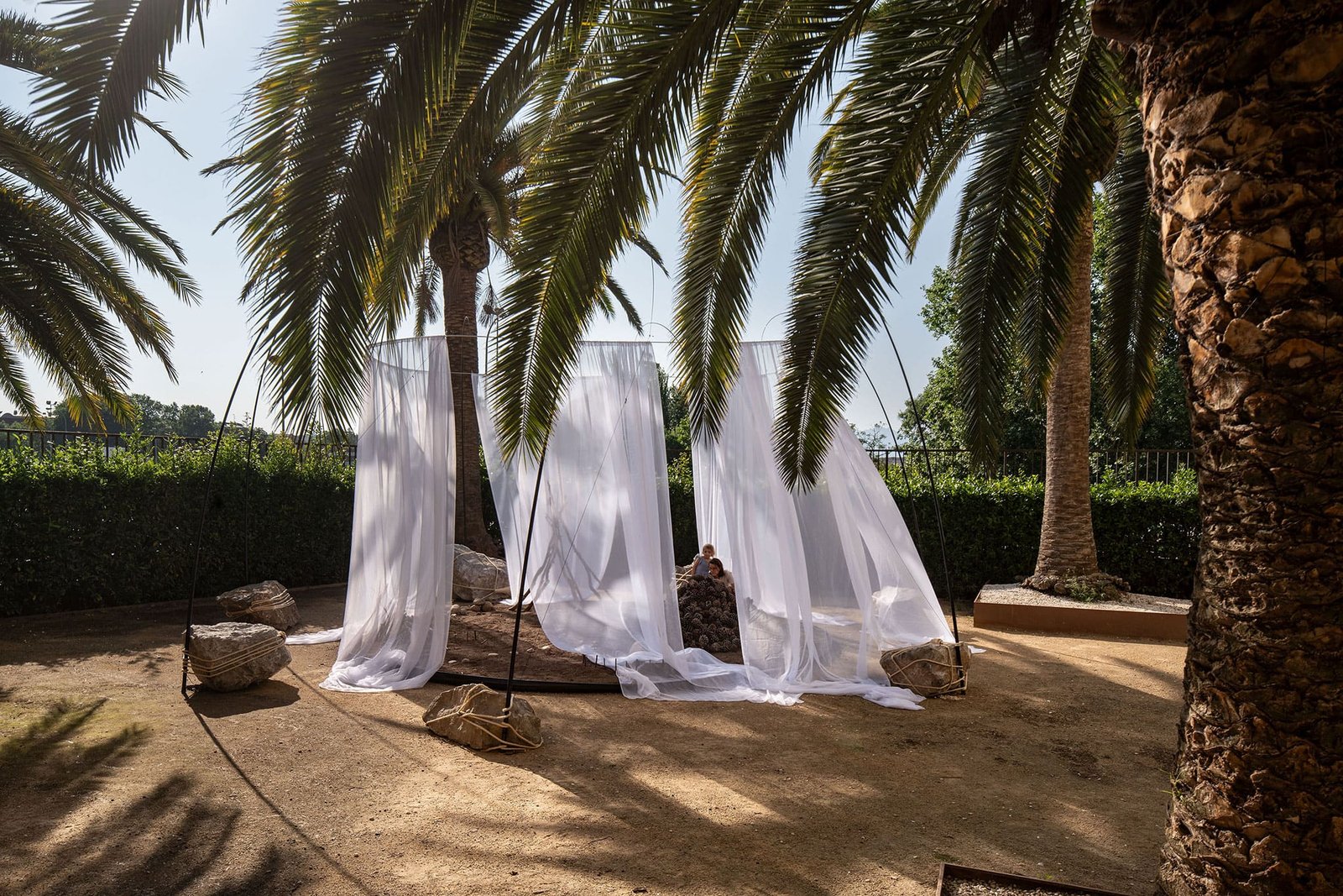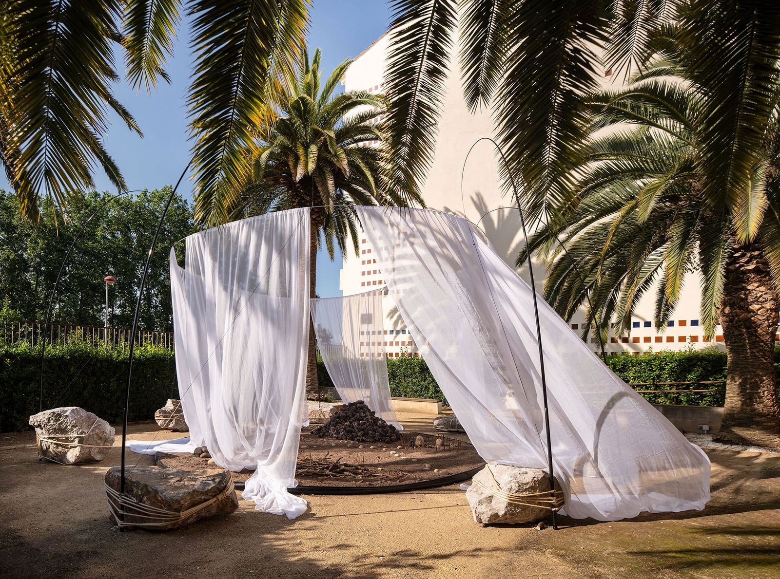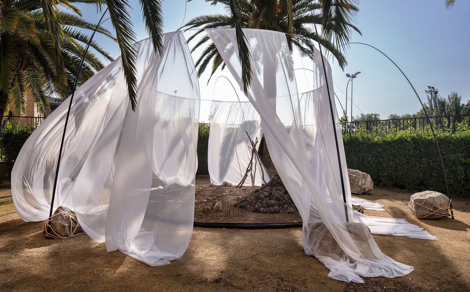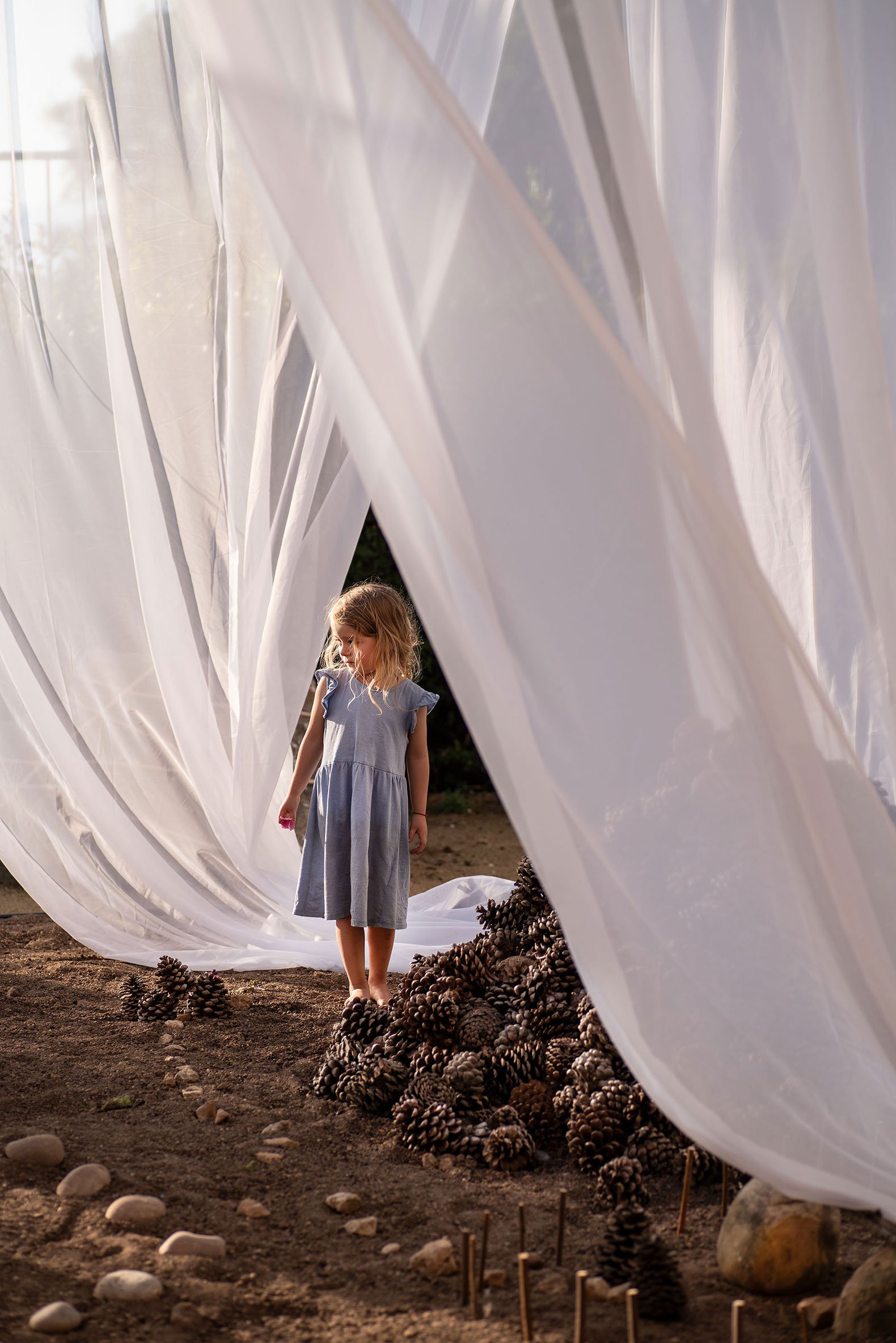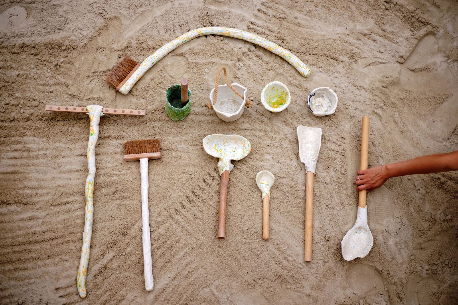 Trabajamos con piezas sueltas, elementos abstractos y abiertos, dentro de un paisaje fijo. Juntos crean una instalación visualmente rica que despierta alegría y curiosidad.