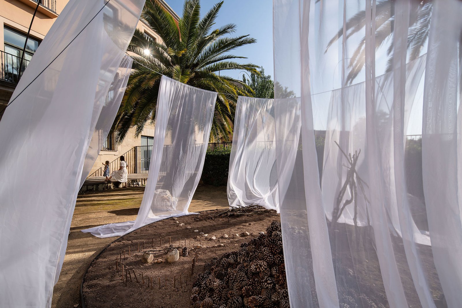 La instalación invita tanto a niños como a adultos a participar, pudiendo complementarse con elementos gráficos, como reflexiones sobre el juego en los espacios urbanos.
