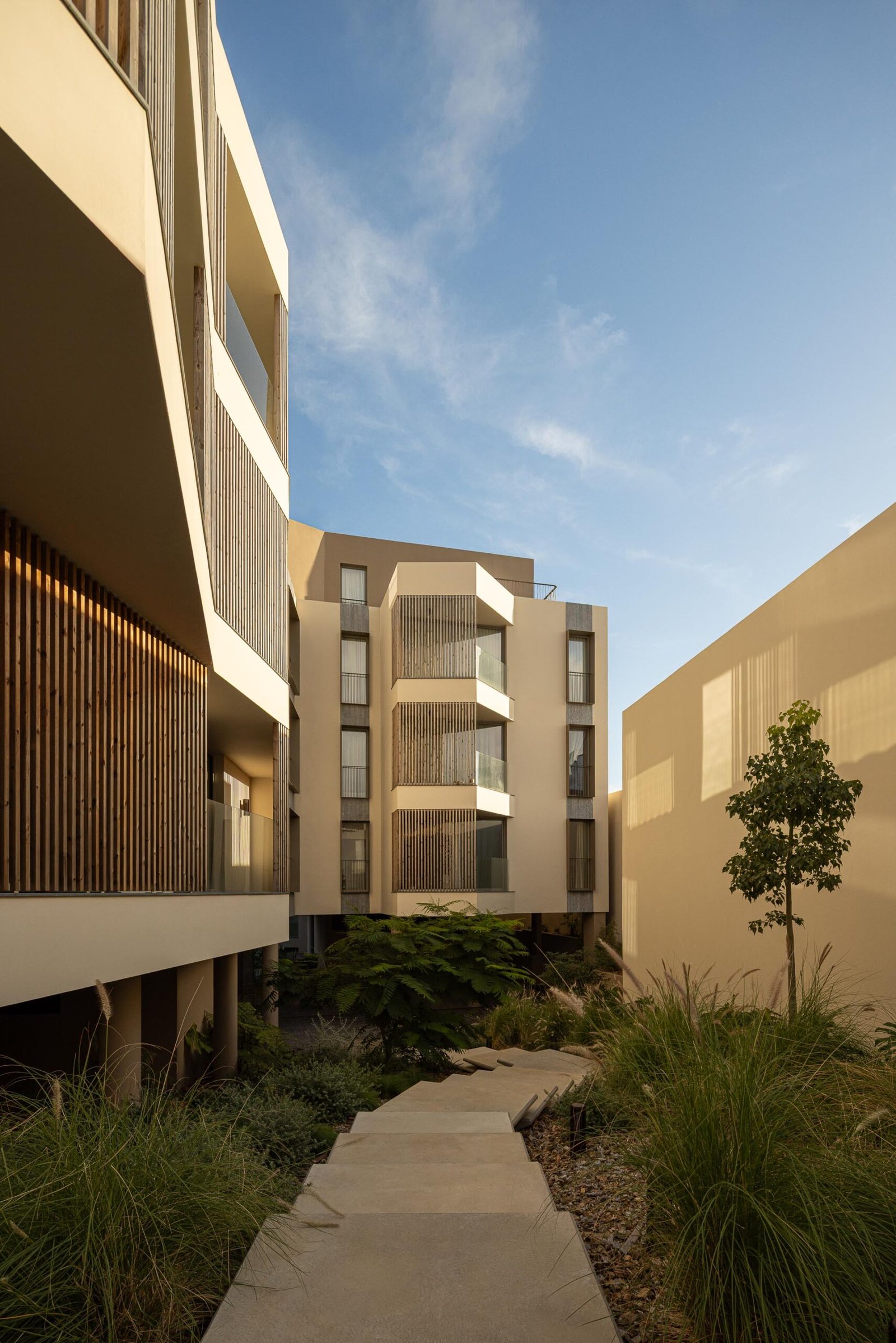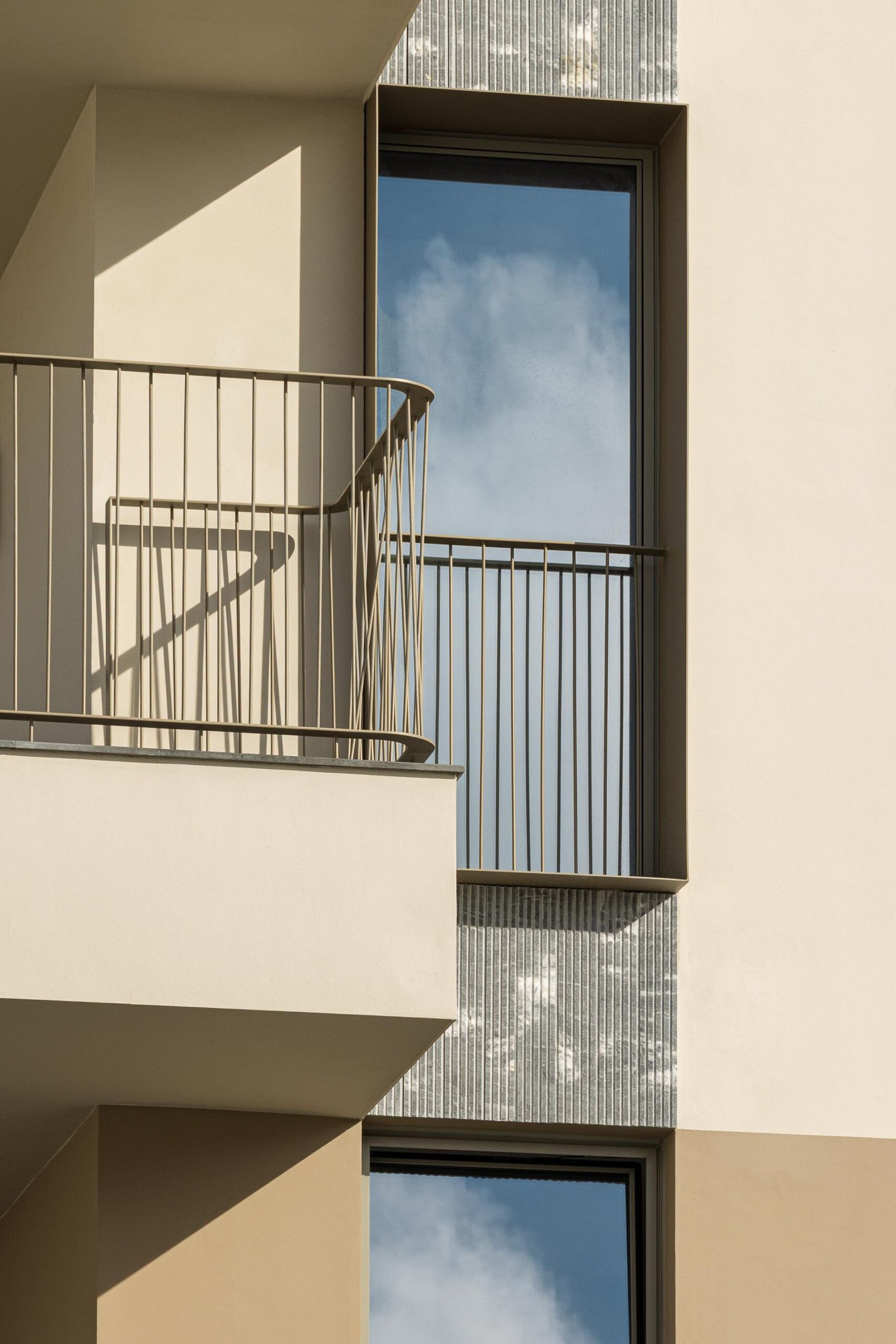 Los cuerpos del edificio se caracterizan por una dinámica de confrontación cultural típica del barrio, en constante diálogo y comunicación entre sí. Unidos por un aparcamiento semienterrado, aprovechan las ventilaciones naturales, lo que confiere a la unidad construida características ambientales saludables desde el punto de vista de la sostenibilidad urbana.