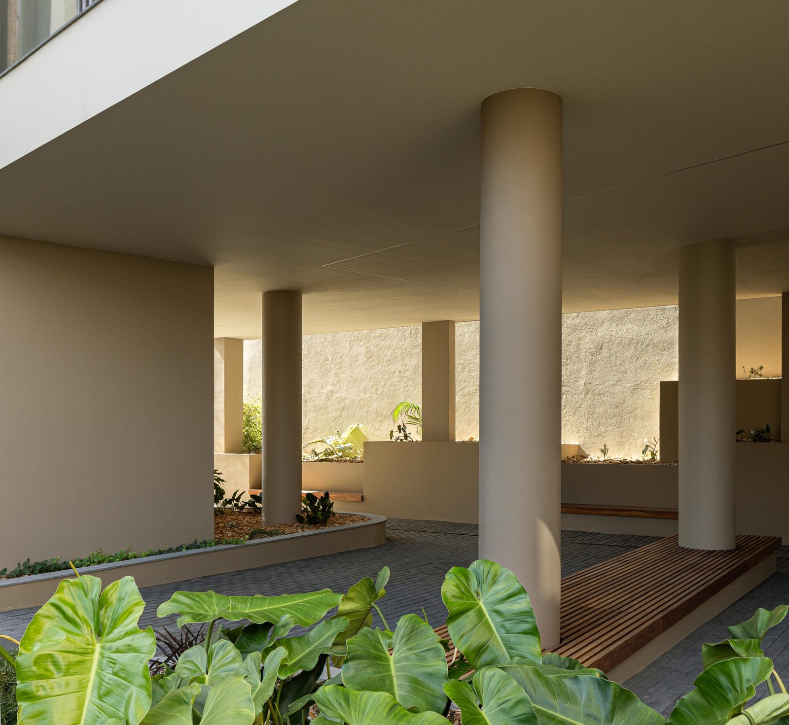El “Ernesto do Canto” se orienta hacia sí mismo. Crea hacia el interior ambientes ajardinados y zonas de estancia y circulación, propios del concepto de habitar el exterior más allá de las unidades residenciales. La cuidada “frontera” entre el edificio y el plano marginal otorga al Ernesto do Canto una dimensión urbana adecuada a la escala del edificio en el delicado espacio en el que se inserta.