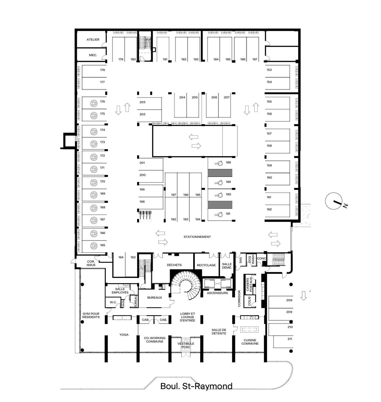 Compuesto por 189 unidades de alquiler, desde estudios hasta apartamentos de cinco habitaciones, el proyecto se distingue por la decisión deliberada de ubicar la mayoría de las zonas comunes en la planta baja, conectando directamente con la ciudad. Este gesto refleja el deseo de crear espacios de conexión e intercambio, donde la arquitectura se convierte en un catalizador para la comunidad.