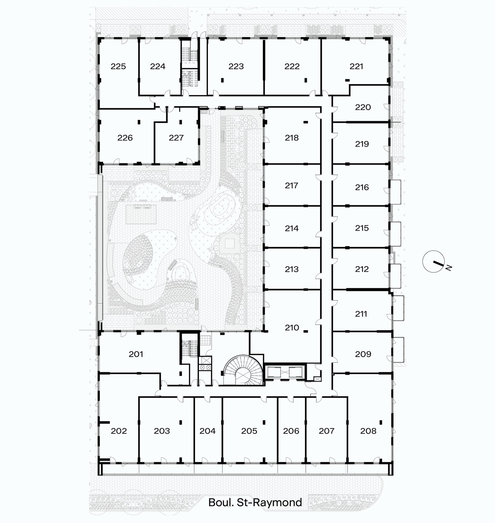 La configuración en forma de C del edificio, organizada en torno a un jardín orientado al oeste, optimiza el potencial del terreno y logra una densidad equilibrada sin depender de una altura excesiva. MELLEM Les Trembles demuestra que una arquitectura bien compuesta puede alcanzar niveles significativos de densidad, contribuyendo positivamente a la calidad de los entornos que habita.
