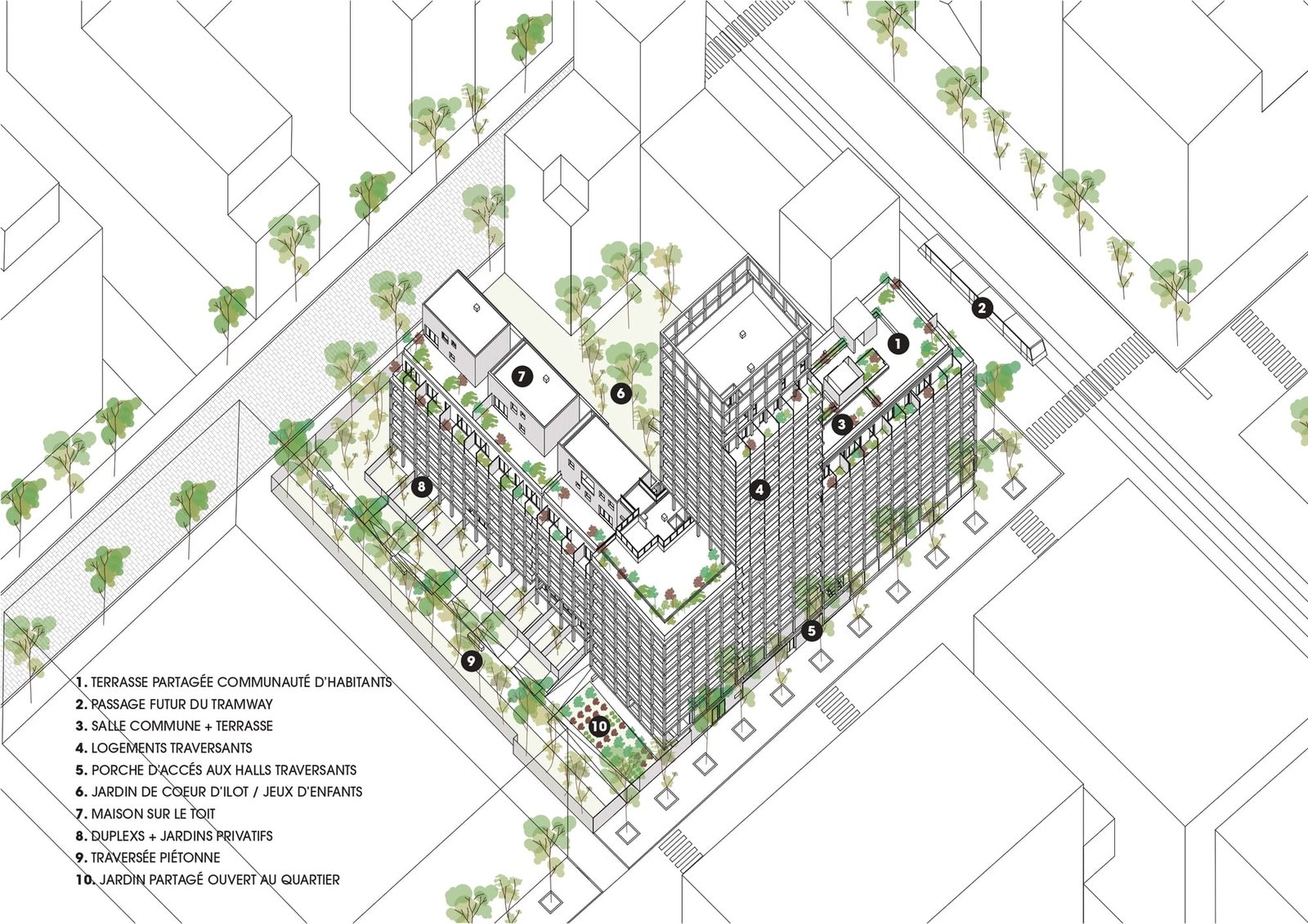Se trata de un programa mixto e inclusivo que comprende: 148 viviendas en venta, que ofrecen una variedad de tipologías y situaciones de vida, incluyendo dúplex en planta baja con jardín privado, apartamentos con vistas a la ciudad y al mar, y casas en azotea.