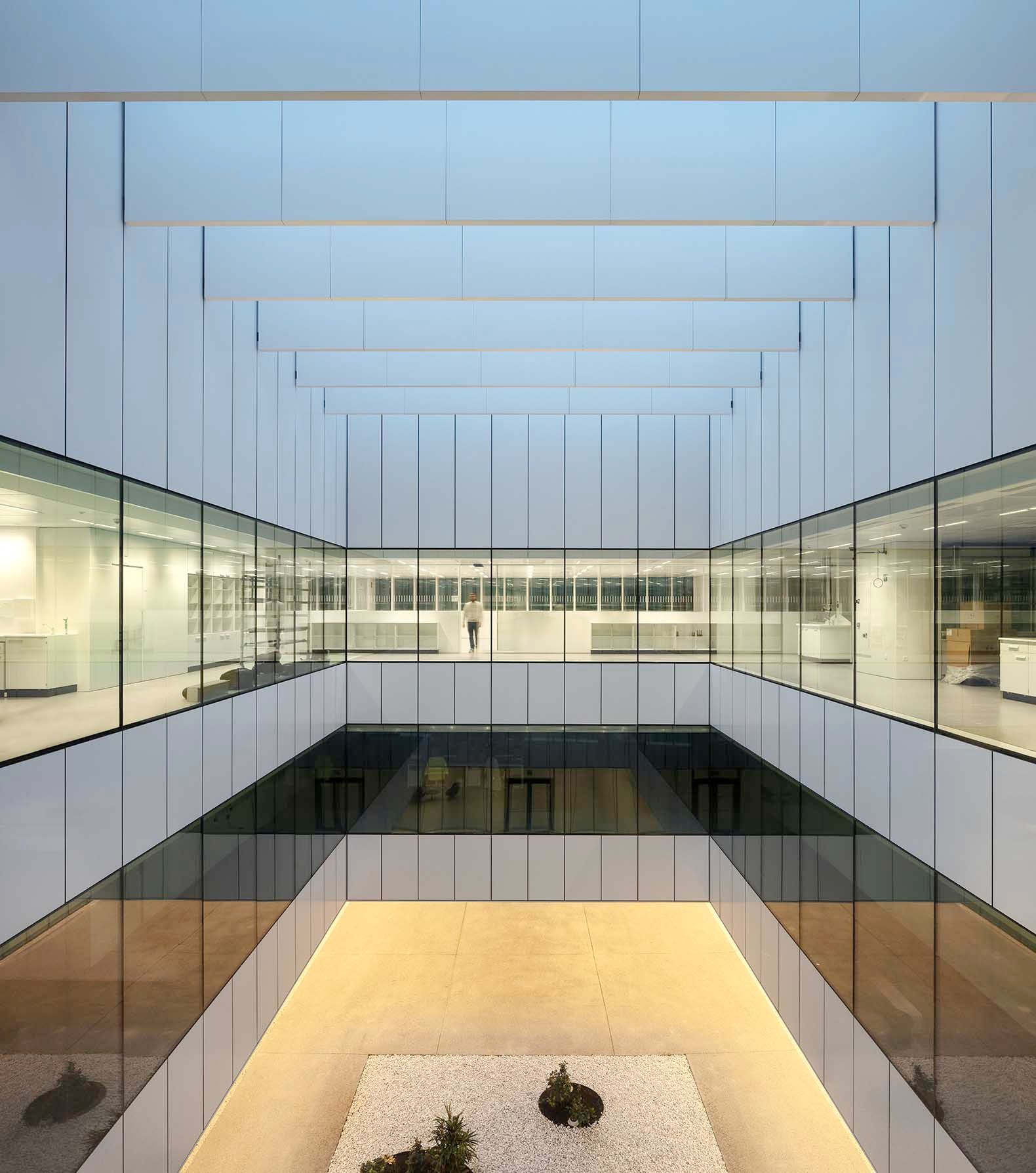 Además, las oficinas y laboratorios se ubican en una zona con vistas a un valle en el que no está previsto que se construyan edificios que repercutan en las vistas y singularidad de la edificación.