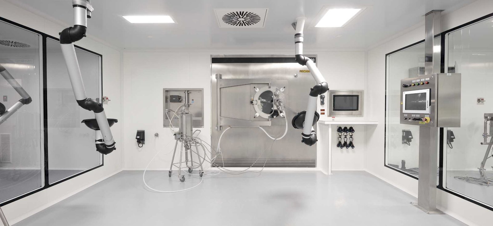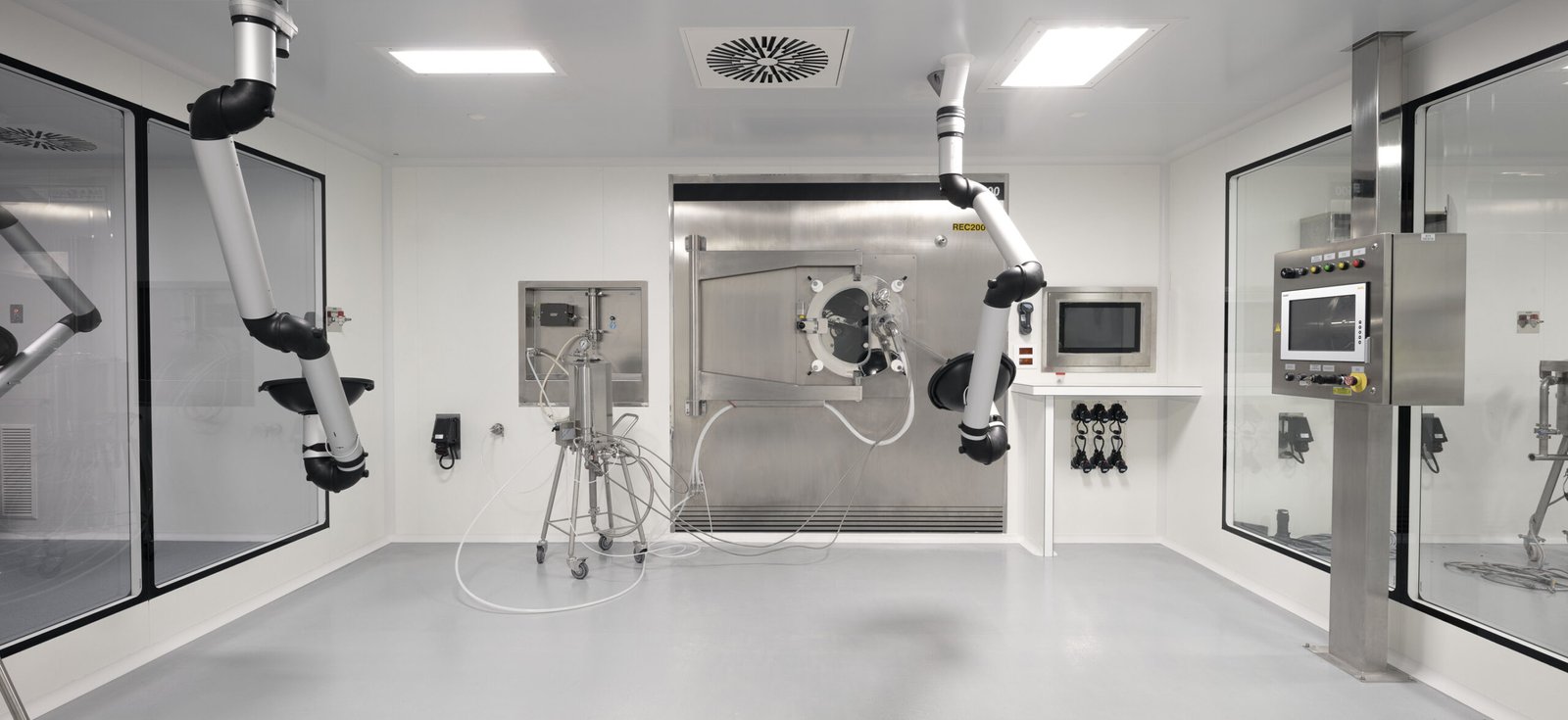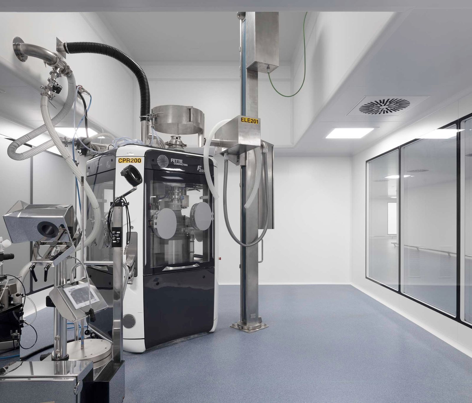 La funcionalidad de la producción se consigue con un sistema de producción en dos niveles, un nivel de producción de medicamentos sólidos y otro nivel de producción de medicamentos semisólidos y líquidos, ambos niveles conectados con una electrovía con el almacén robotizado de 12.800 posiciones y la zona de logística.