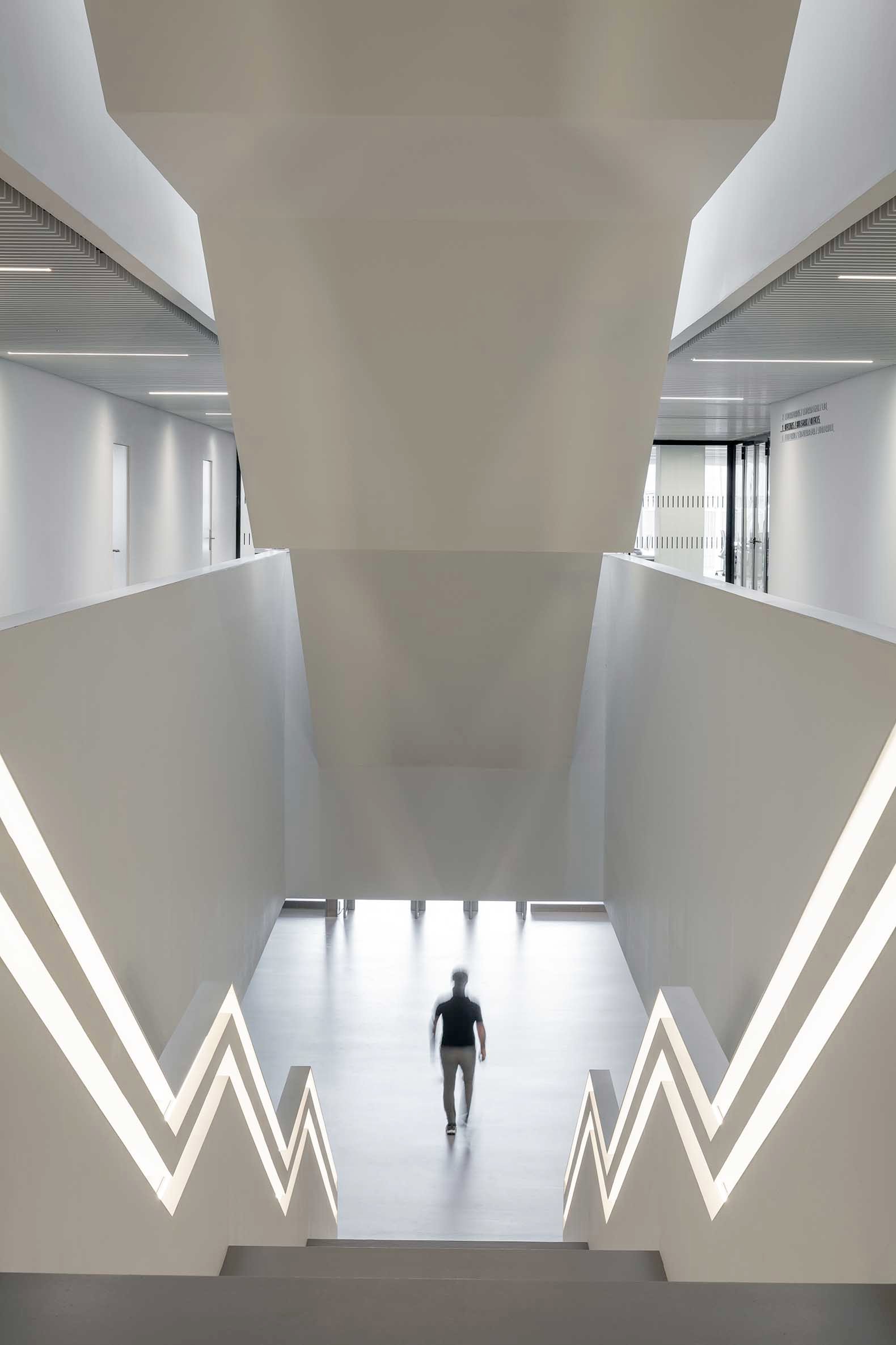 Esa abstracción del edificio en su lenguaje formal resulta clave para aparentemente reducir el impacto volumétrico, puesto que se prescinde de elementos habituales de la escala humana y por lo tanto resulta complejo poner en contexto la totalidad del edificio.
