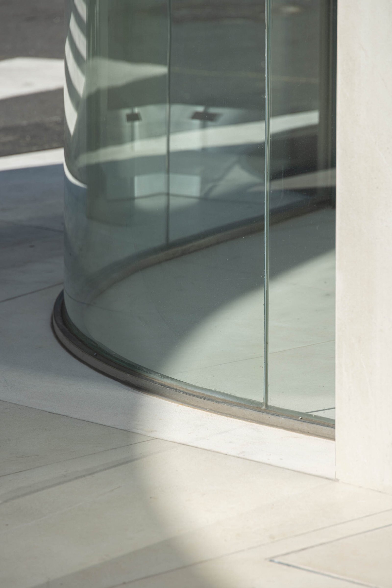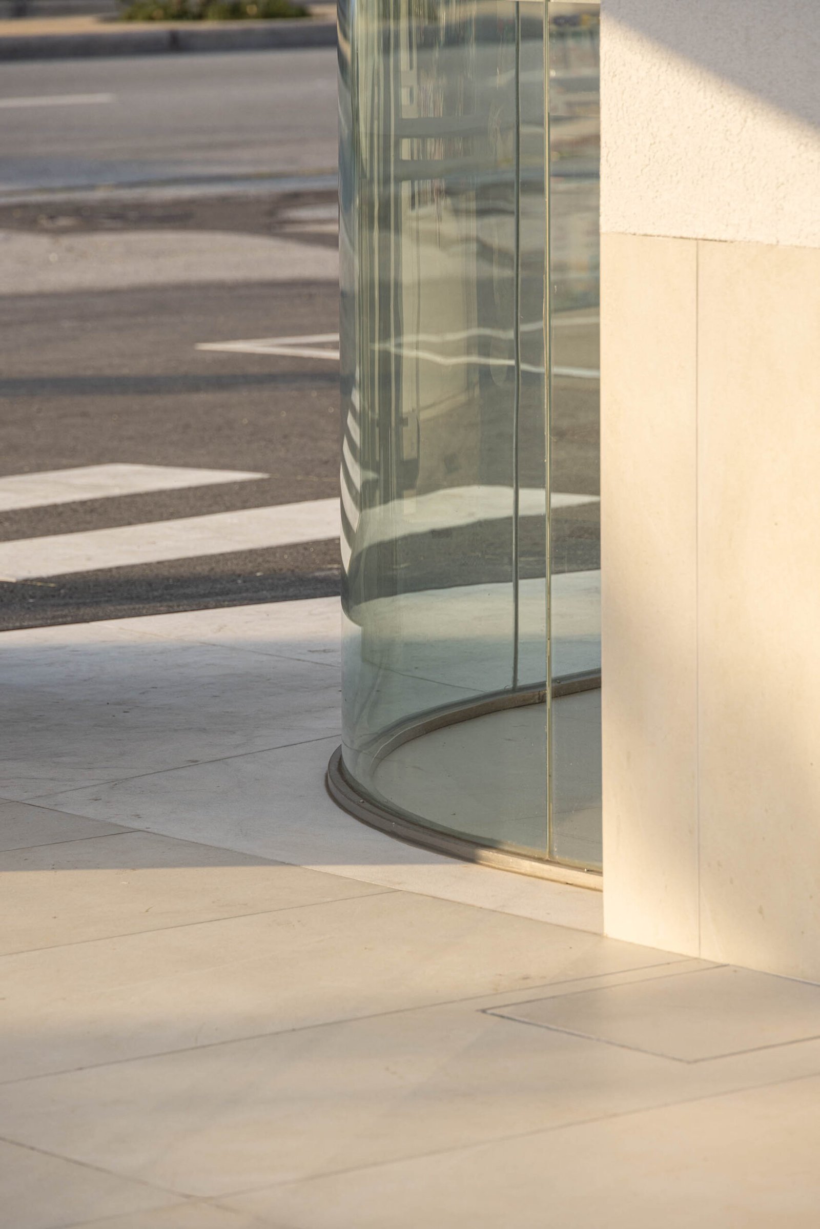 La fachada que da a la calle invita a los transeúntes a entrar en el interior a través de grandes ventanales durante el día, transformándose en un generoso escaparate iluminado por la noche.