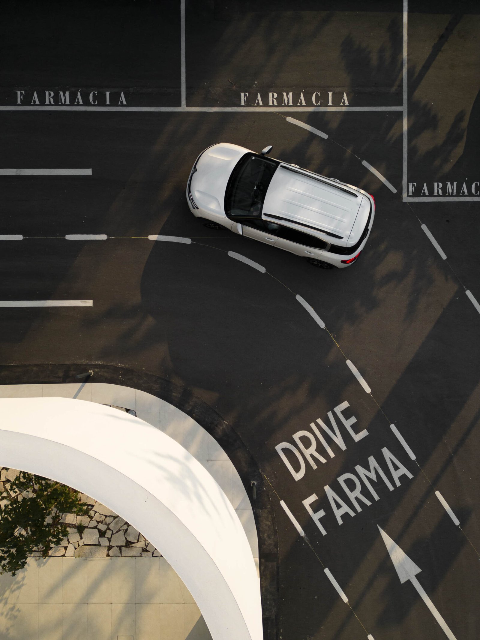 La circulación de vehículos y el aparcamiento se han planificado cuidadosamente en los alrededores, mientras que el interior de la farmacia se ha organizado cumpliendo los requisitos normativos, garantizando una clara separación entre la zona de acceso de los pacientes y el espacio reservado a los profesionales sanitarios.