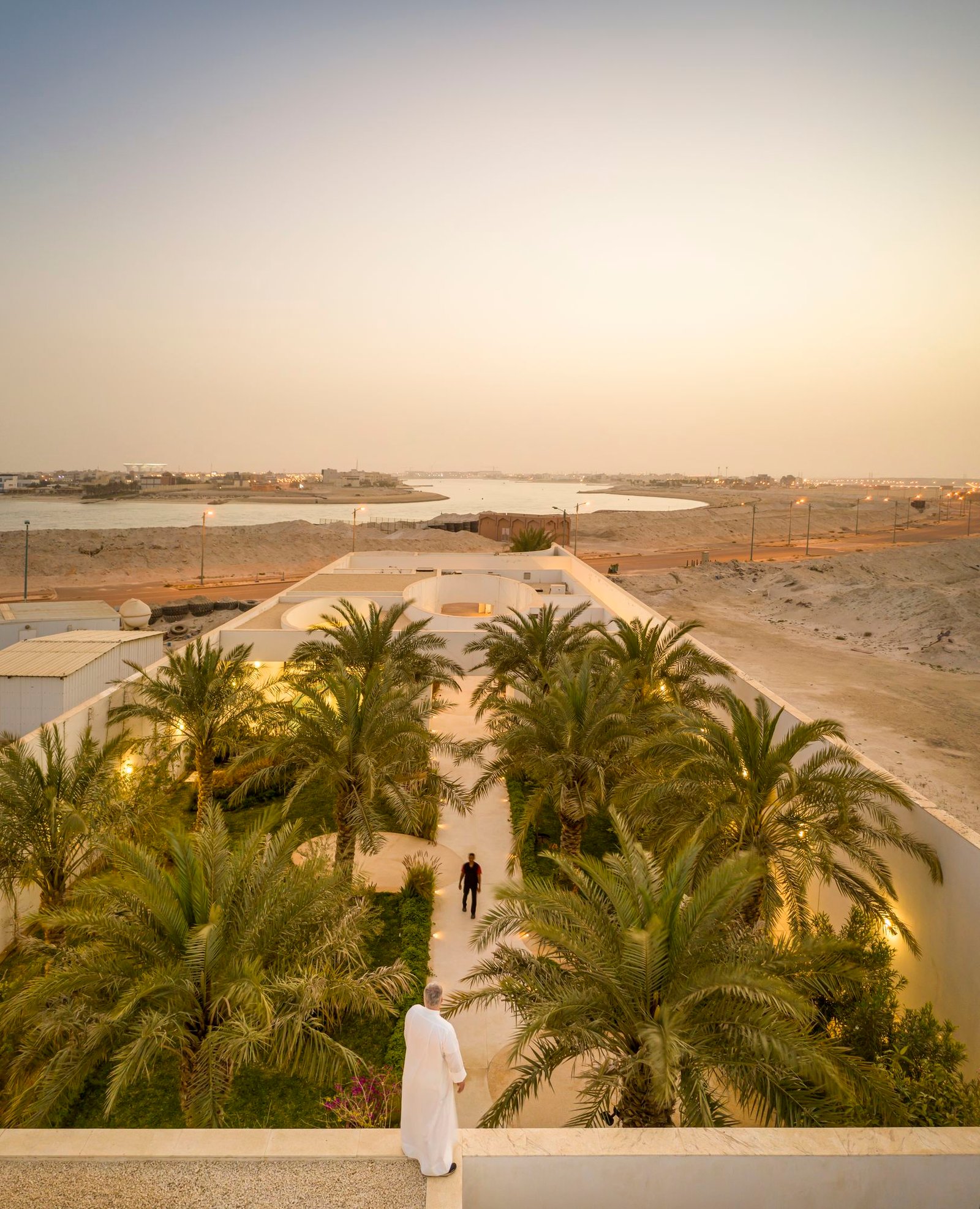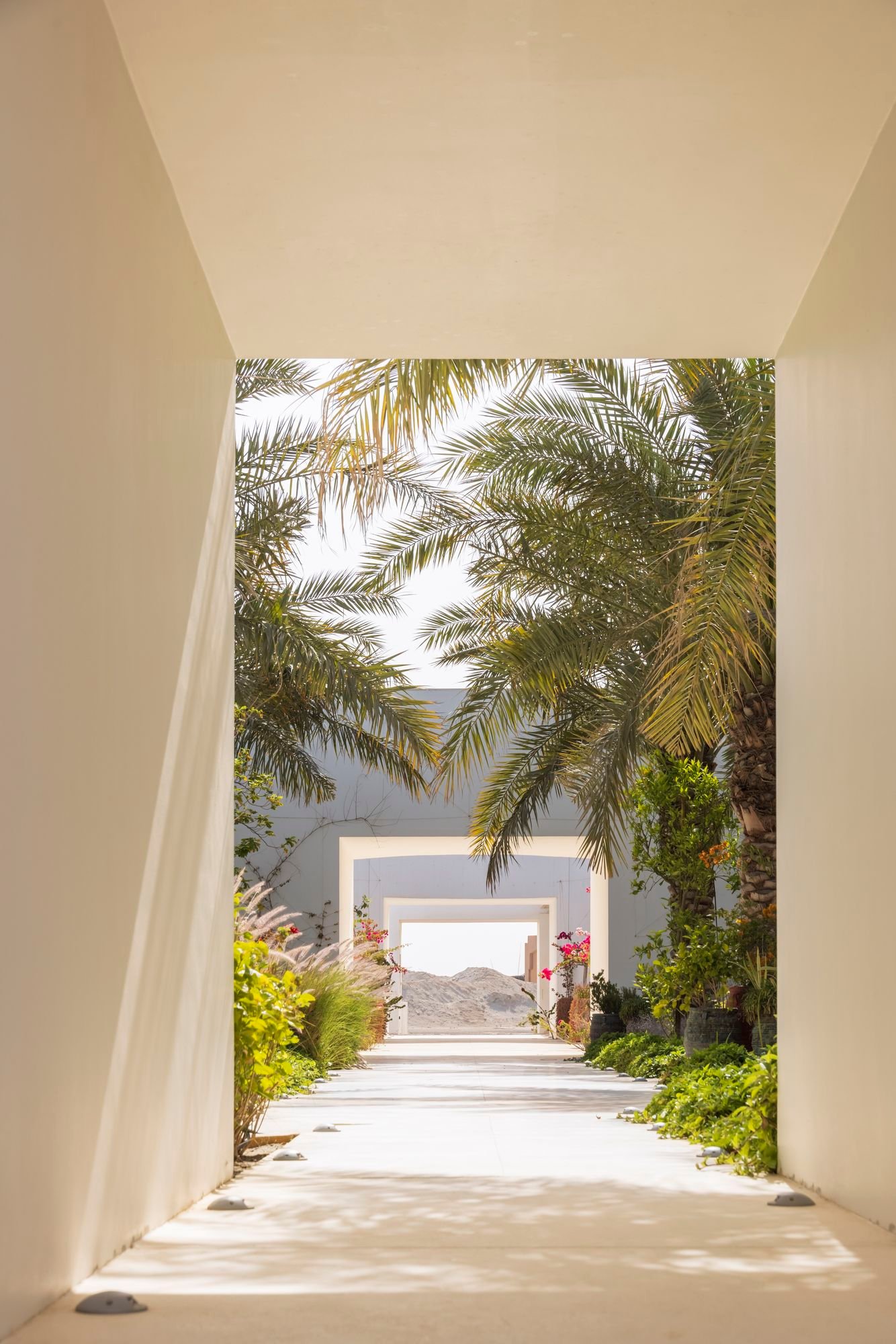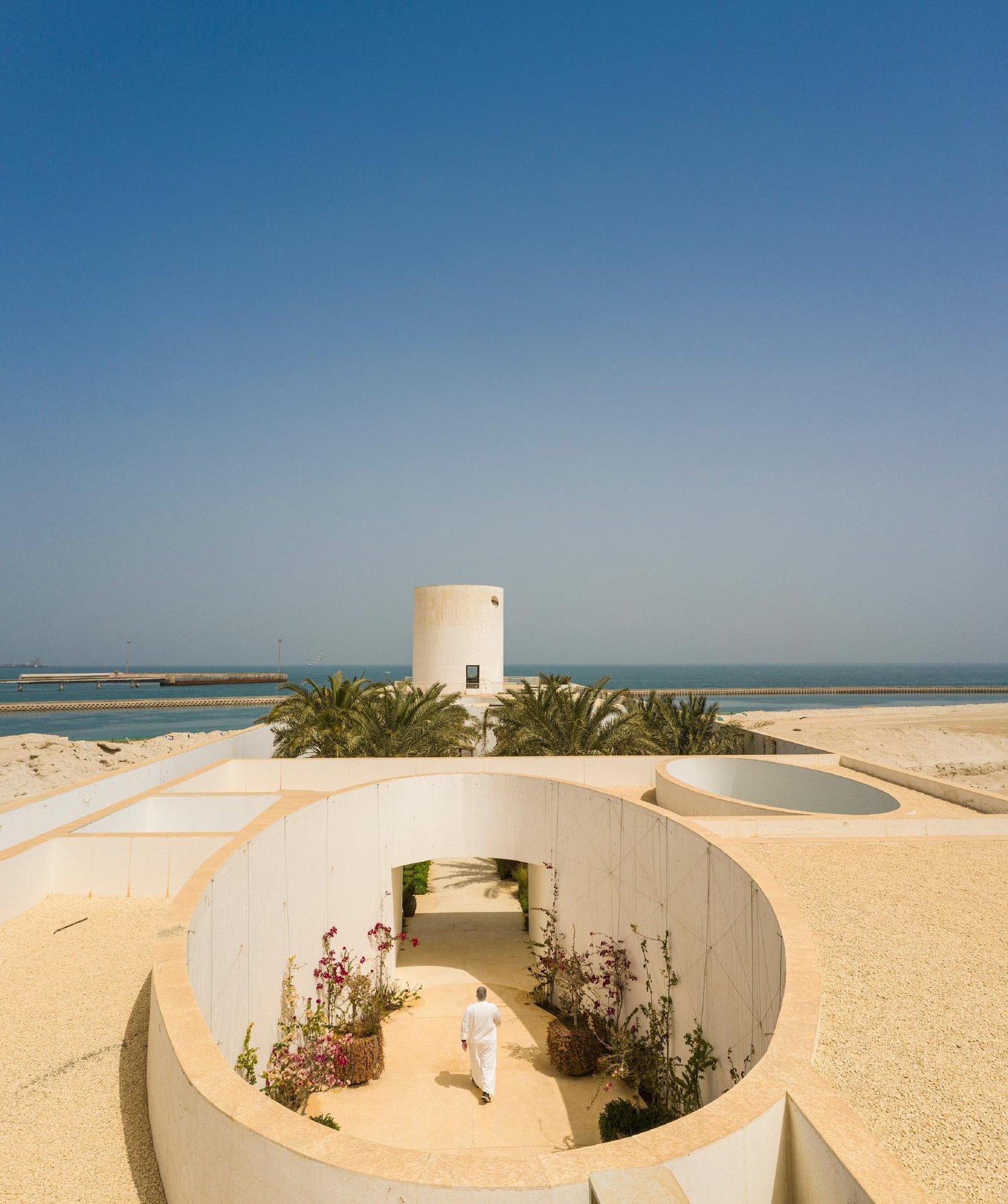 La Fortaleza Blanca, que encarna los atributos arquitectónicos de privacidad y discreción de la arquitectura del norte del Golfo, está envuelta por muros imponentes y gruesos que ofrecen protección contra el duro clima y el entorno árido, al tiempo que encierran un interior sereno y acogedor.