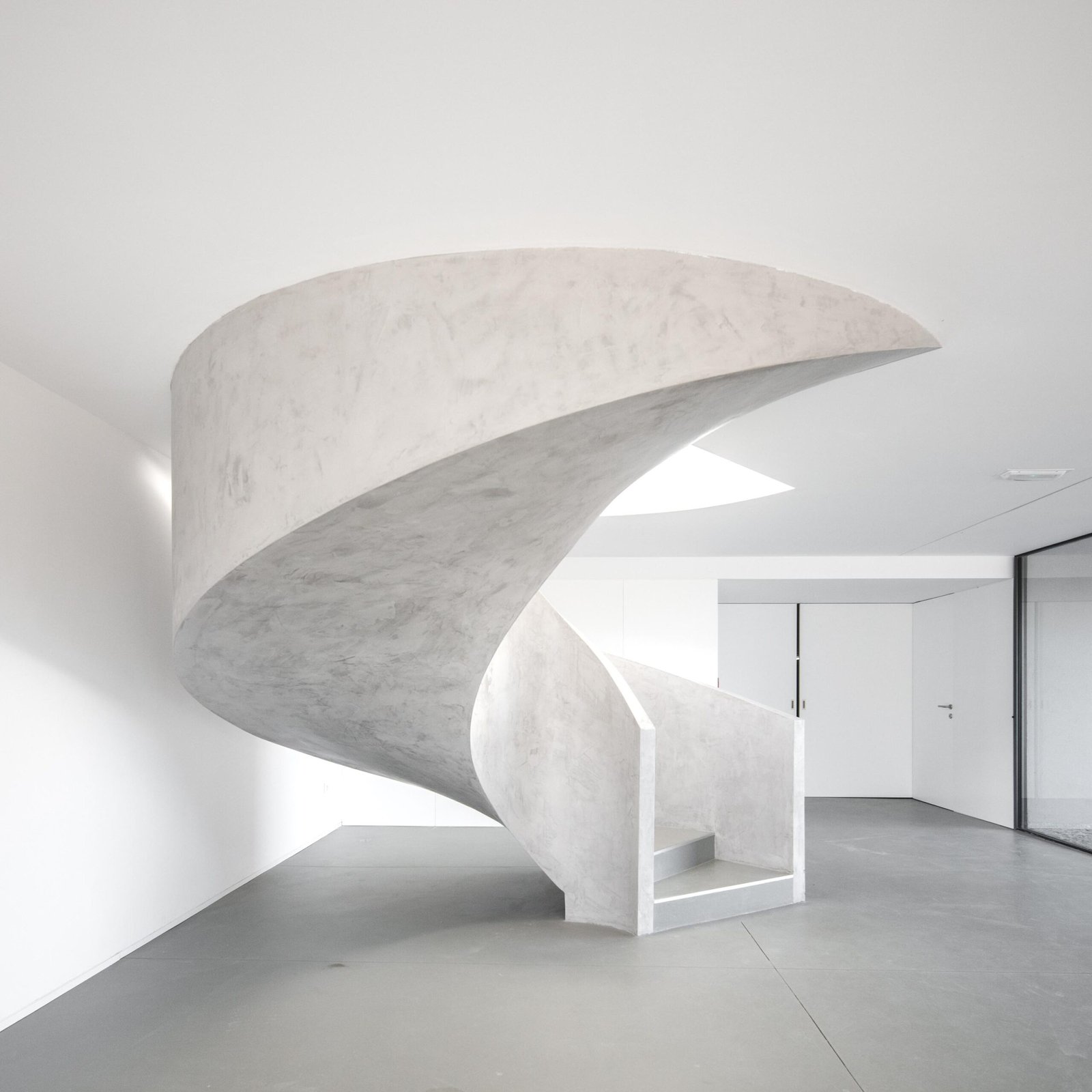 Sobre el acabado del edificio, las paredes y techos exteriores están cubiertos por un sistema de aislamiento térmico por el exterior de color gris claro y aislamiento térmico en todas las superficies. En el techo se utilizan membranas de lámina de betún, aislamiento térmico y protección con piedra natural. En los balcones y en el área de estacionamiento de los visitantes se utilizan pisos de concreto gris oscuro.