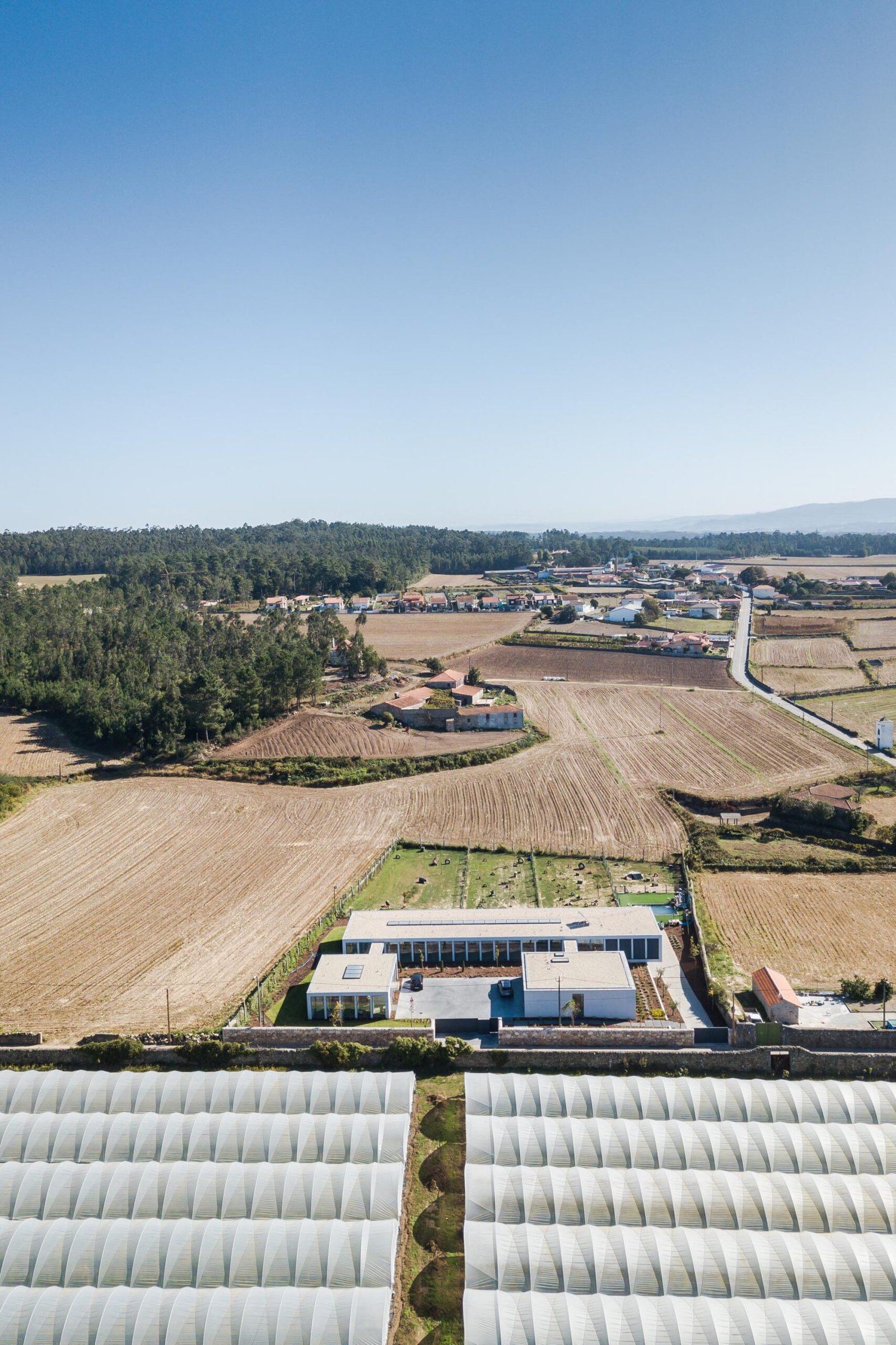 Las carpinterías de puertas y armarios están realizadas con MDF lacado blanco. Afuera, las paredes de piedra de granito se limpiaron y conservaron, manteniendo el mismo método de construcción. En la cerca de los campos de adiestramiento canino se utilizan postes de granito para asegurar las redes de la cerca. Estos postes de granito ya existían en el suelo y se usaban en el viñedo cerca de las paredes del campo de plantación.